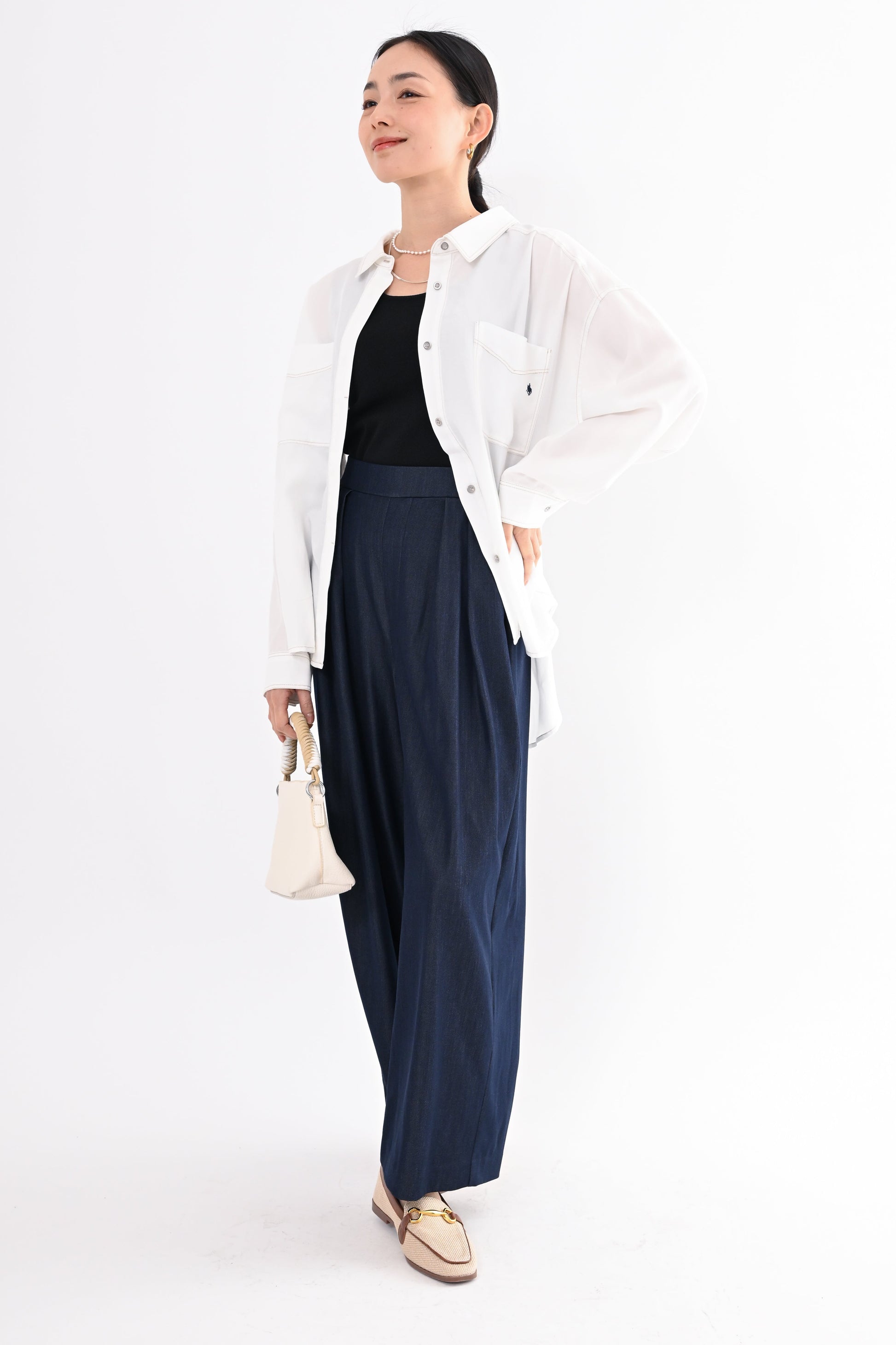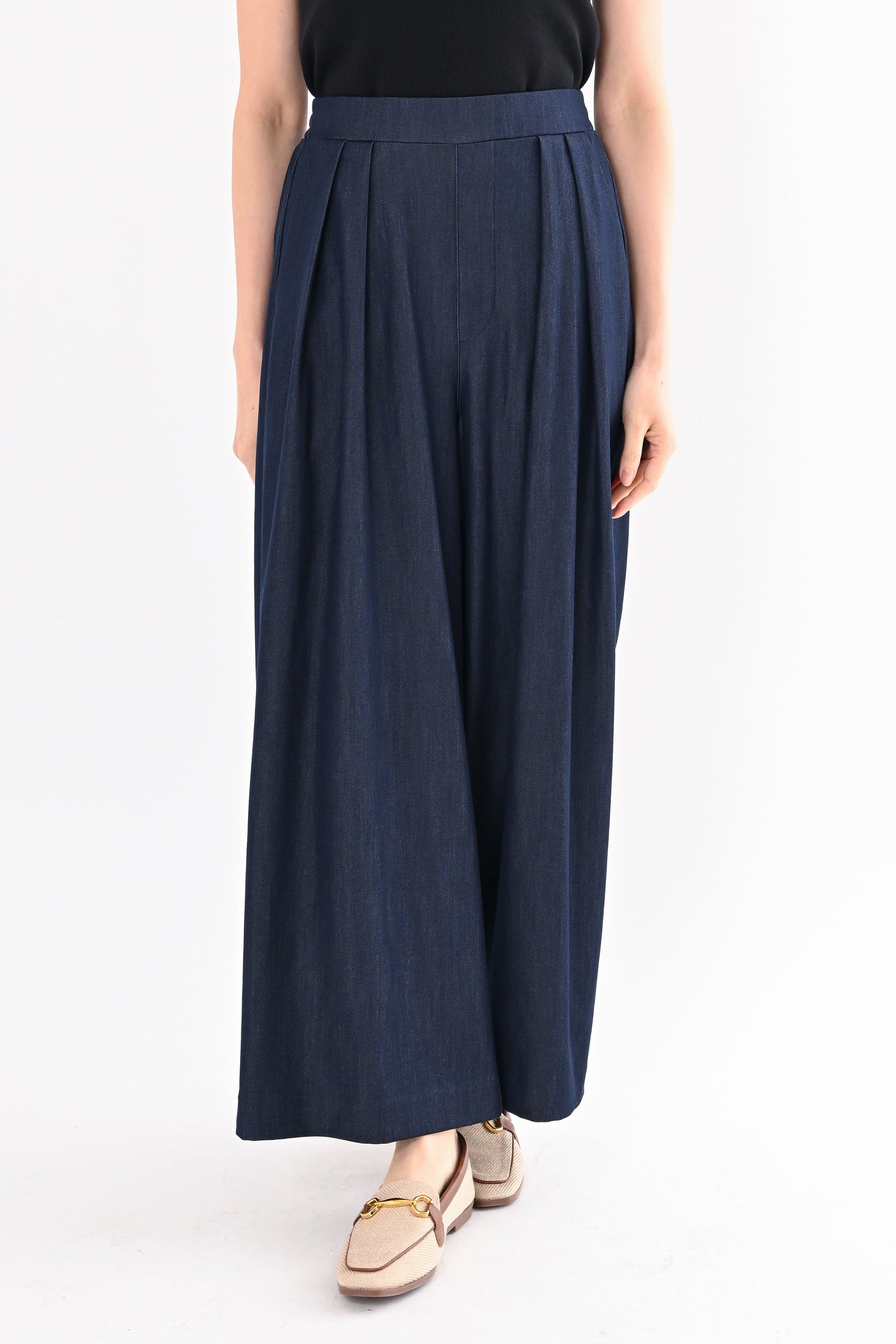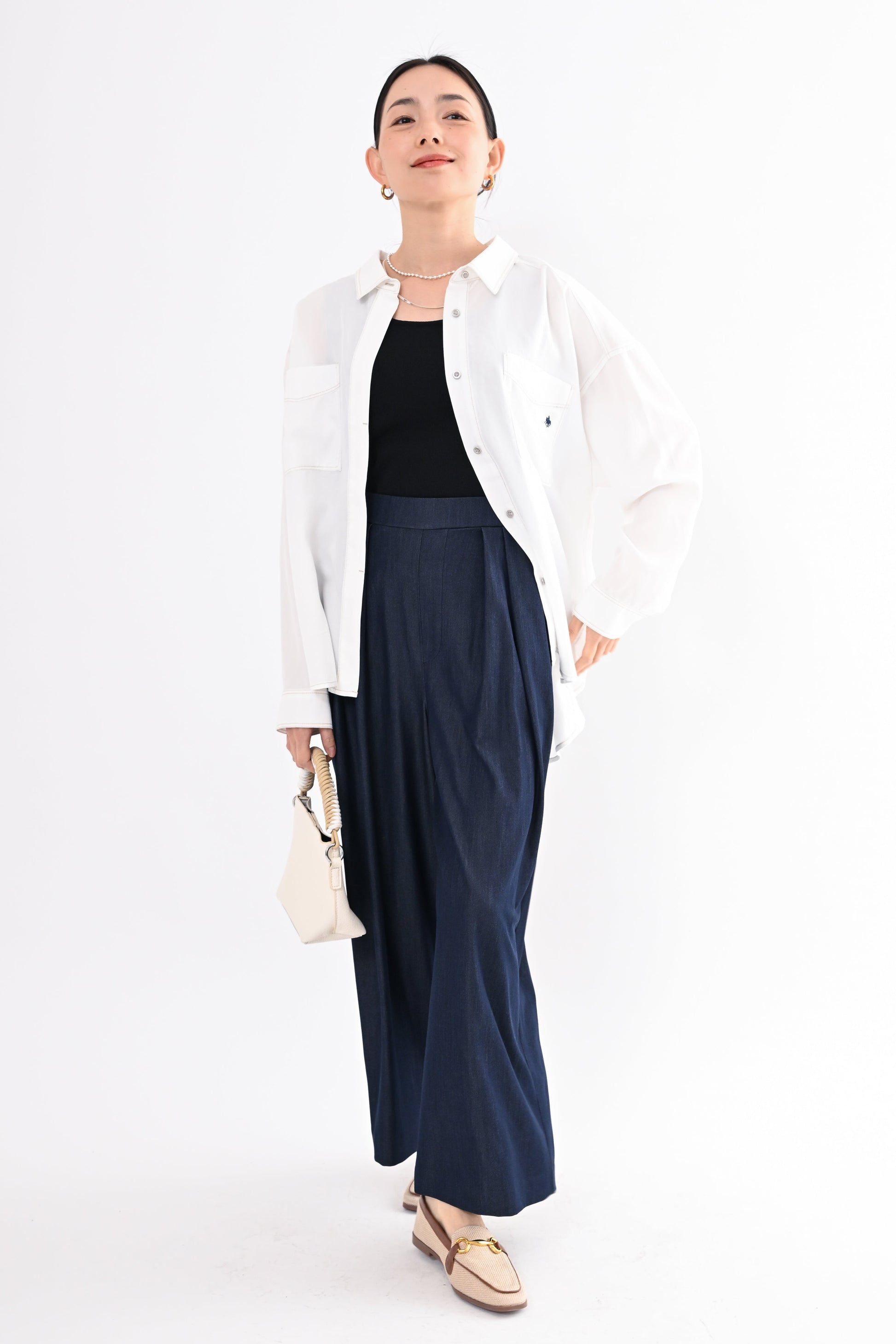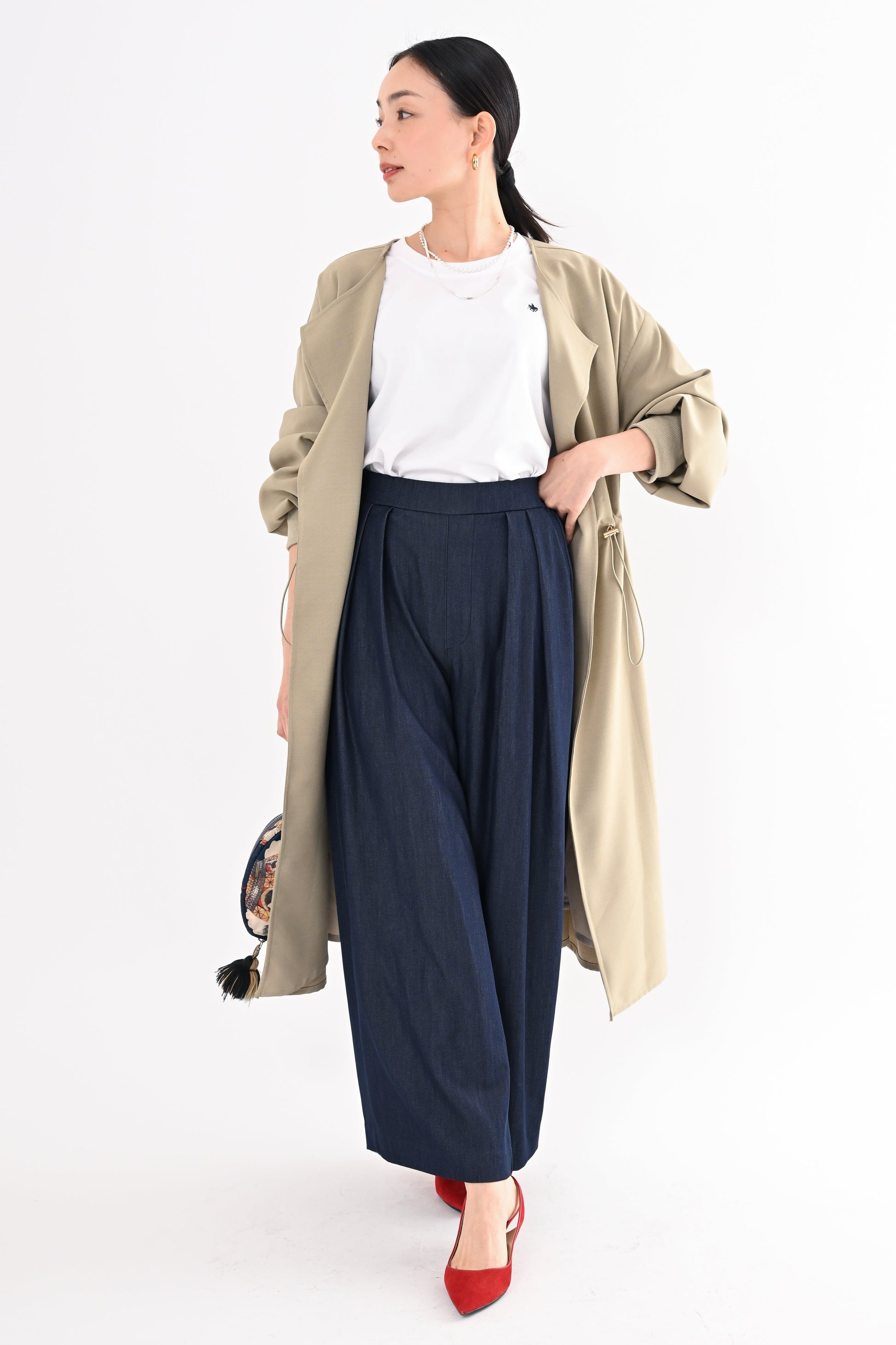 ・きれいめにもカジュアルにも馴染む テンセルデニム素材 で程よい落ち感