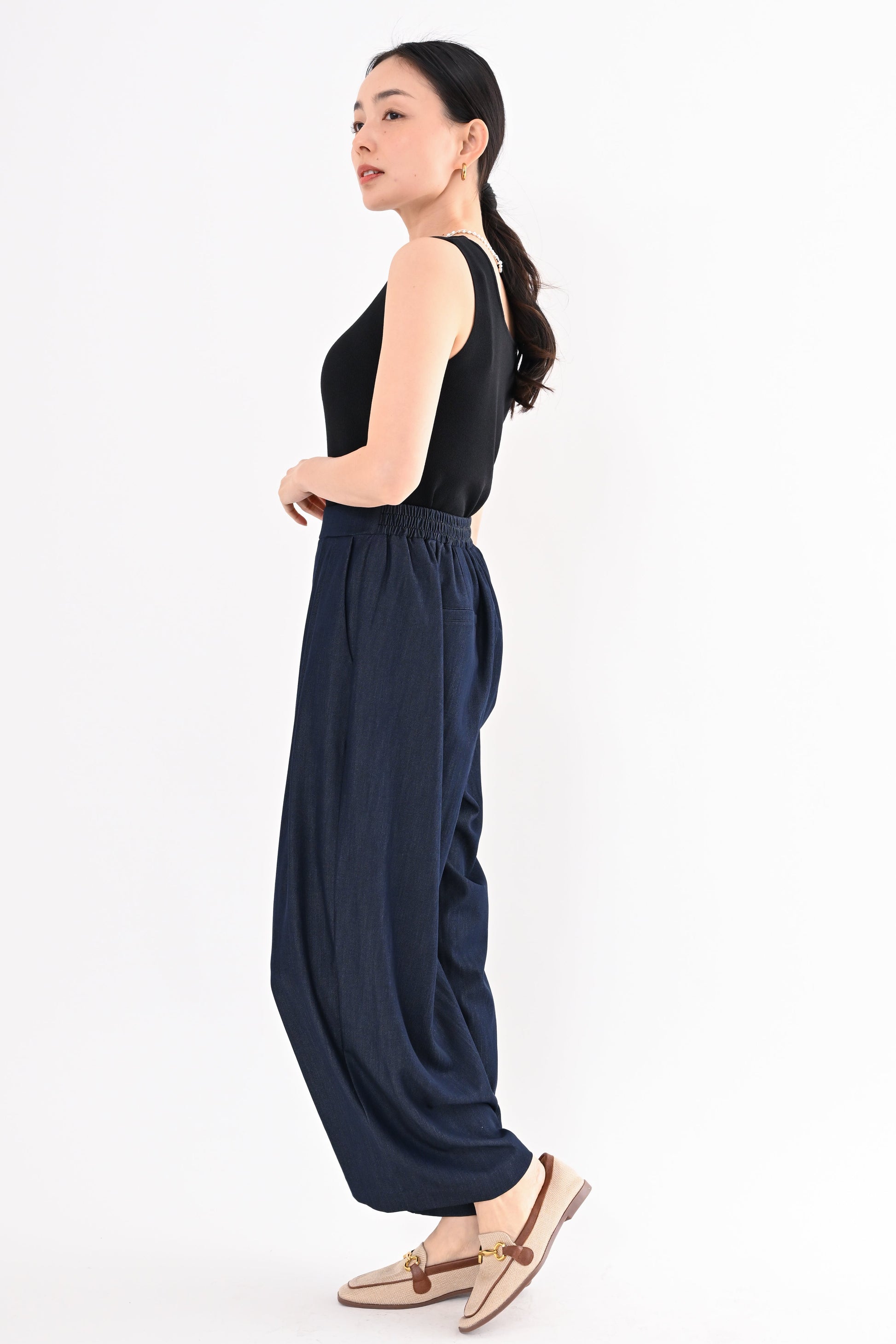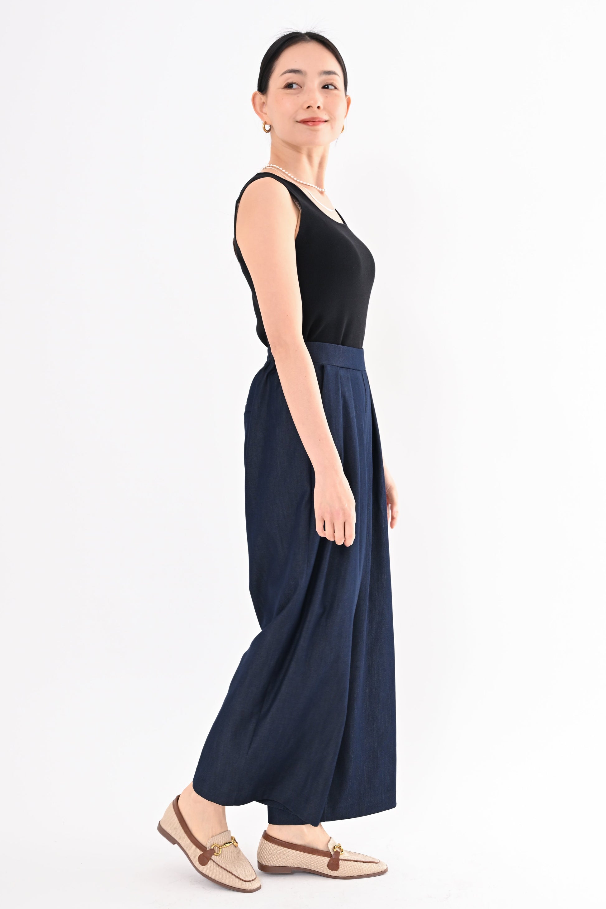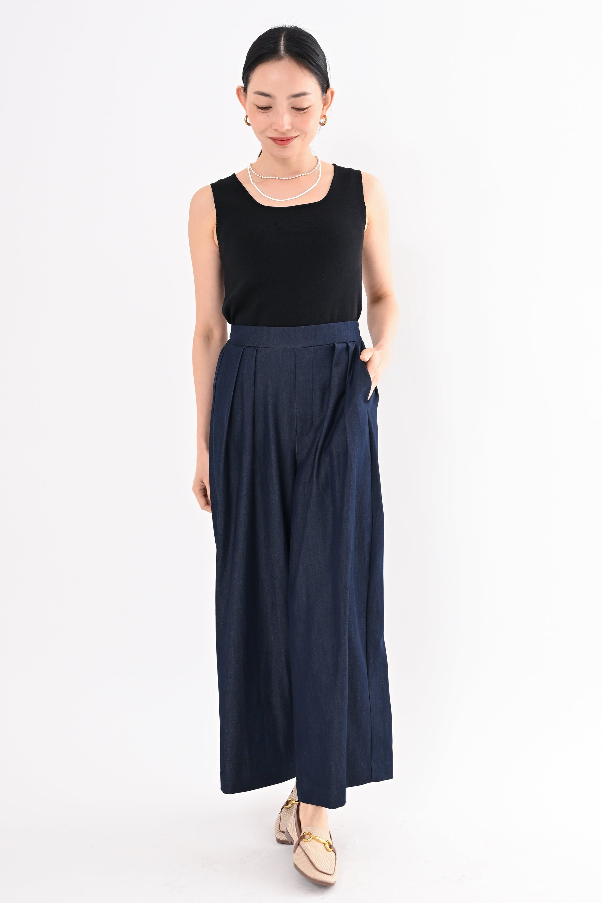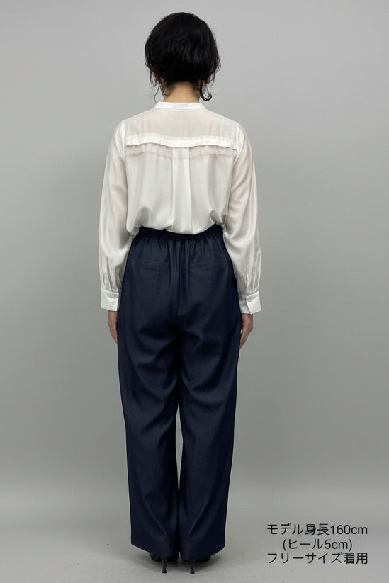 ・きれいめにもカジュアルにも馴染む テンセルデニム素材 で程よい落ち感