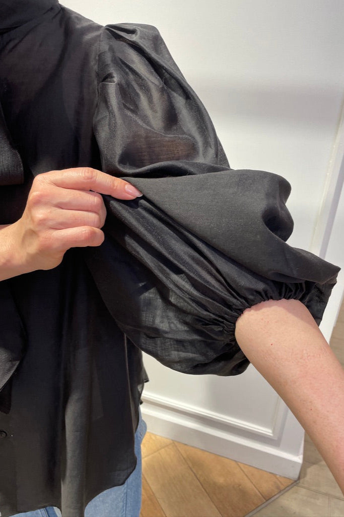 再生繊維にポリエステルを合わせたソフトオーガンジーを使用したブラウス