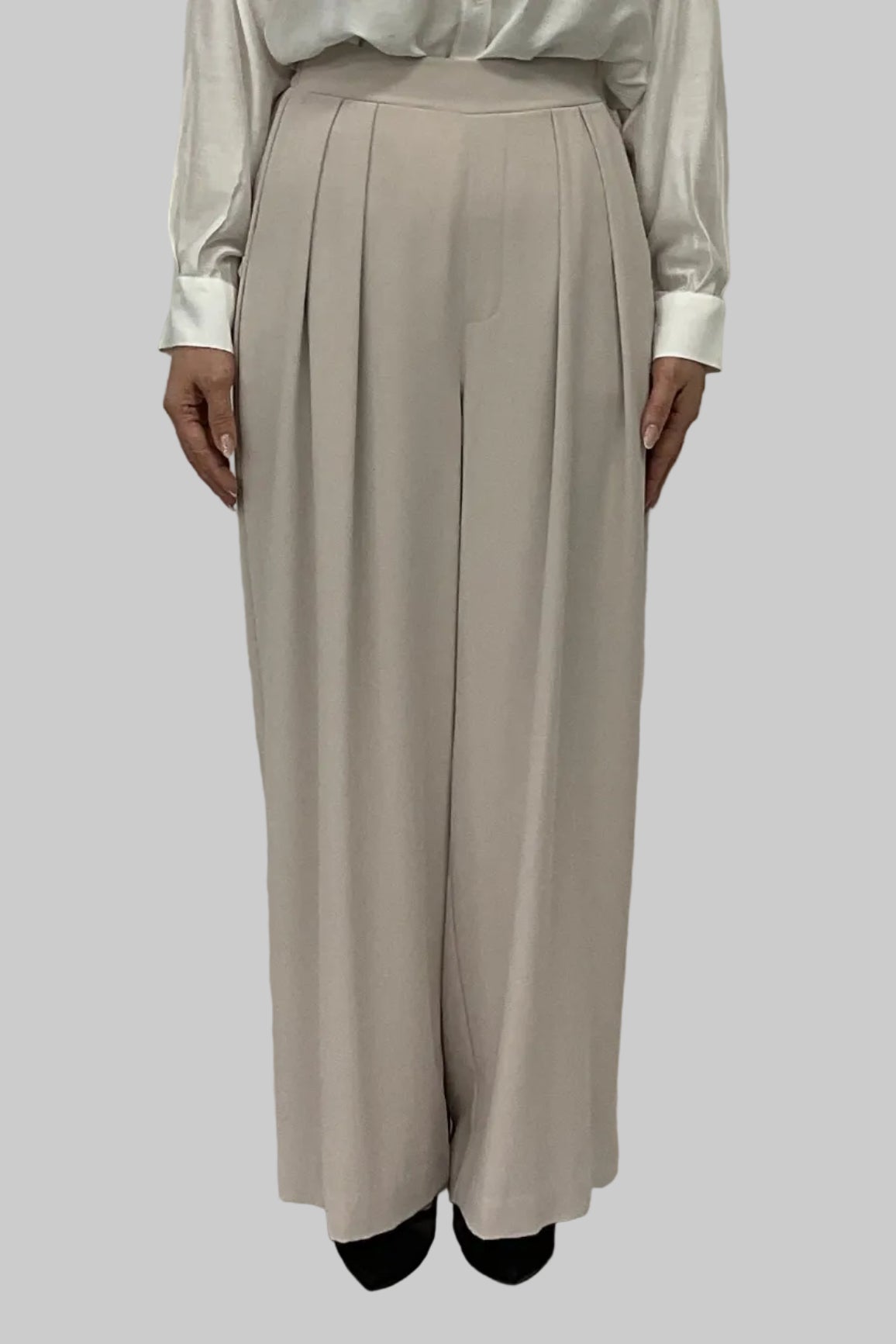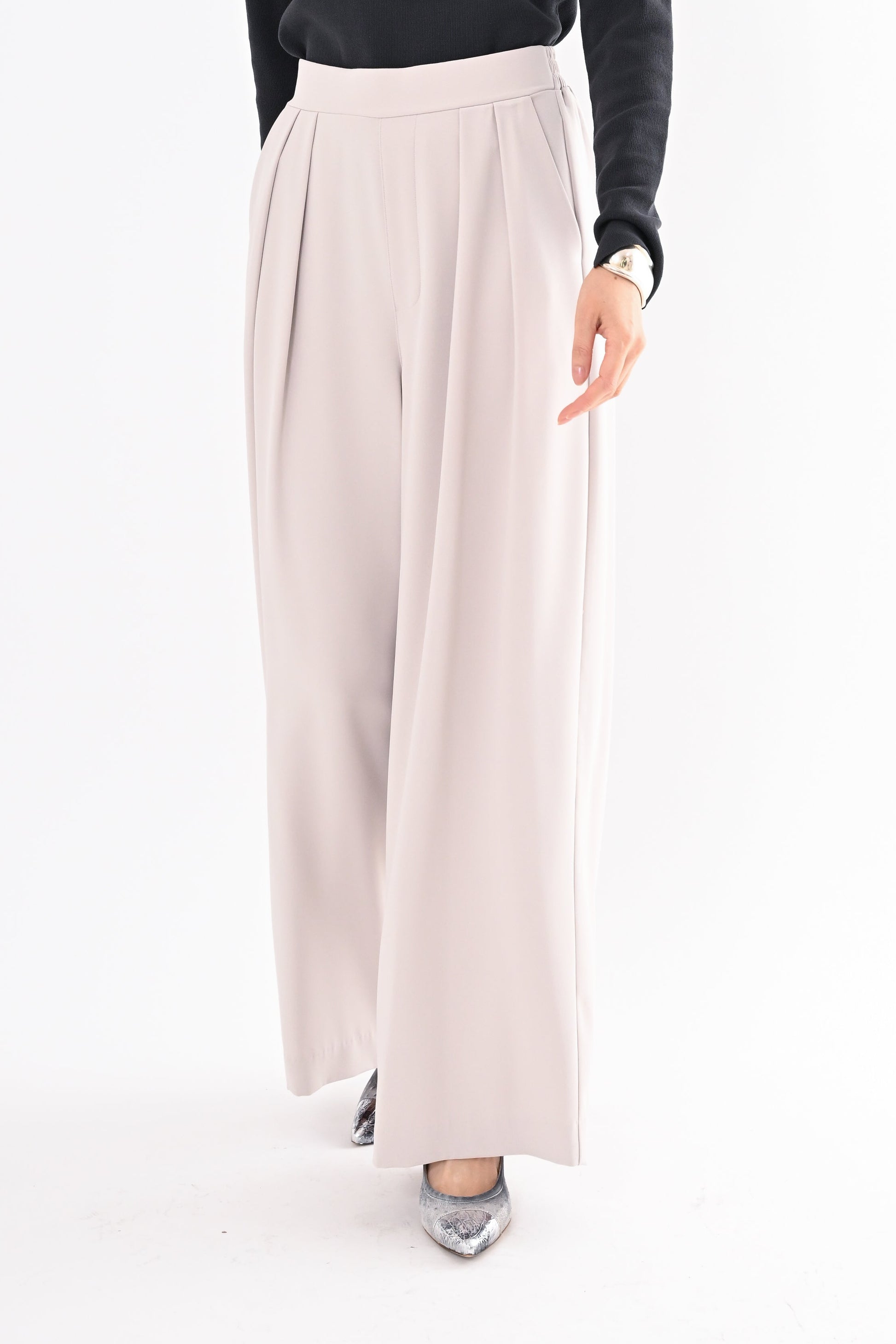 ほどよいハイウエストとタックデザインでウエストまわりをすっき