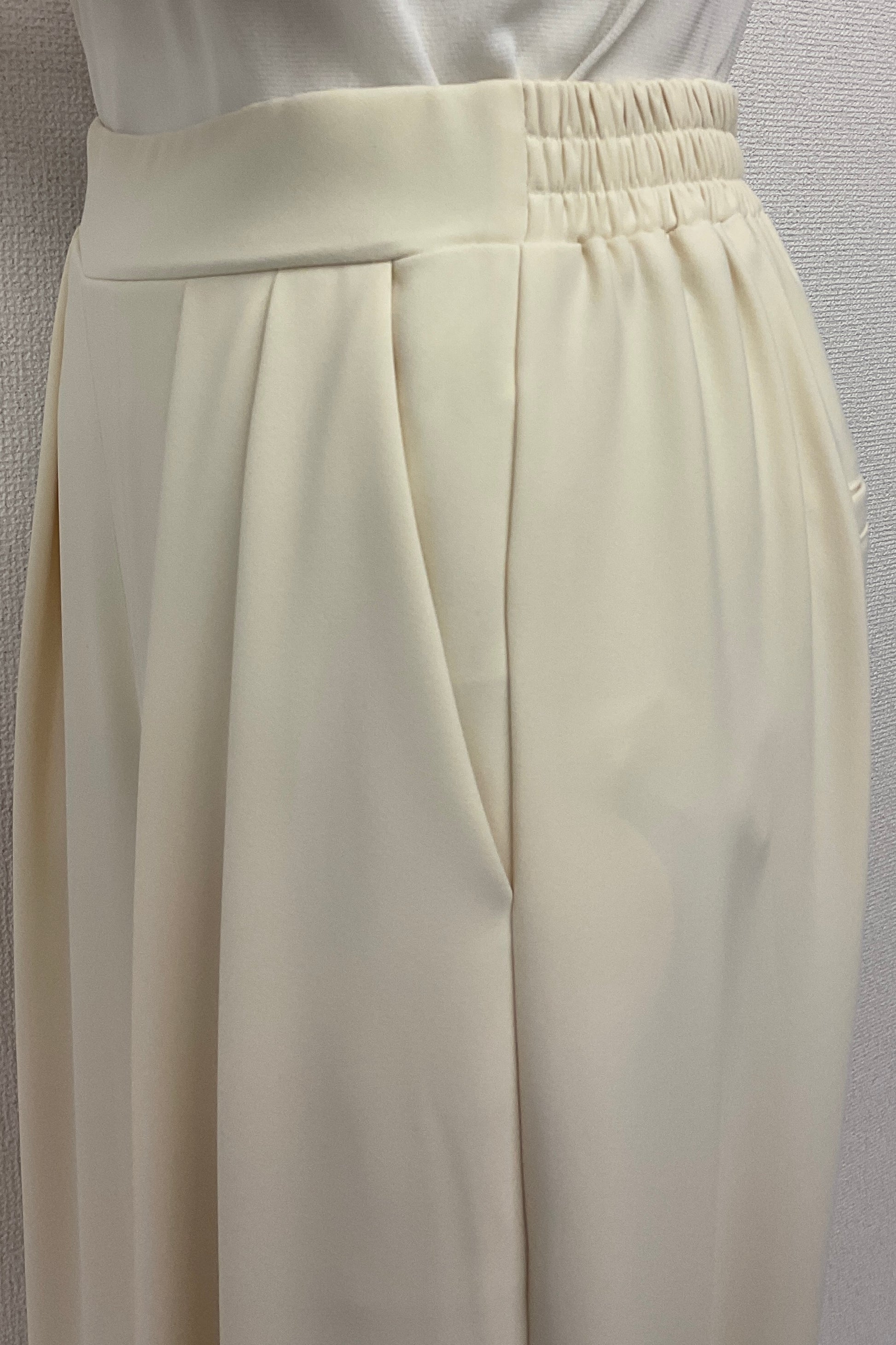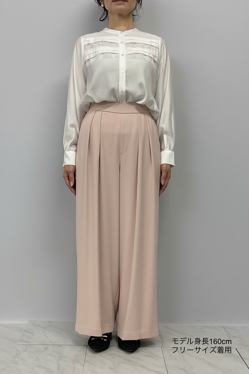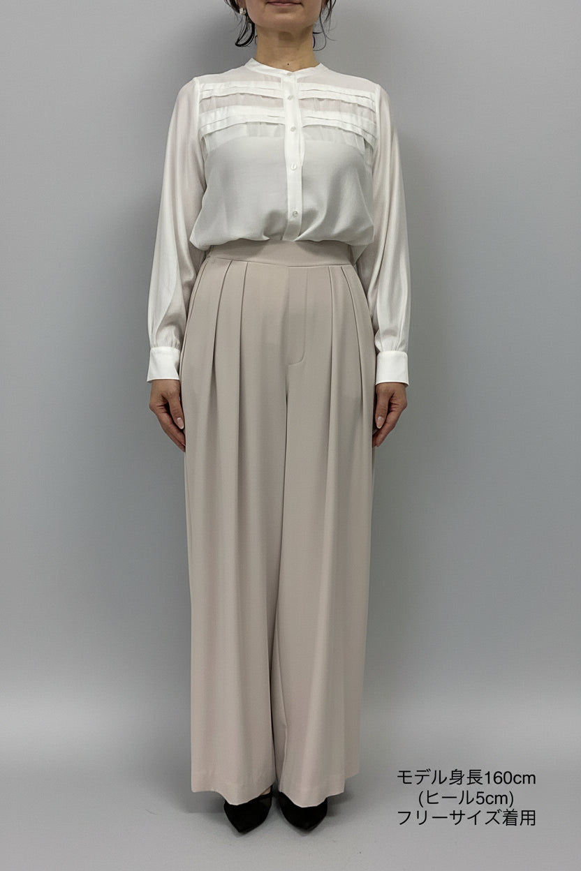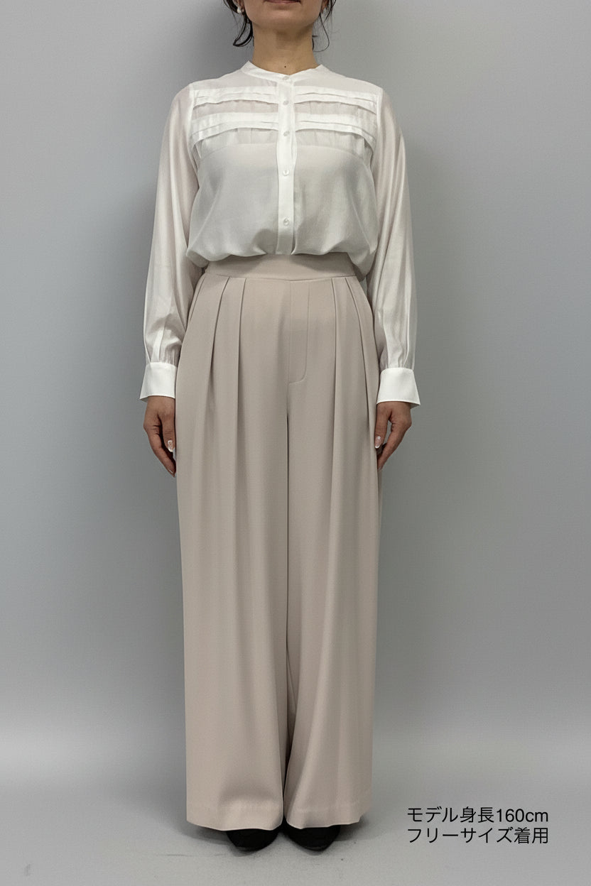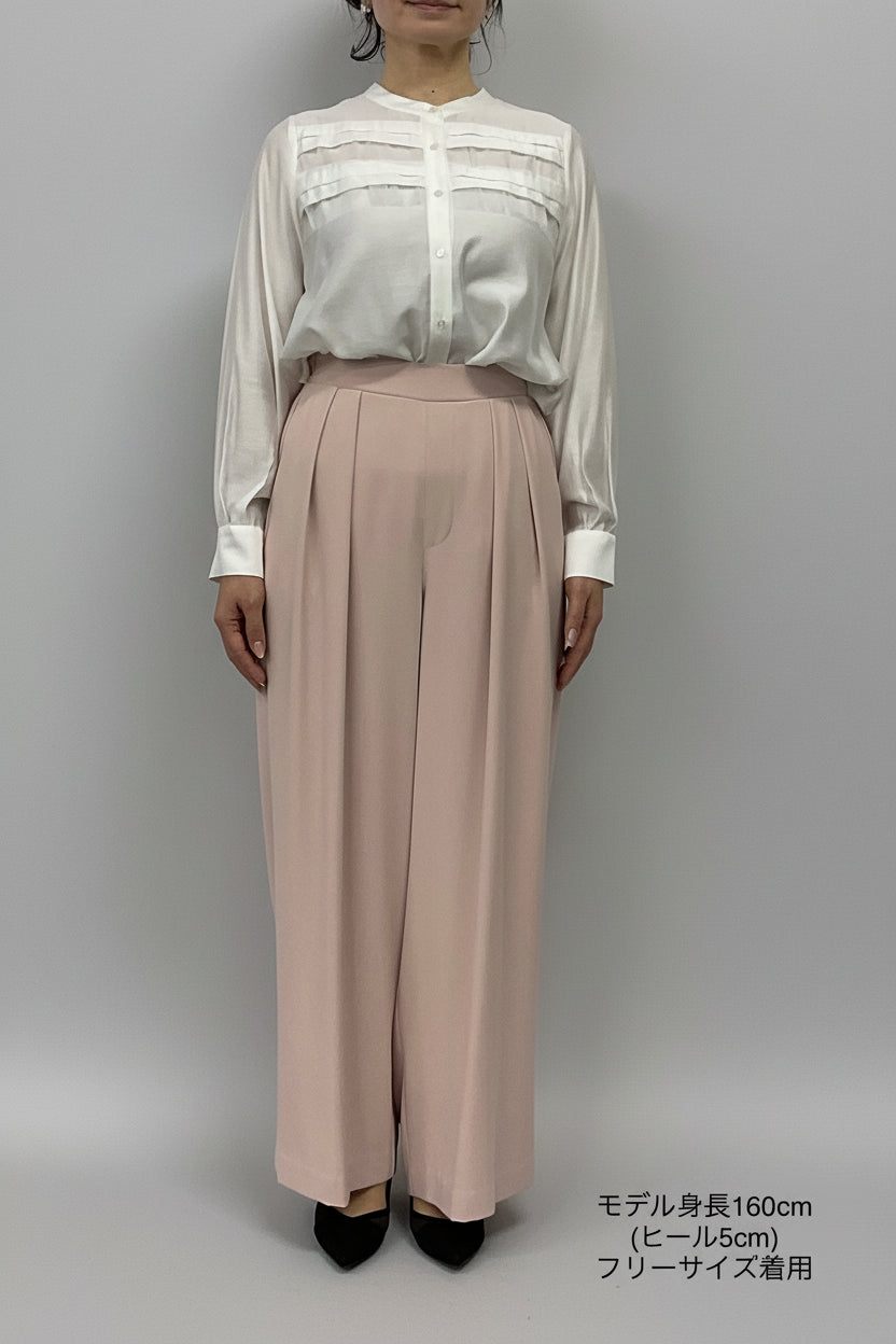 ほどよいハイウエストとタックデザインでウエストまわりをすっき
