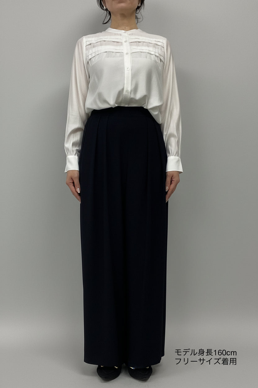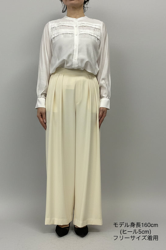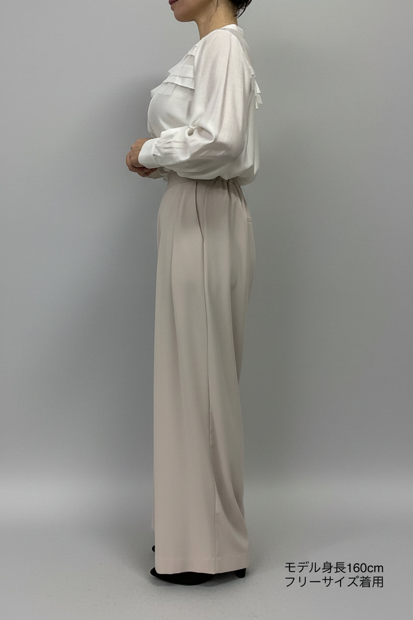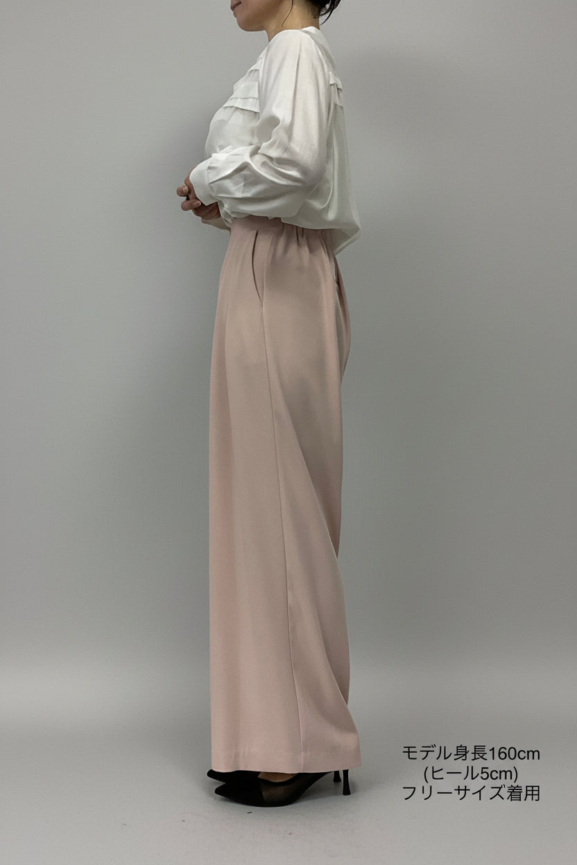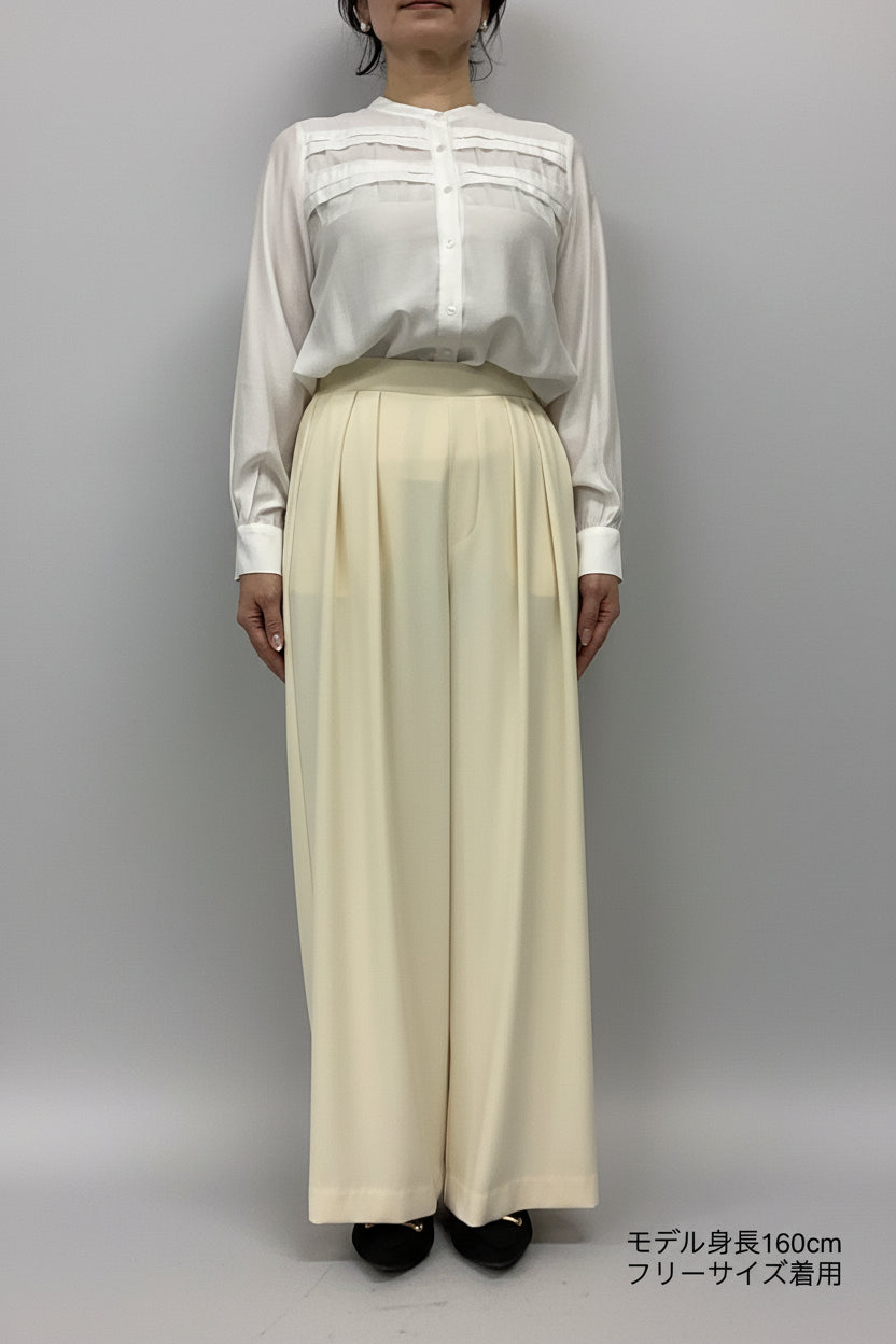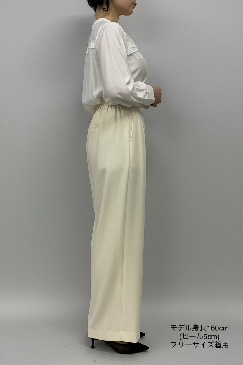 ほどよいハイウエストとタックデザインでウエストまわりをすっき