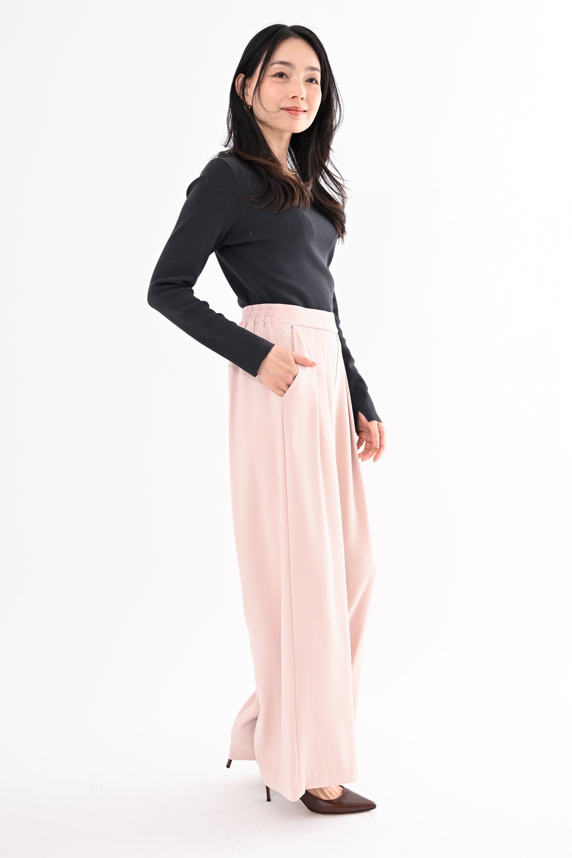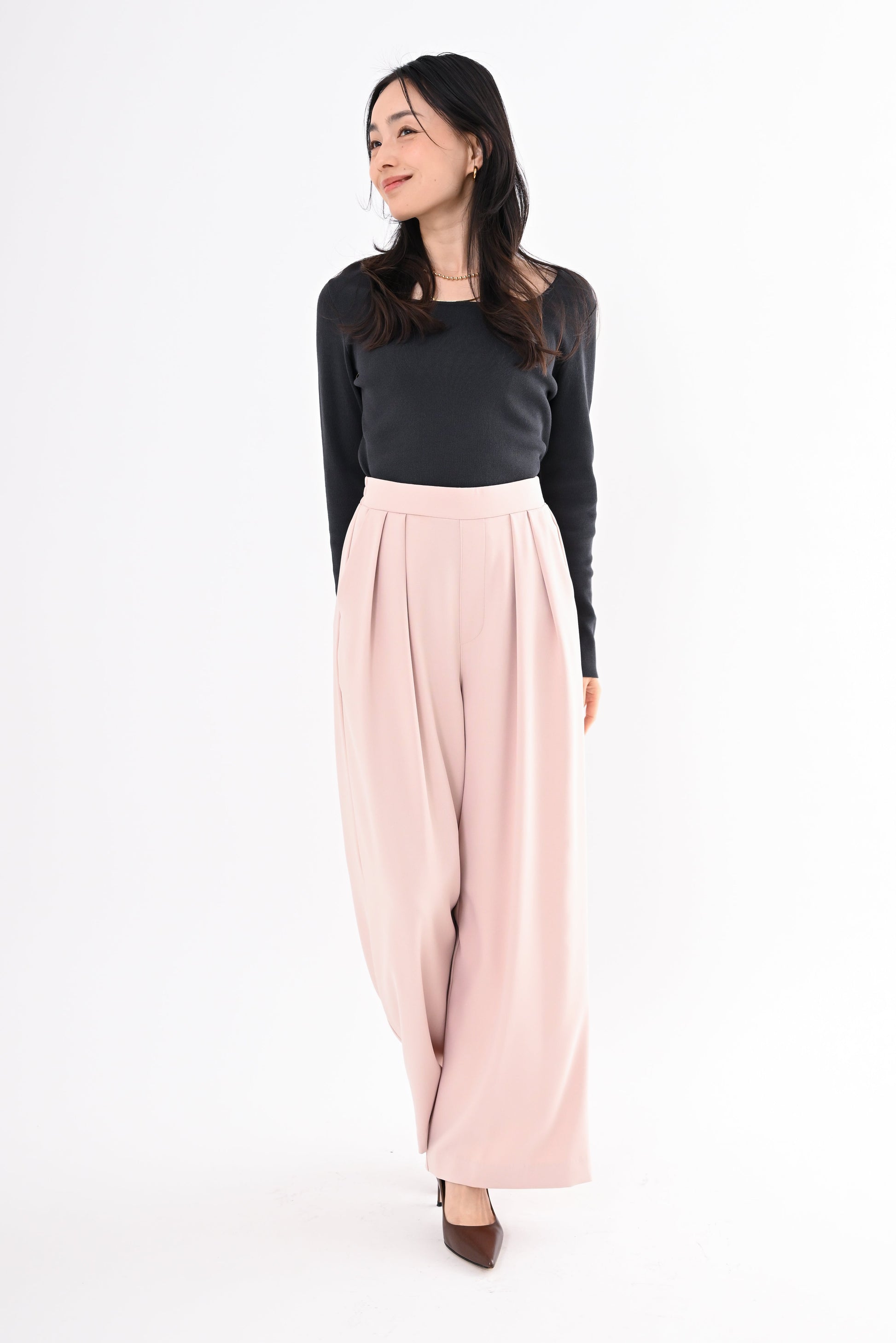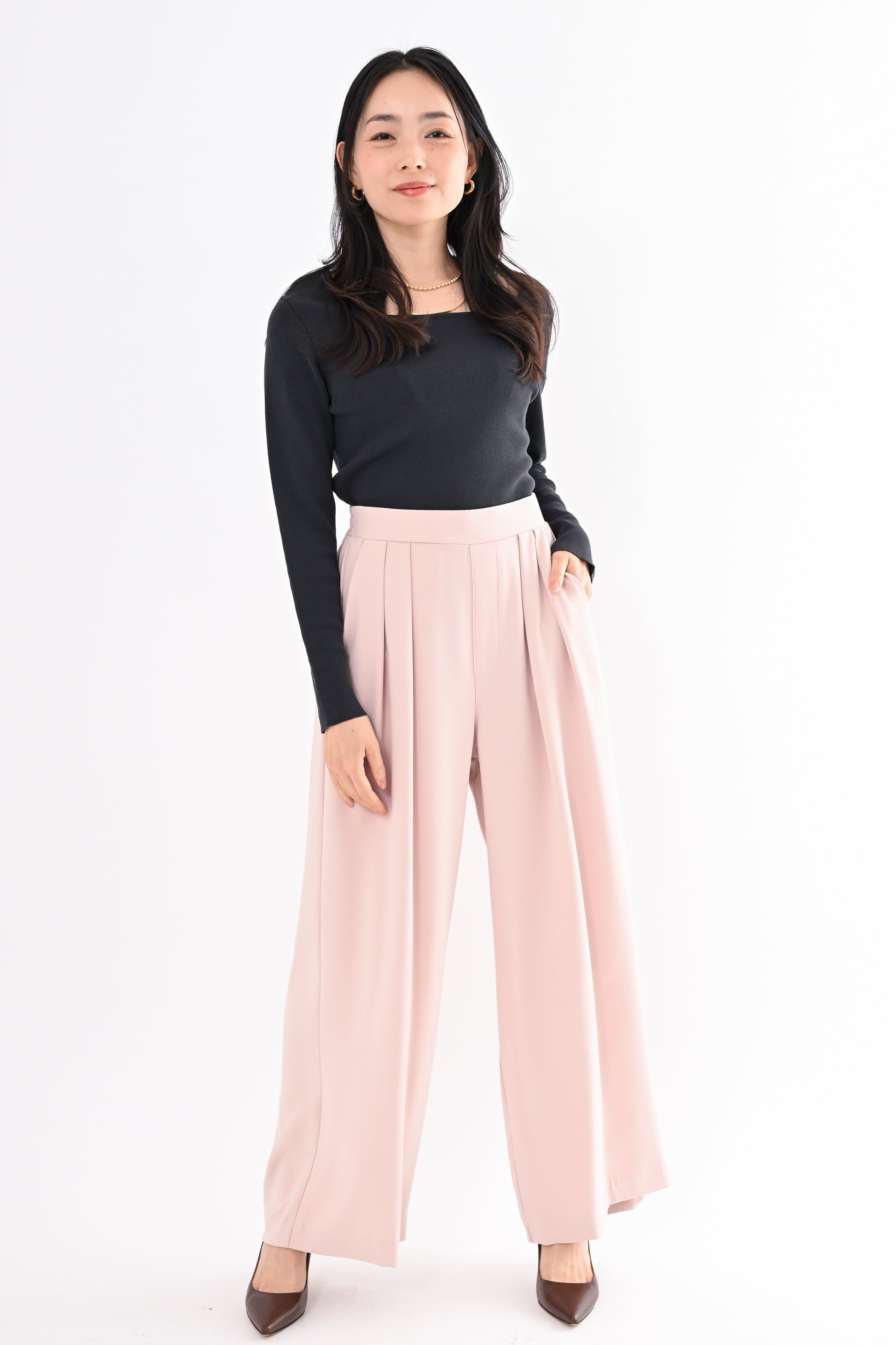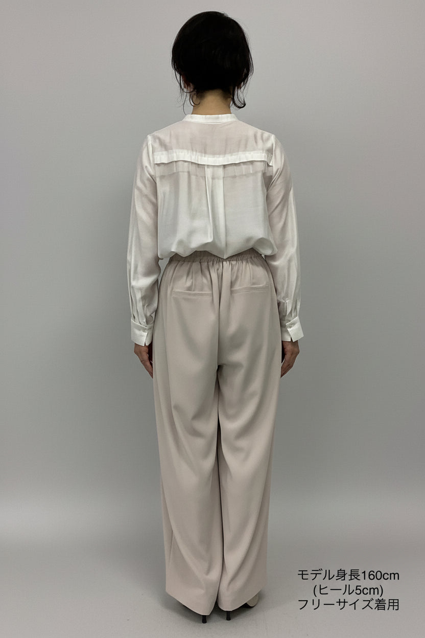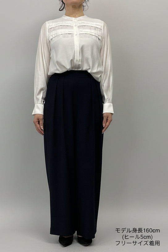ほどよいハイウエストとタックデザインでウエストまわりをすっき