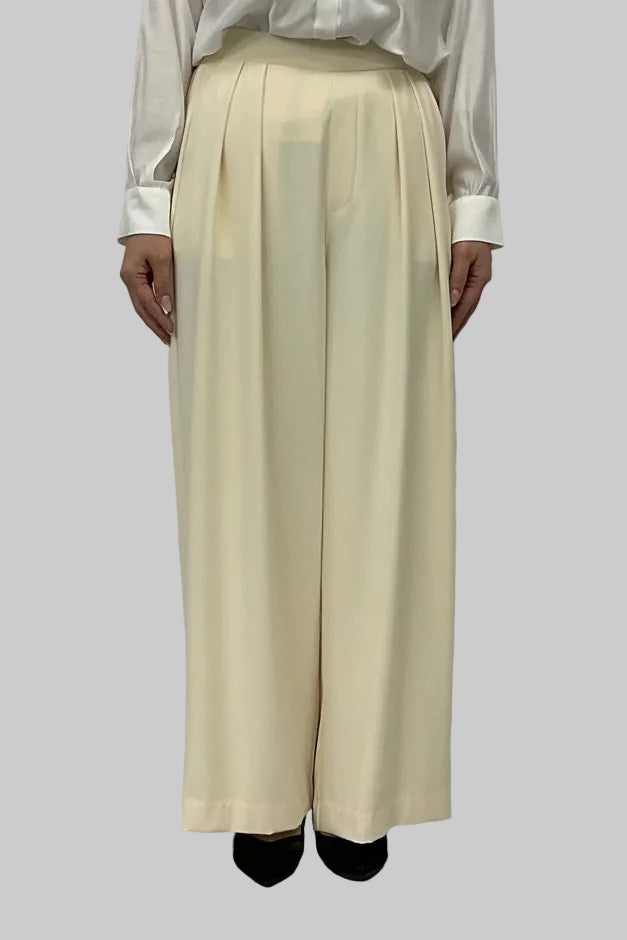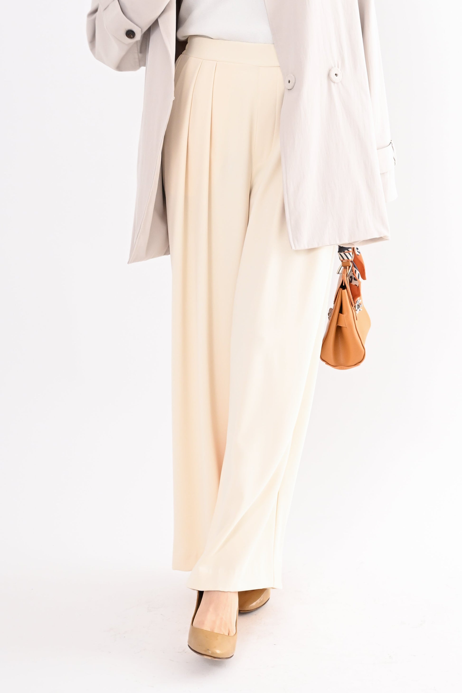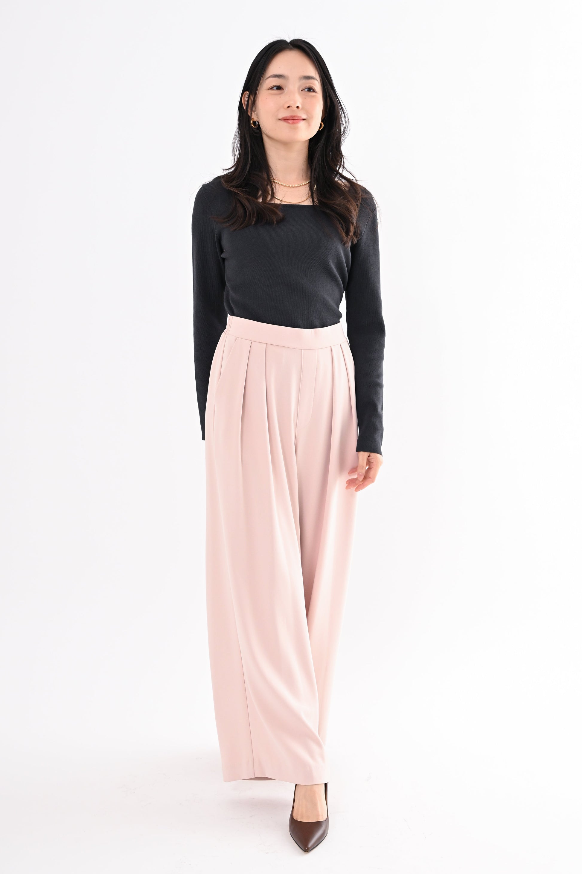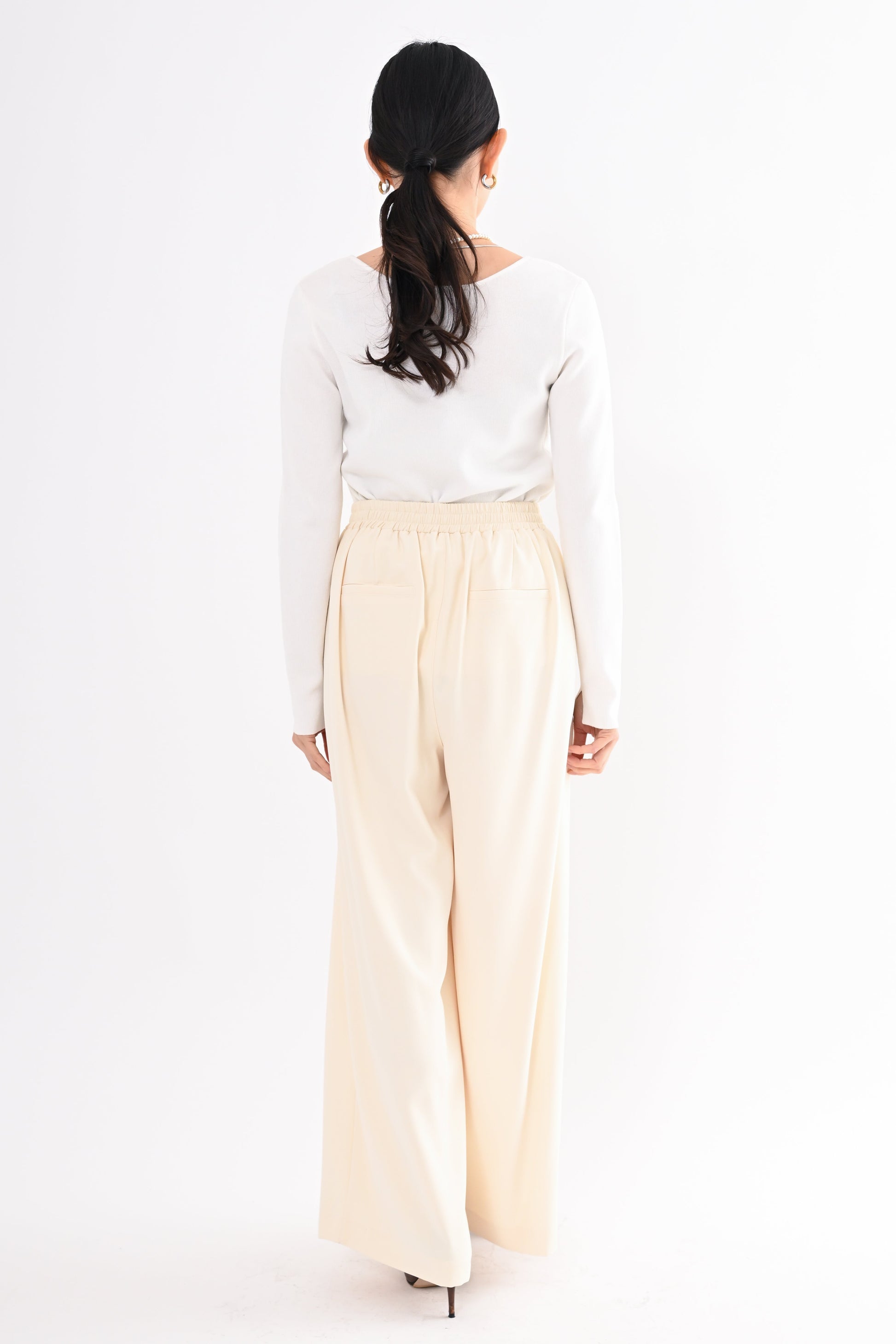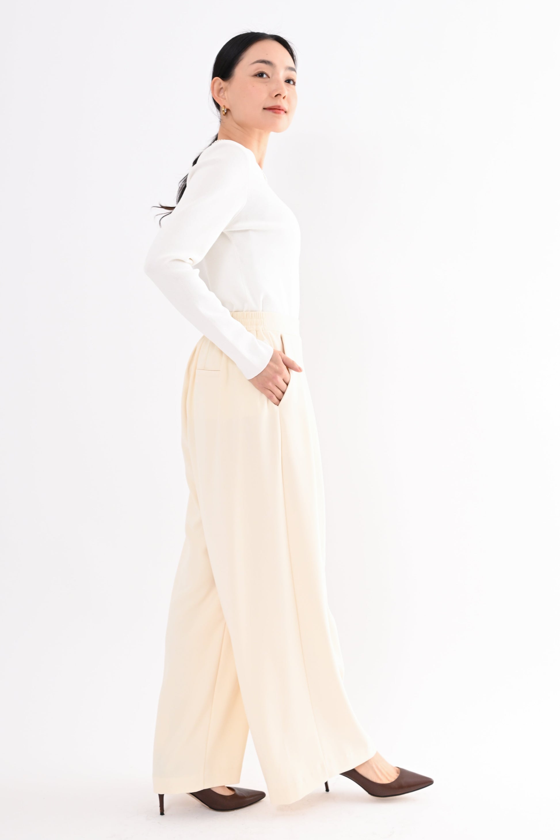 ほどよいハイウエストとタックデザインでウエストまわりをすっき