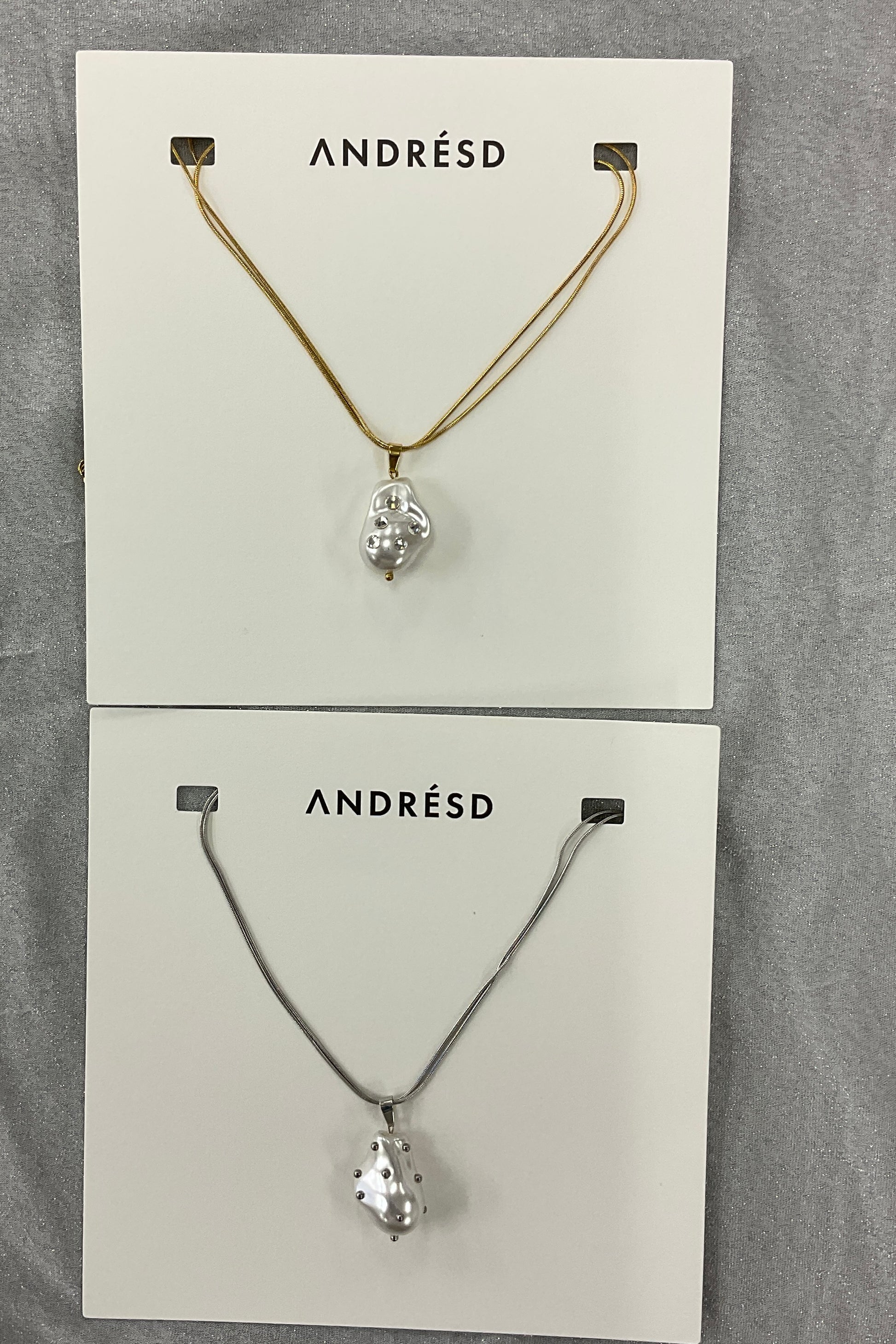 長めのアジャスターでフィット感を自在に調整でき、チェーンエンドにはさりげなくANDRESDロゴを刻印。