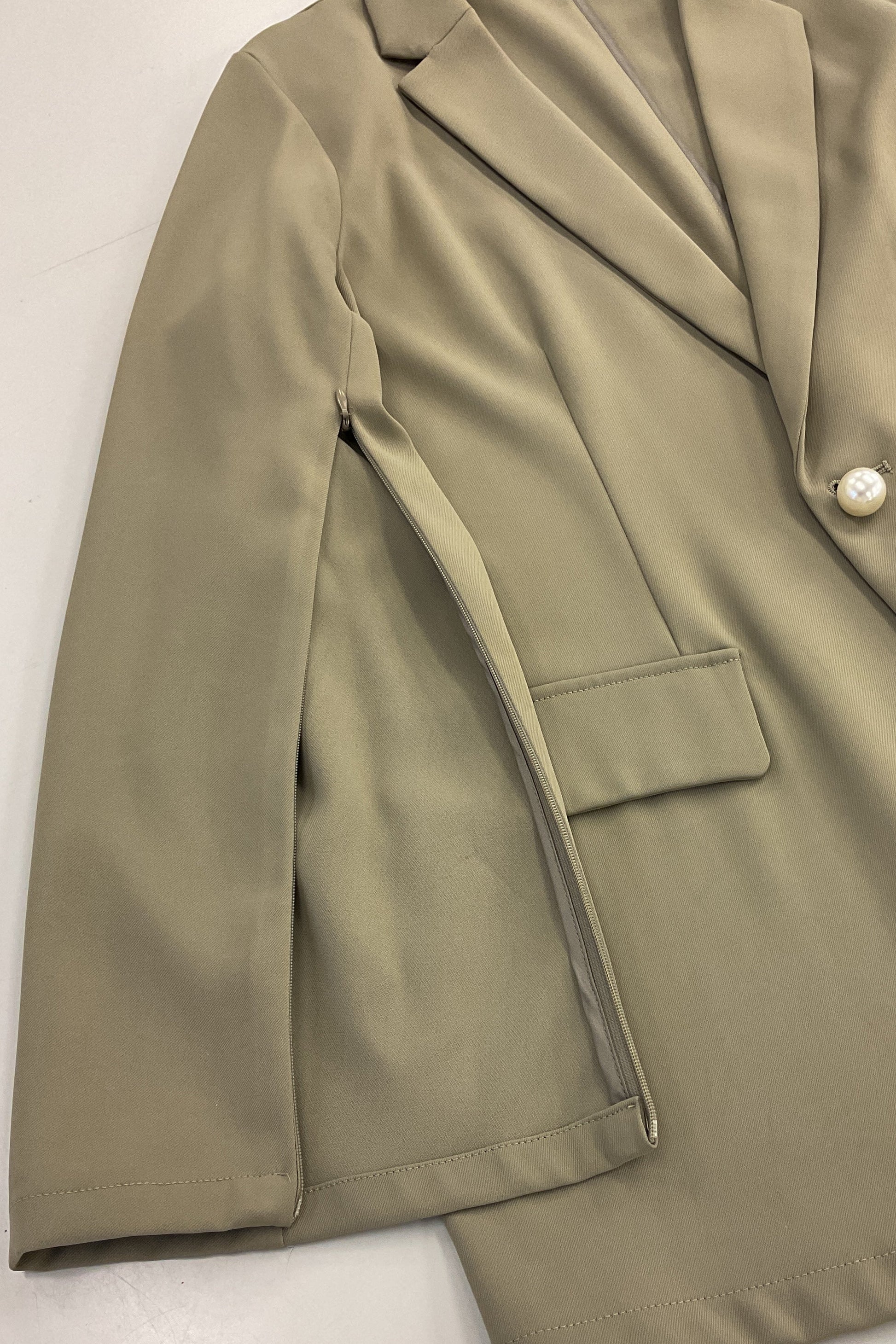 腕の動きに合わせて表情が生まれ、羽織るだけで今どきらしい抜け感と軽やかさを演出してくれます。かっちりしすぎず、オケージョンからデイリーまで幅広く対応できるのも魅力です。
