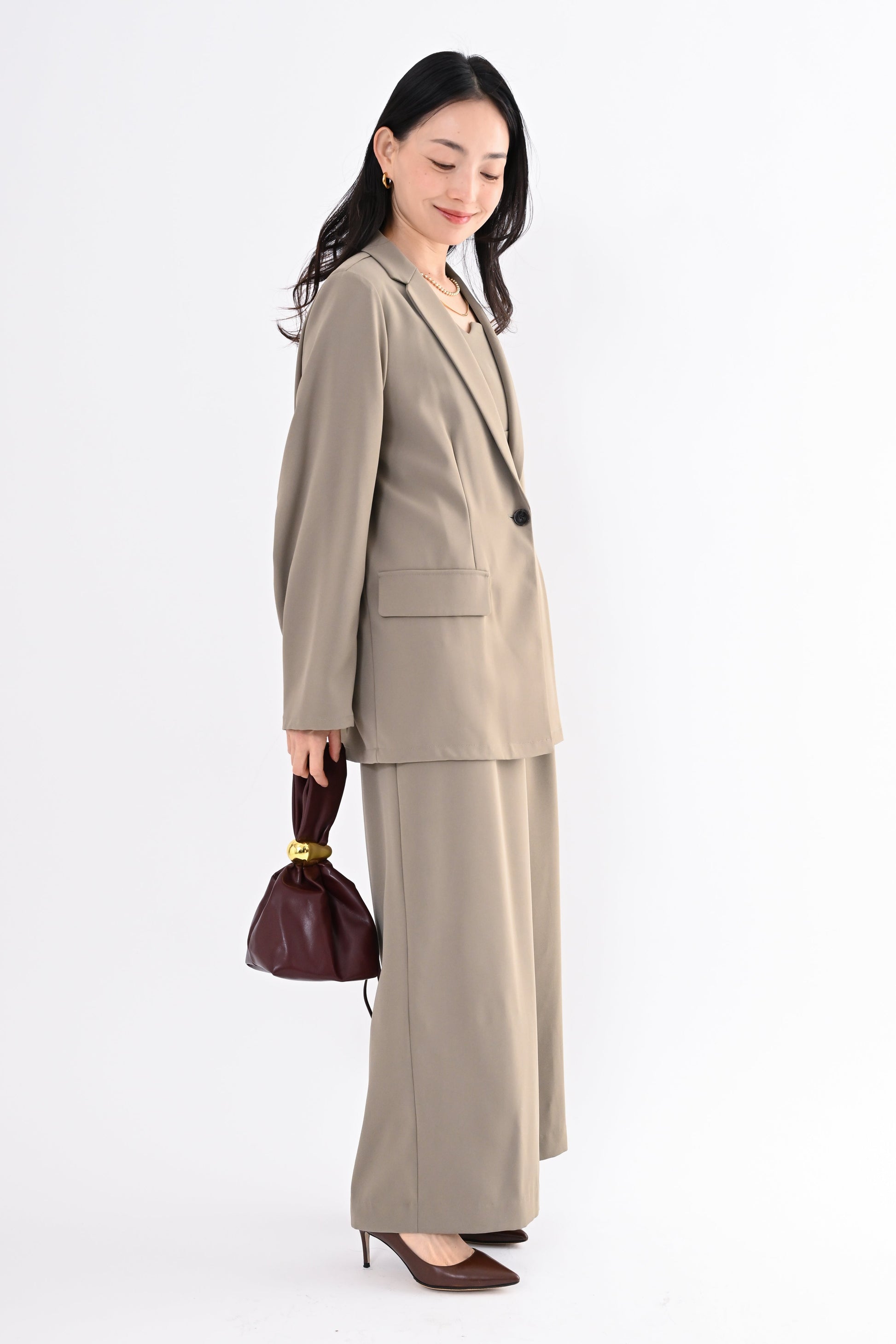 セットで着るだけで完成度の高い装いが叶い、それぞれ単品でも着回しができるため、ワードローブの幅を広げてくれるセットアップです。