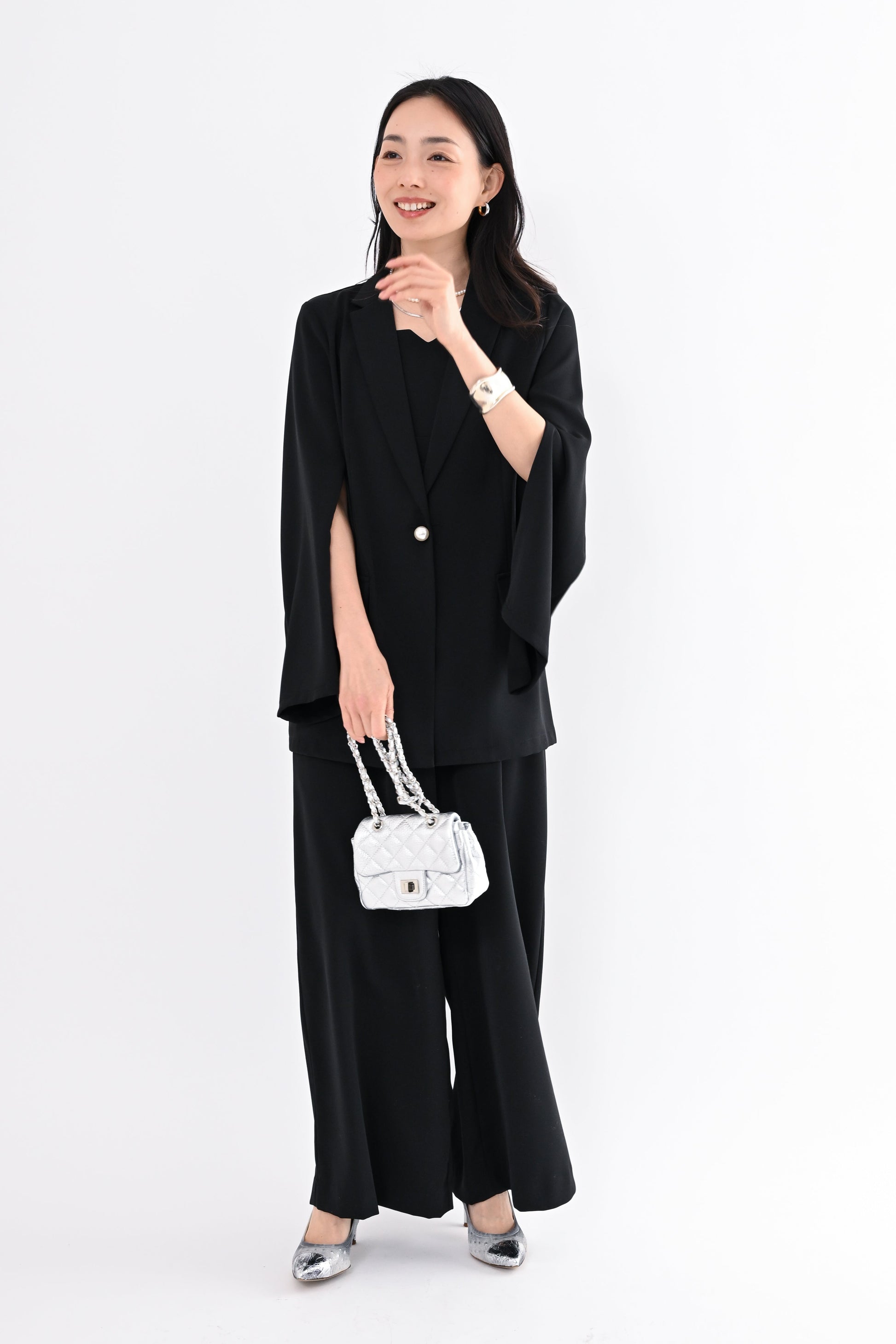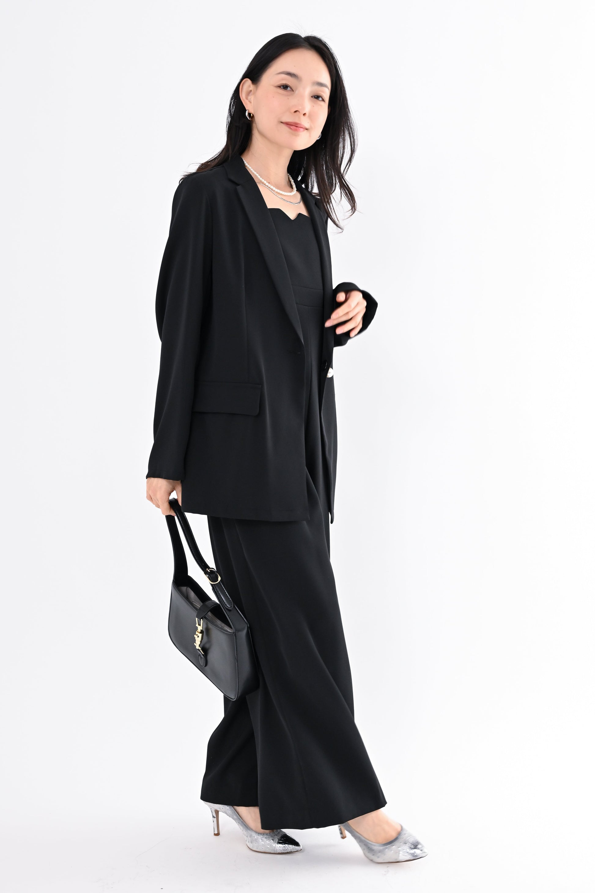 セレモニーや式典などのフォーマルな場面から、普段のお出かけや通勤まで、長く愛用できる一着です。