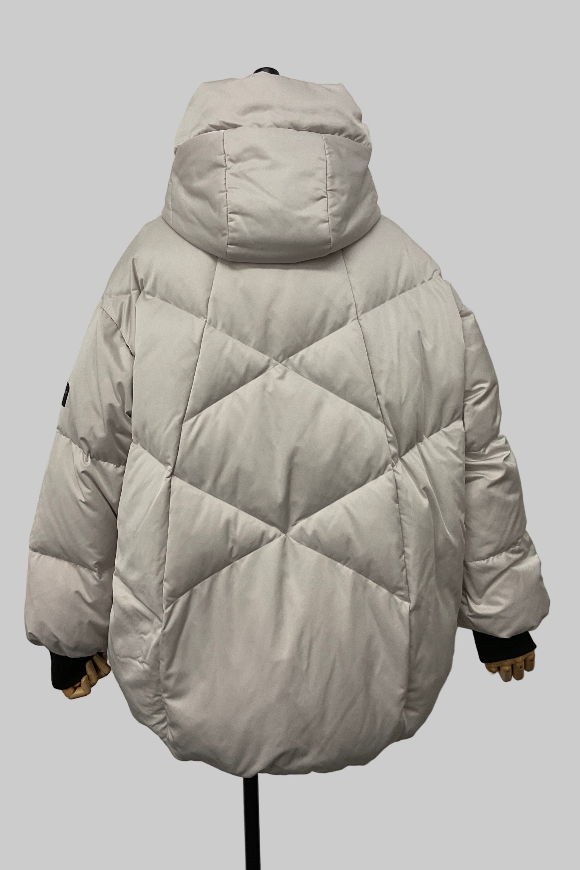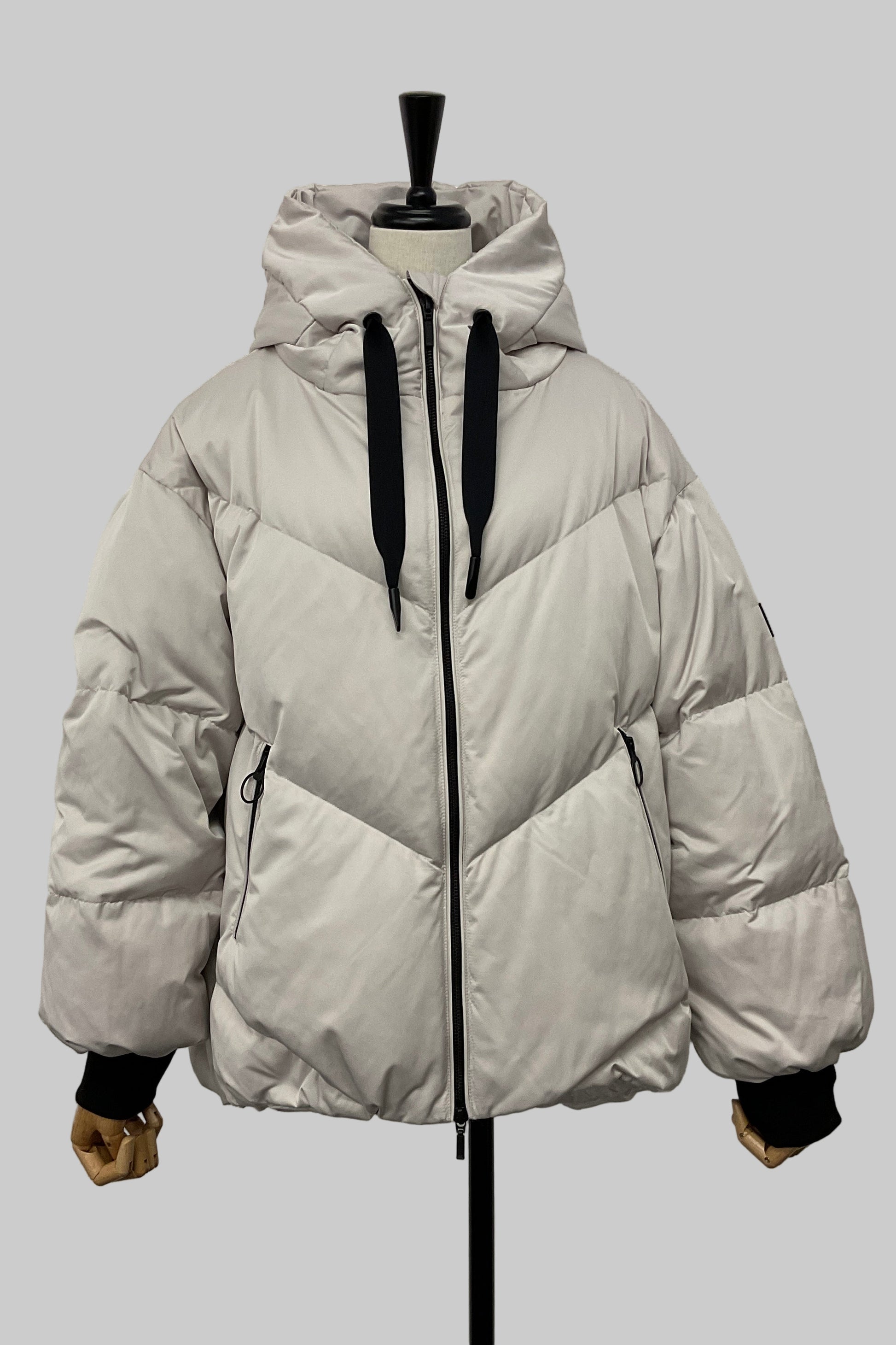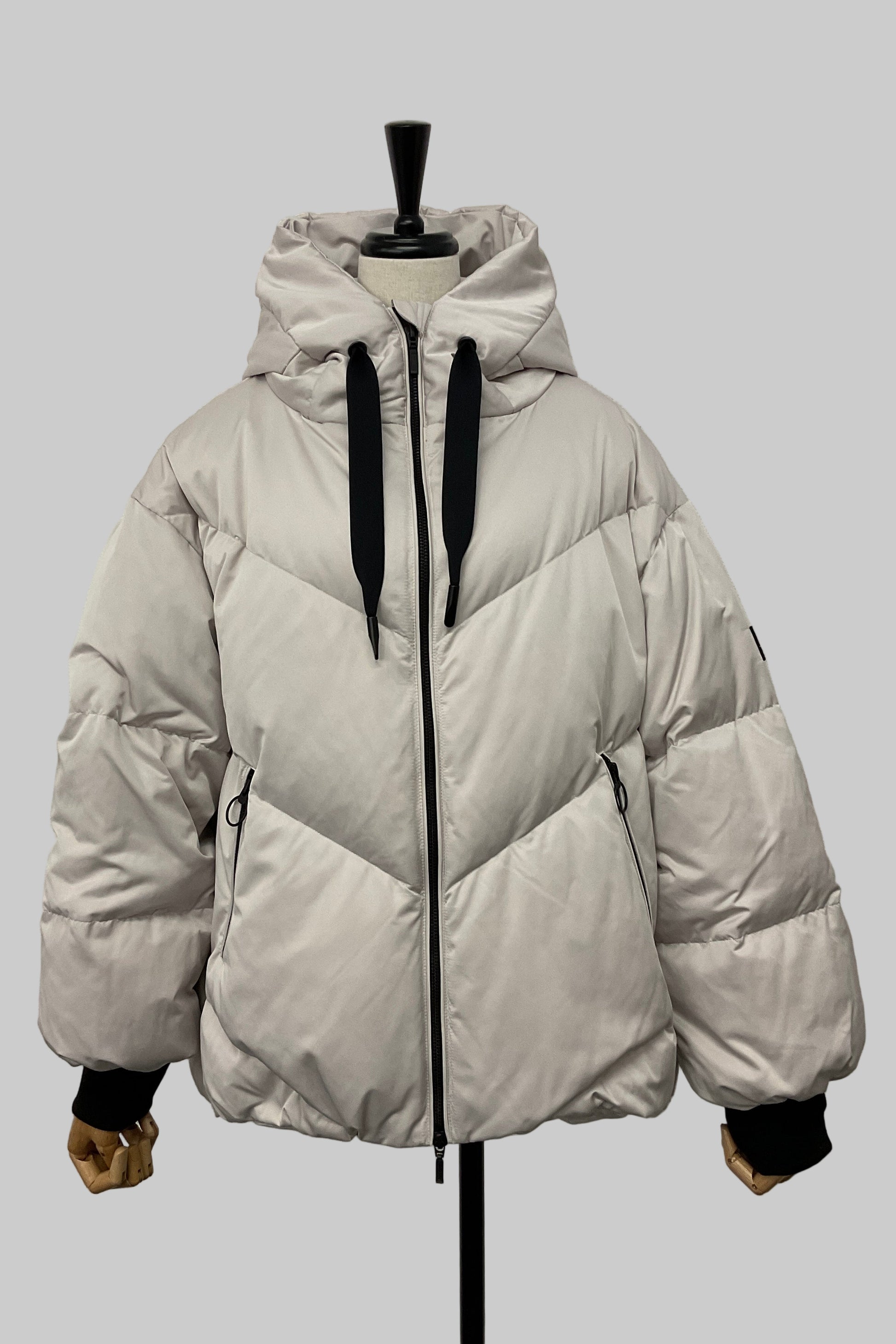 そのコンセプトを体現する一着として仕上げたコクーンダウンジャケットは、丸みのあるシルエットで女性らしさを引き立てながら、軽やかなダウンの暖かさに包まれる冬の必須アイテムです。