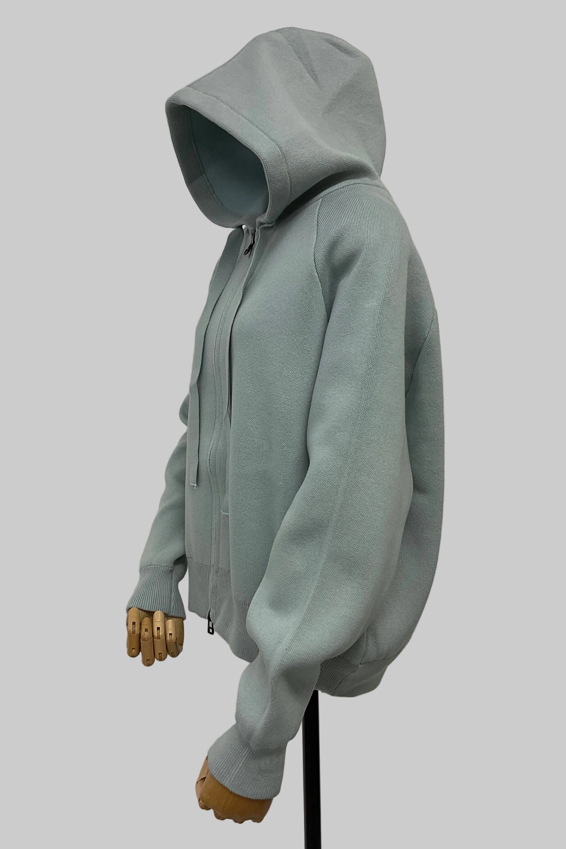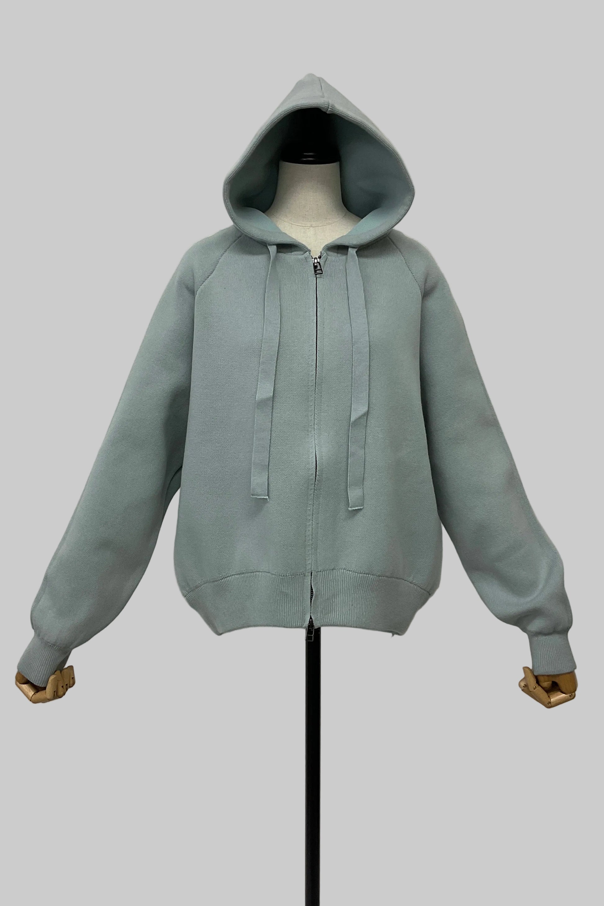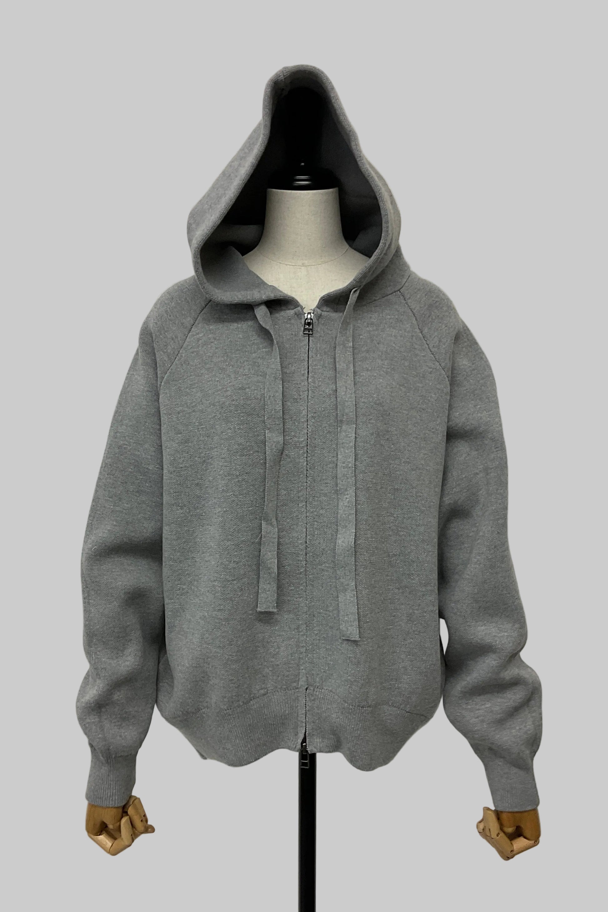 ハリのあるニット素材で仕立てた、カジュアルすぎない大人のためのフーディ。ほどよいゆとりのシルエットが抜け感をつくり女性らしい印象に。フロントは便利なダブルジップ仕様で、着こなしのアレンジも自在です。デイリーに寄り添いながら、きれいめスタイルにも馴染む万能アイテム。