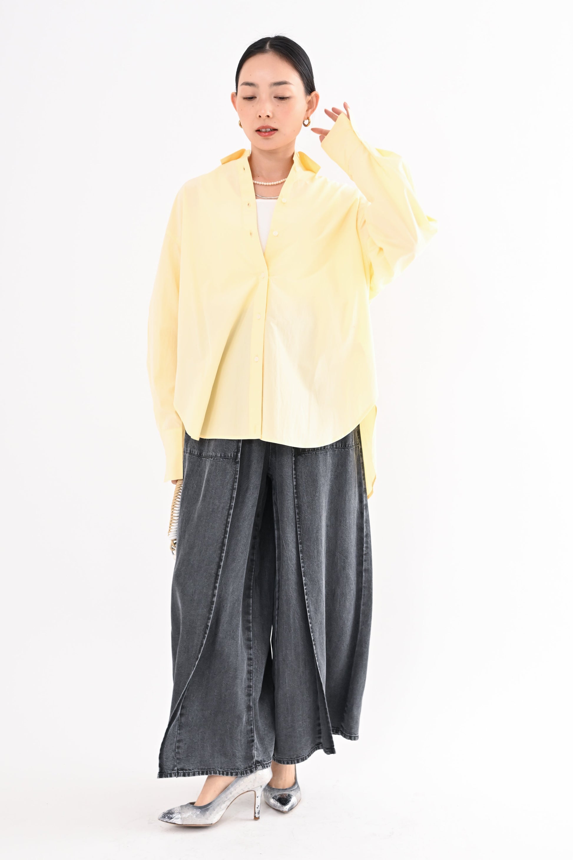 一見シンプルながら、着方次第で表情が変わるデザインシャツ。