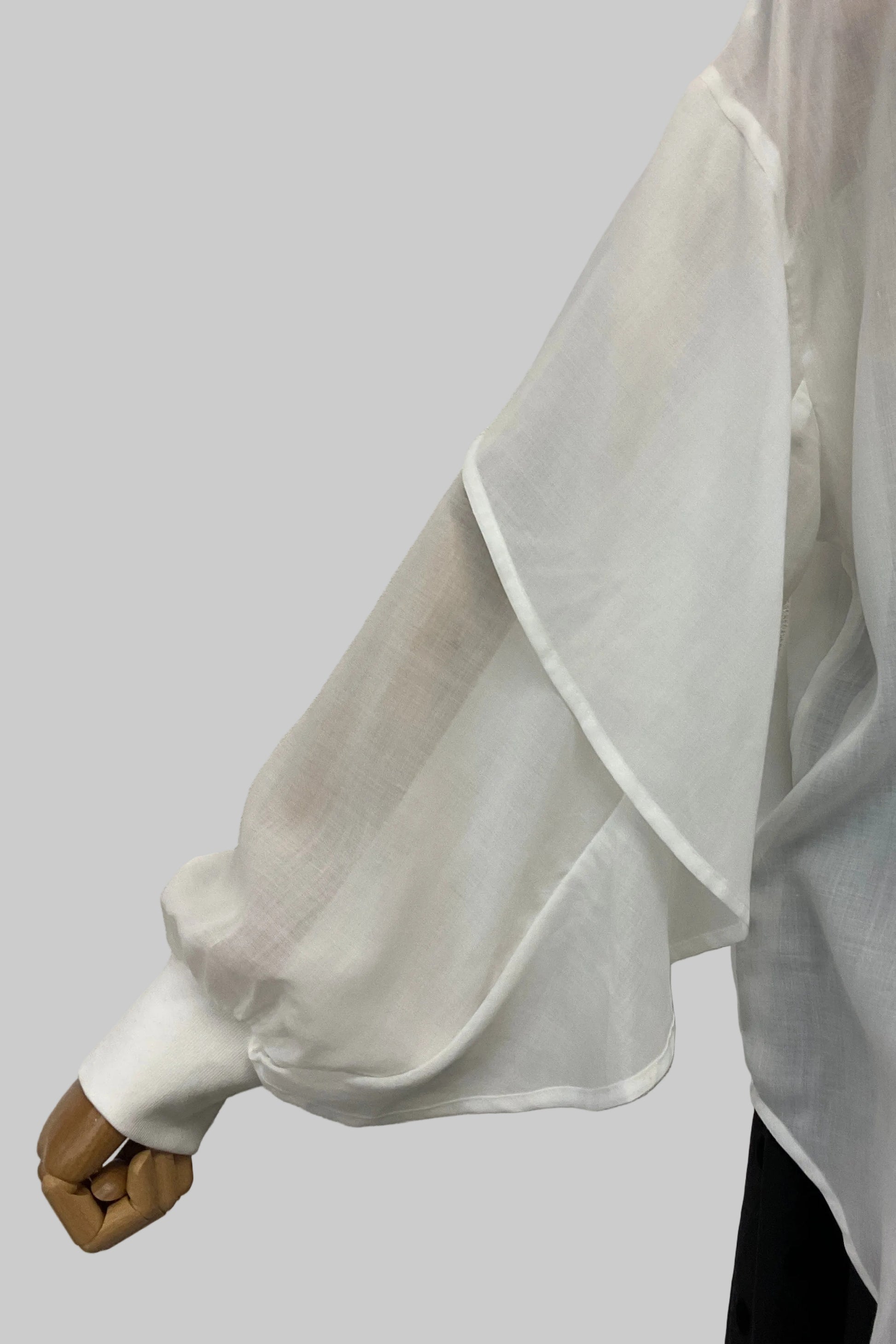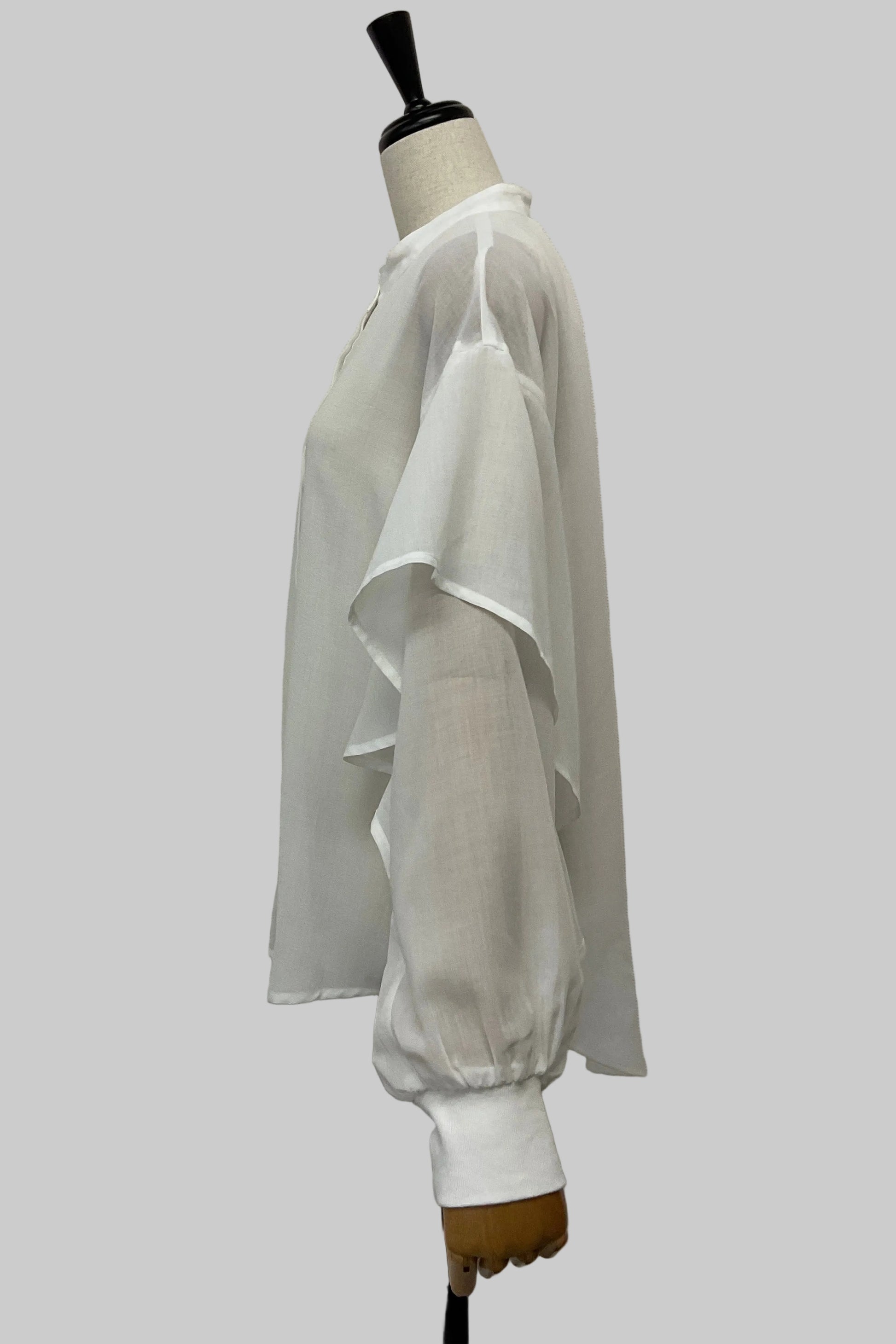 空気を纏うような軽やかさ。カラーで印象が変わる、大人のシアーブラウス。