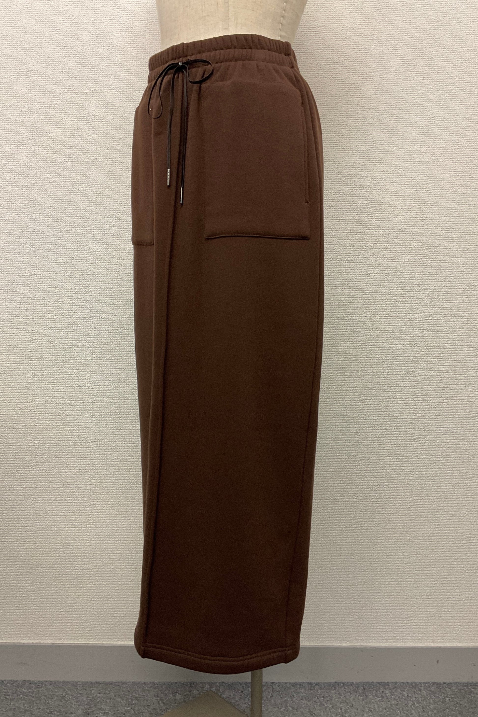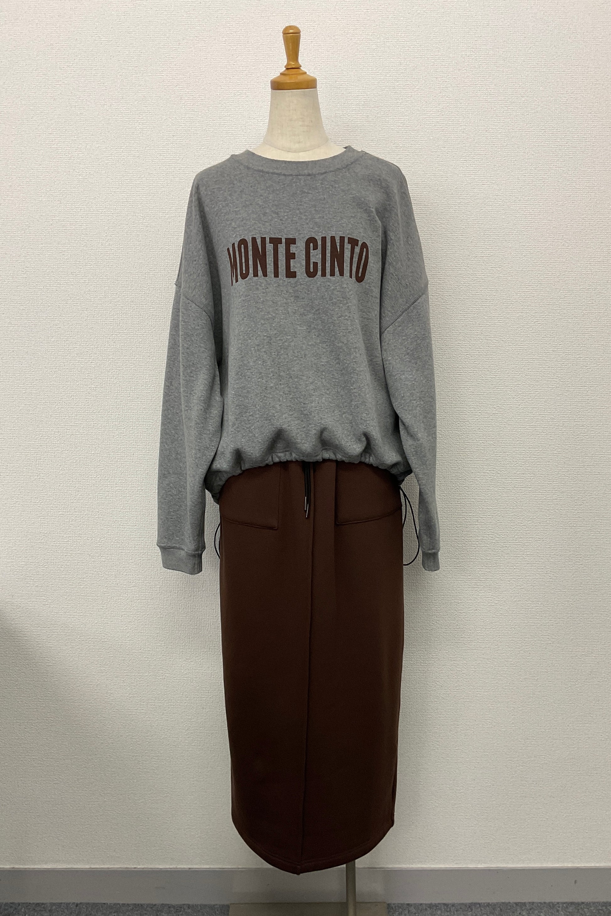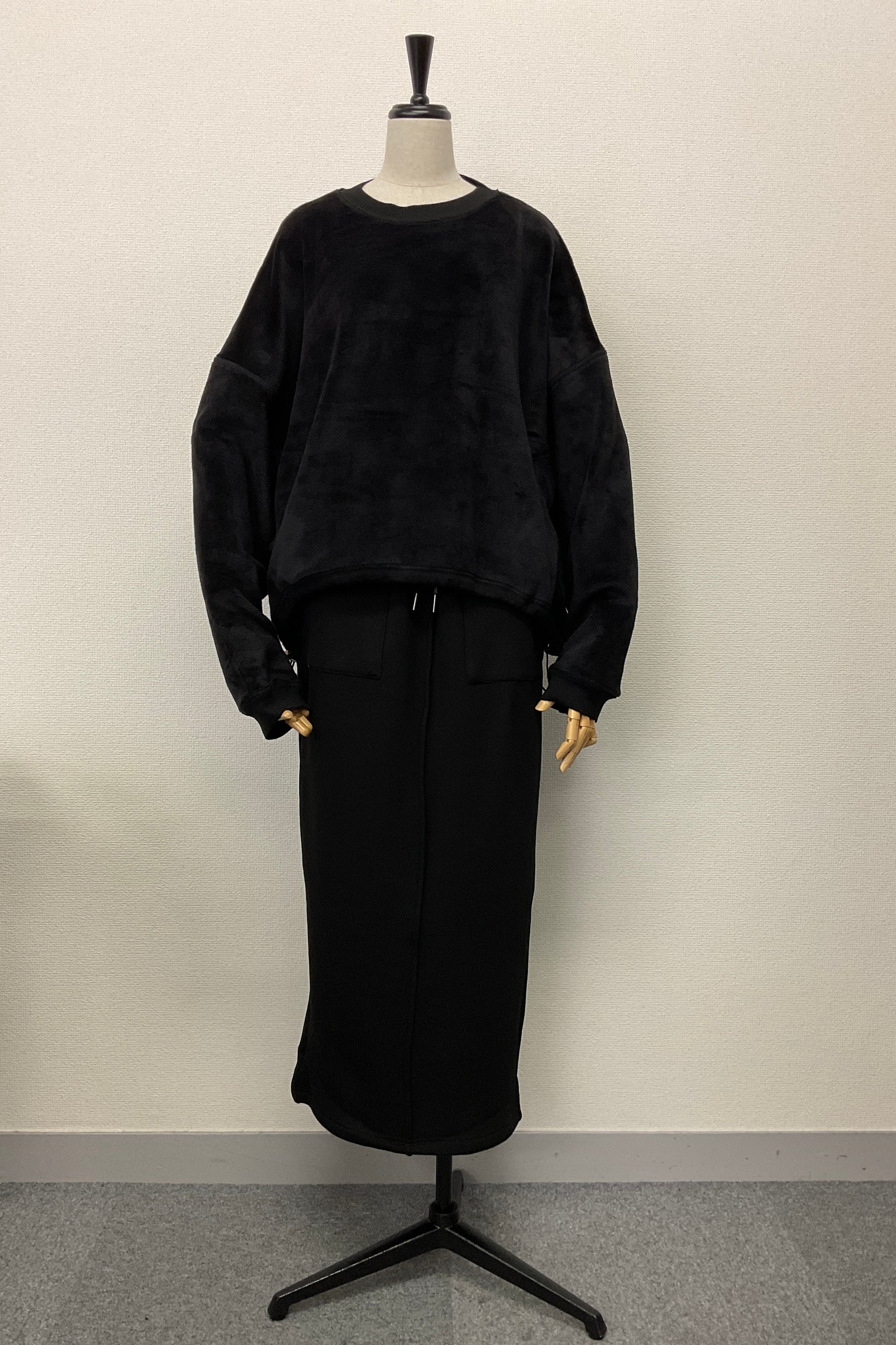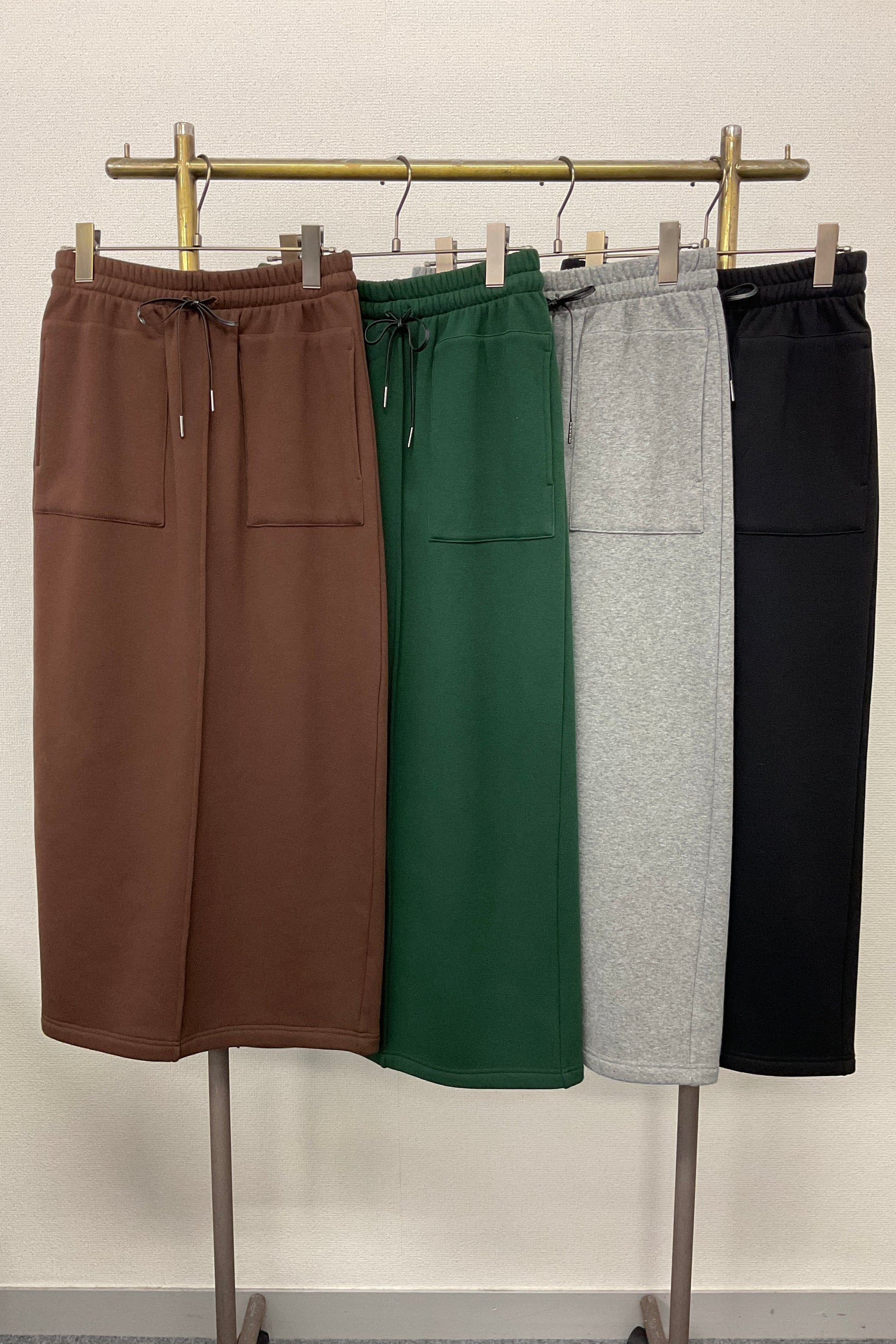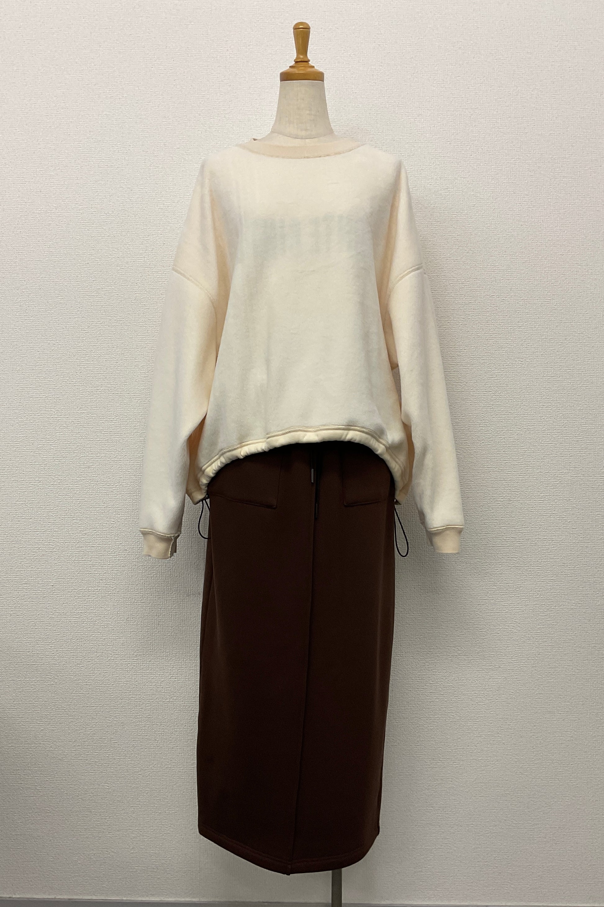 裏シャギーでシーズンムードを高めながら、すっきりIラインを描くスカート。快適なウエストゴム仕様で、デイリーに気軽に穿けるのも魅力です。単品での着回しはもちろん、同素材のスウェットとセットアップで着れば一気にこなれ感がアップ。シーンを問わず使える万能な一枚です。