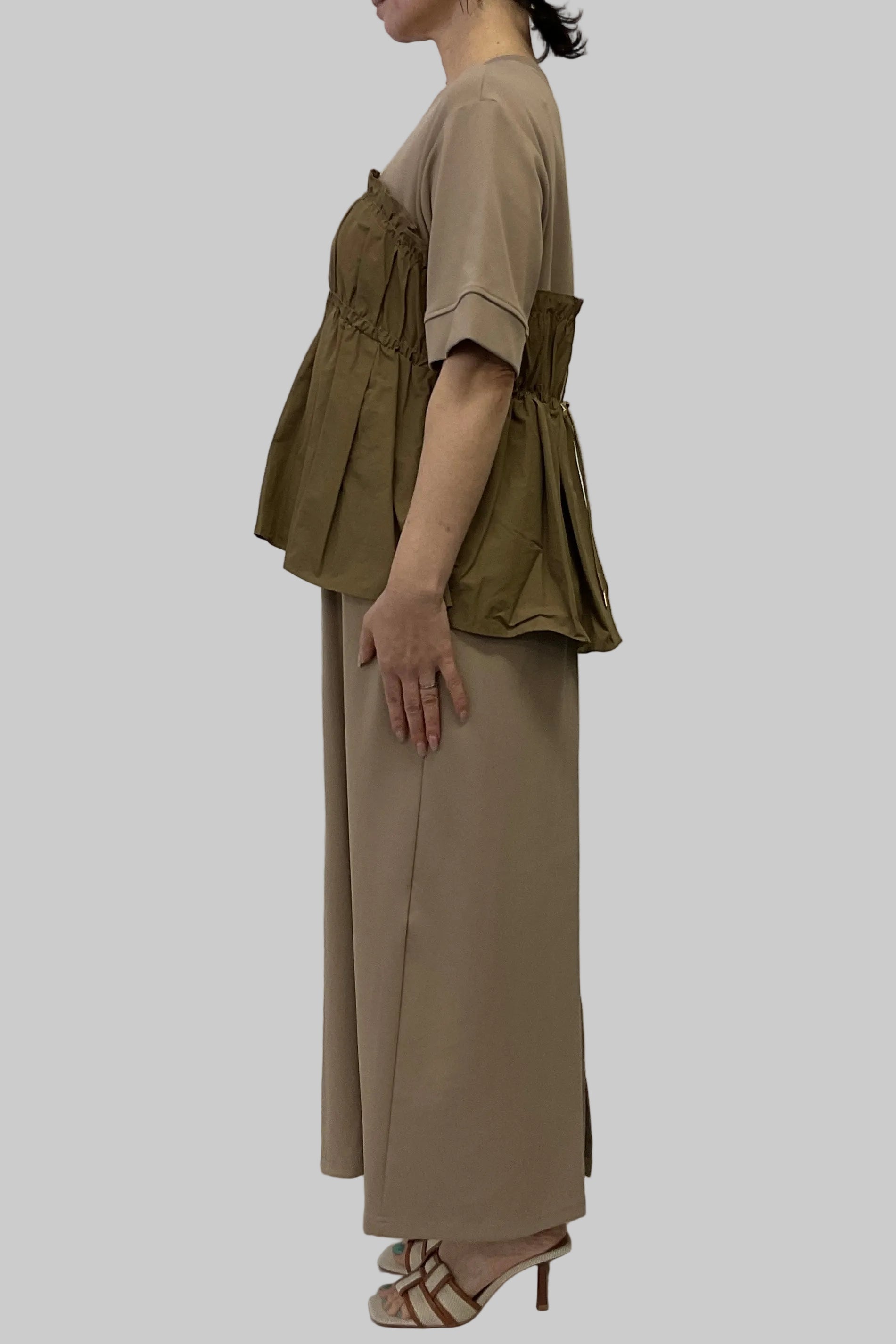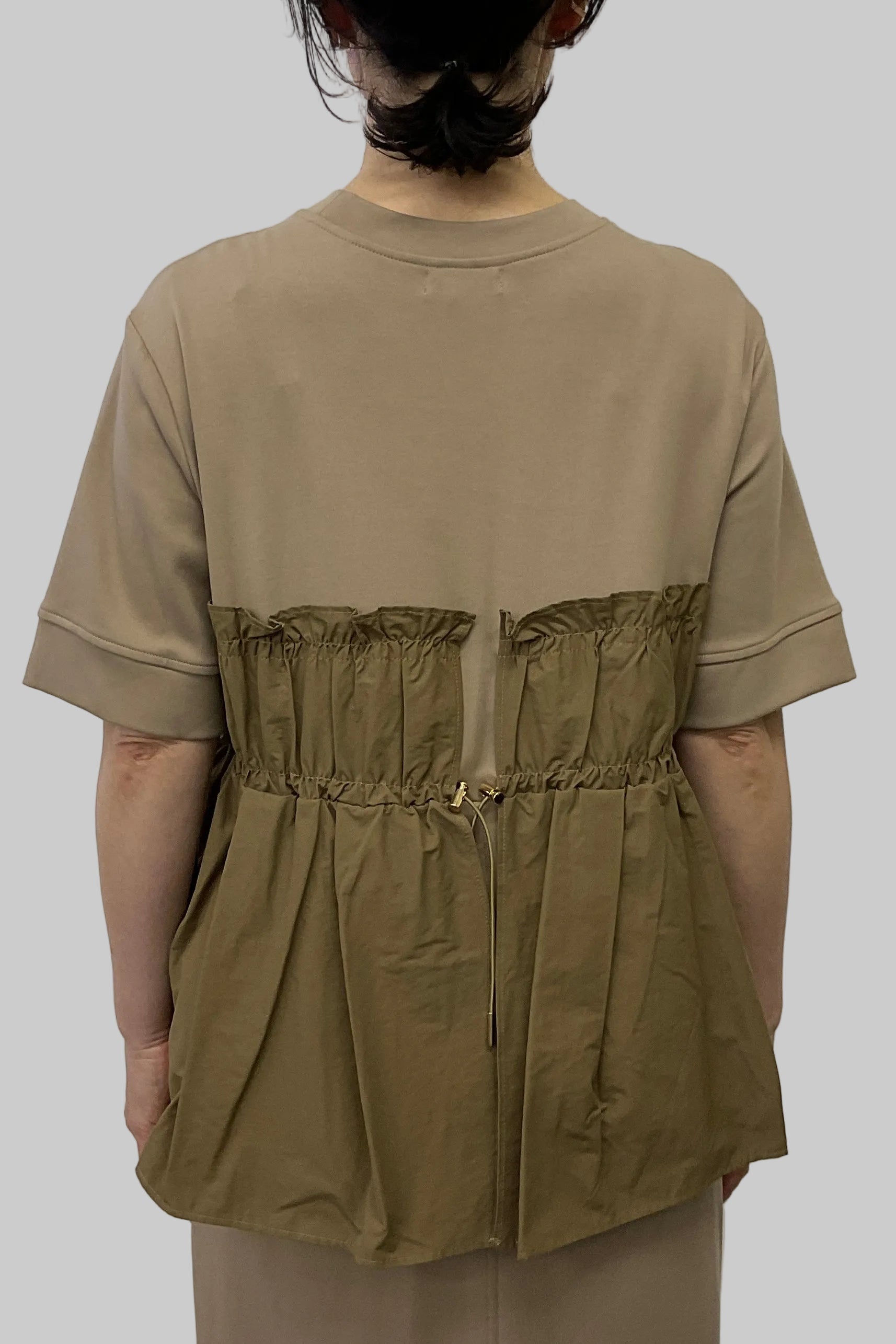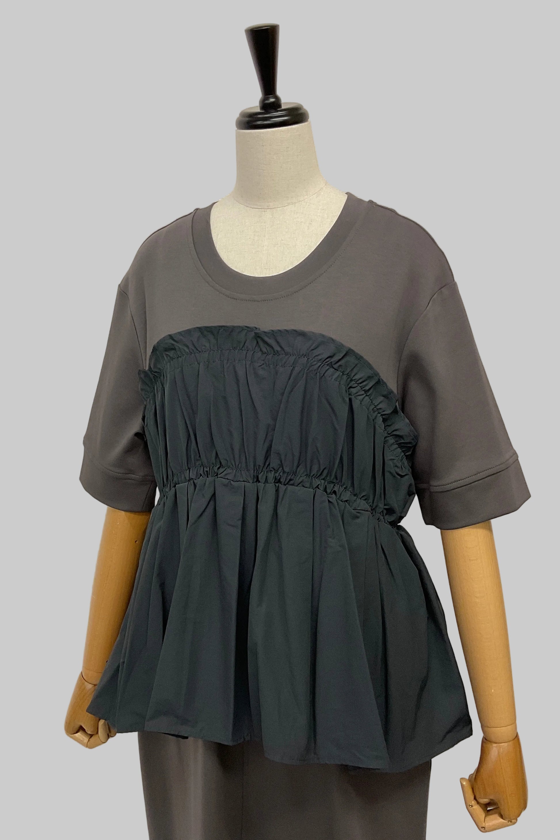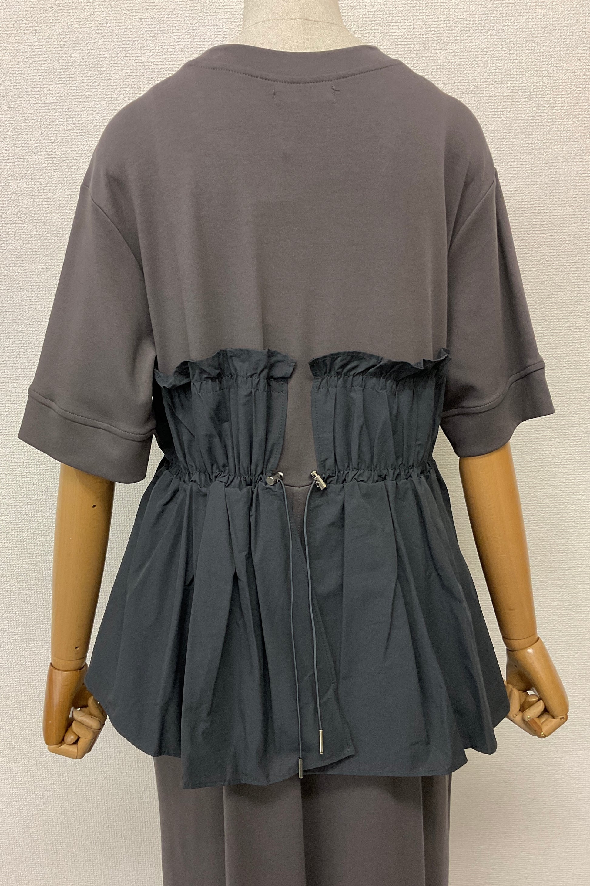 ・カットソー×ナイロン素材のドッキングデザイン