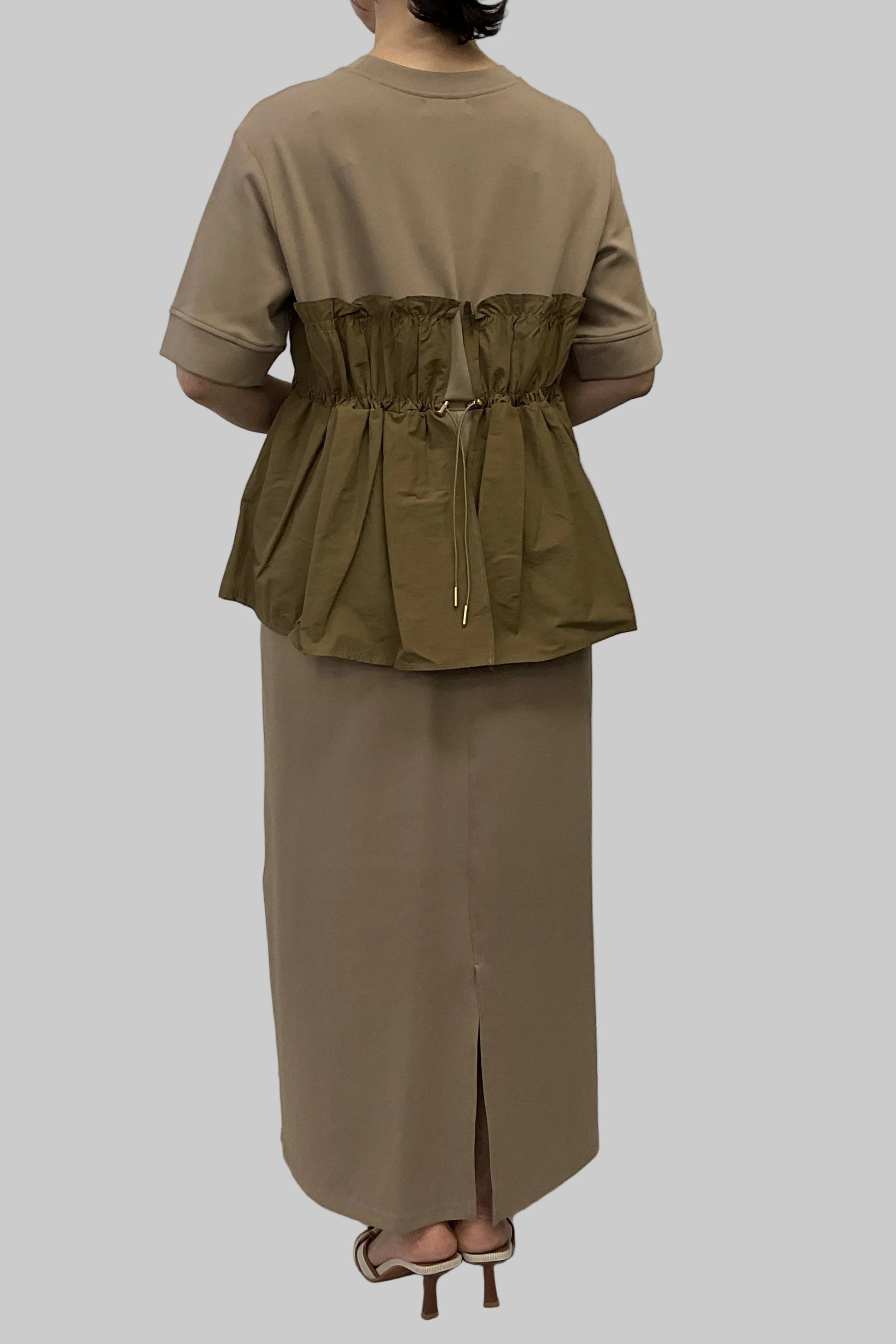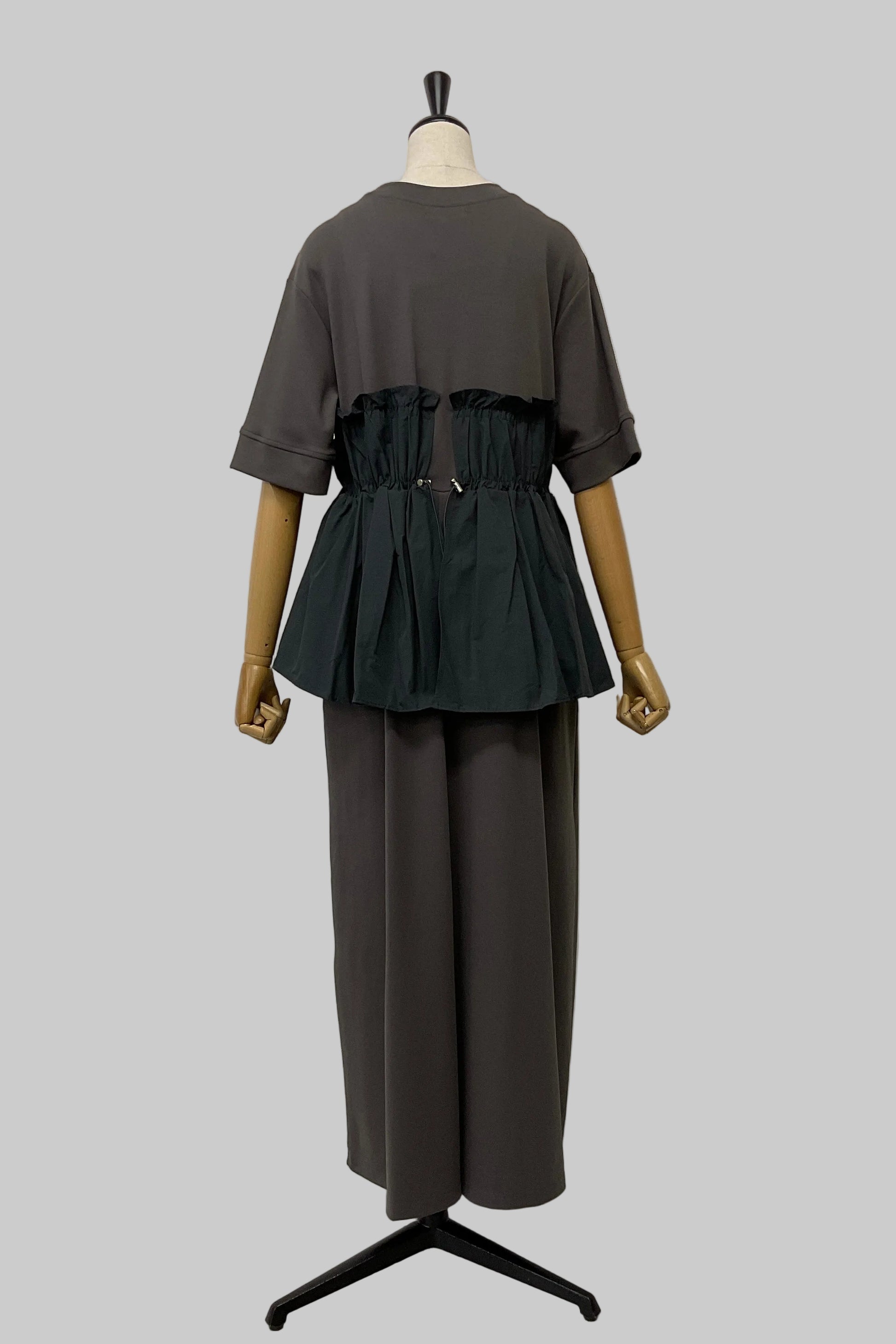 ビスチェ部分にはドローコードを施し、シルエットの調整が可能。