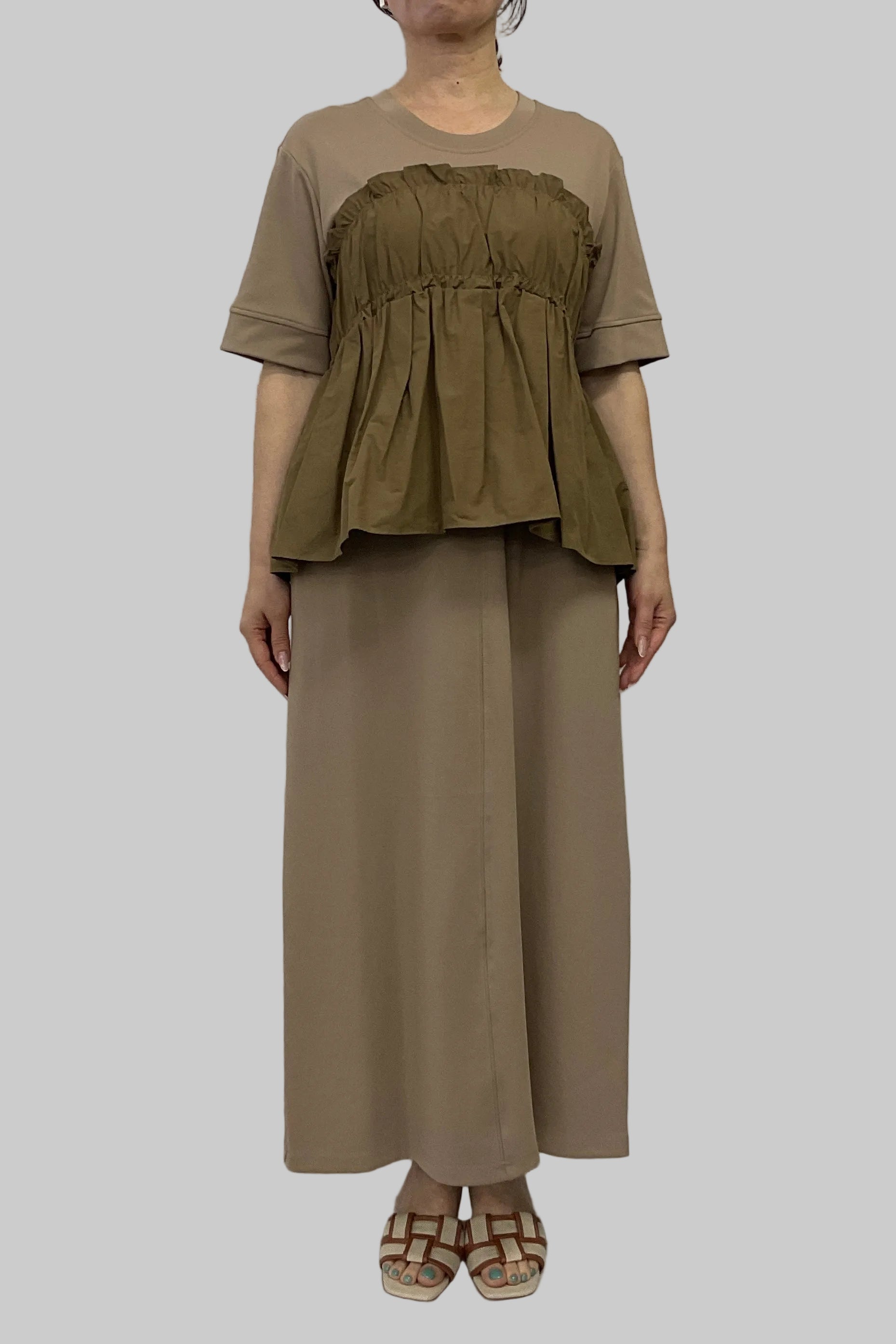 透け感がなく一枚でさらっと着られるので、スタイリングに悩まず旬のコーデが完成します。