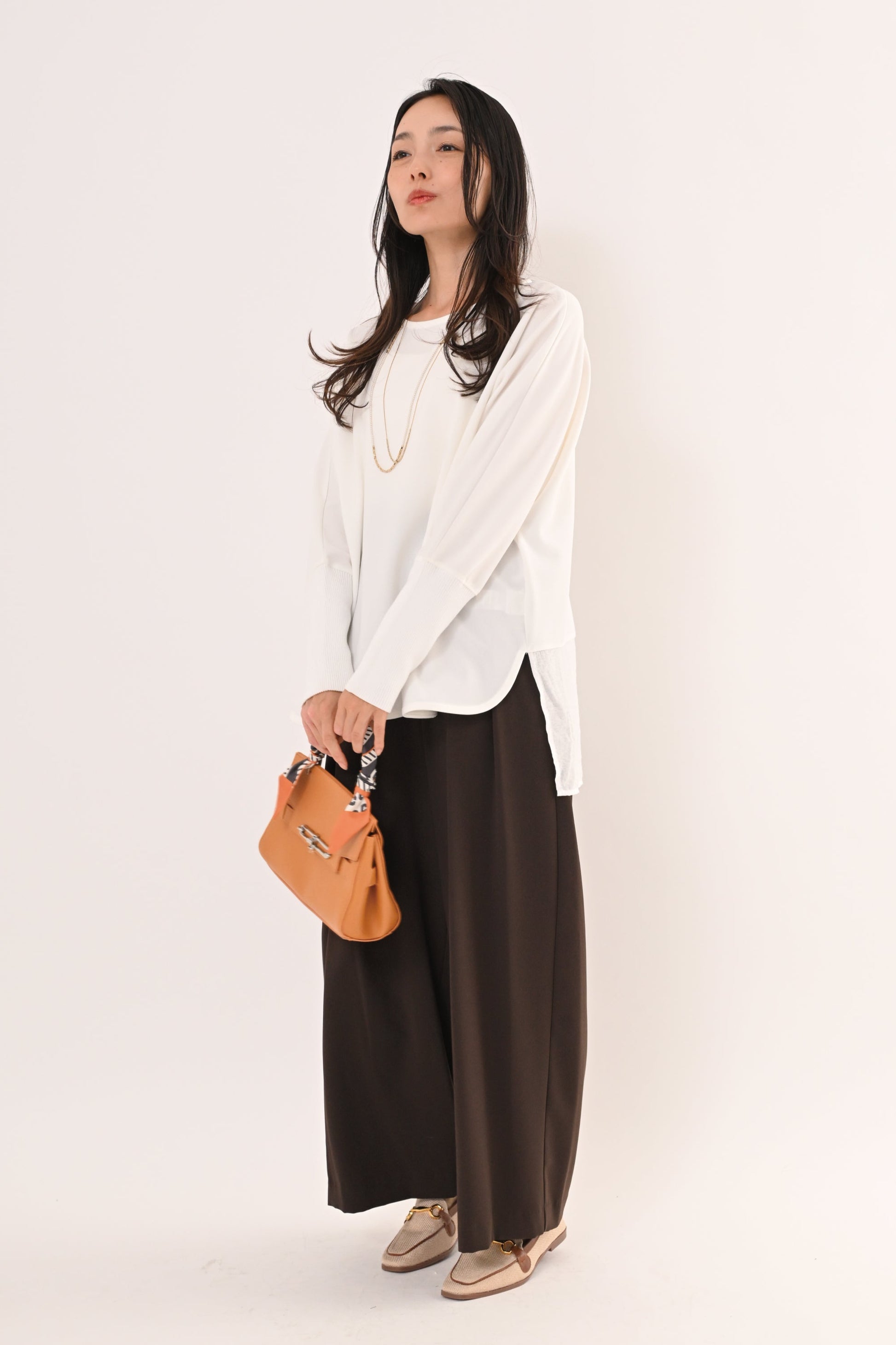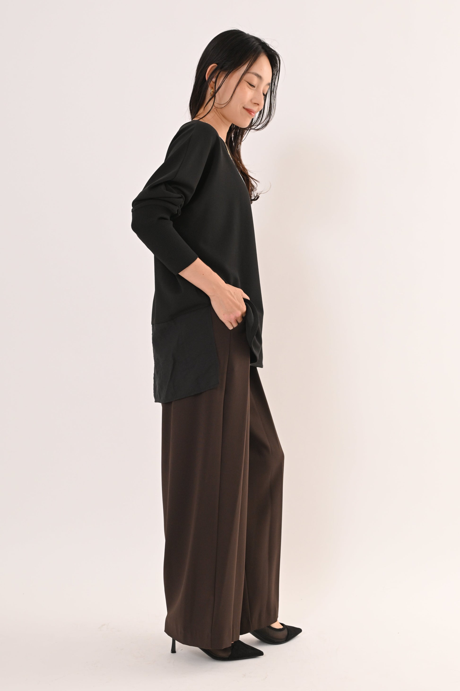 とろみのあるジョーゼット素材が湧き、自然な落ち感と立体的なシルエット。