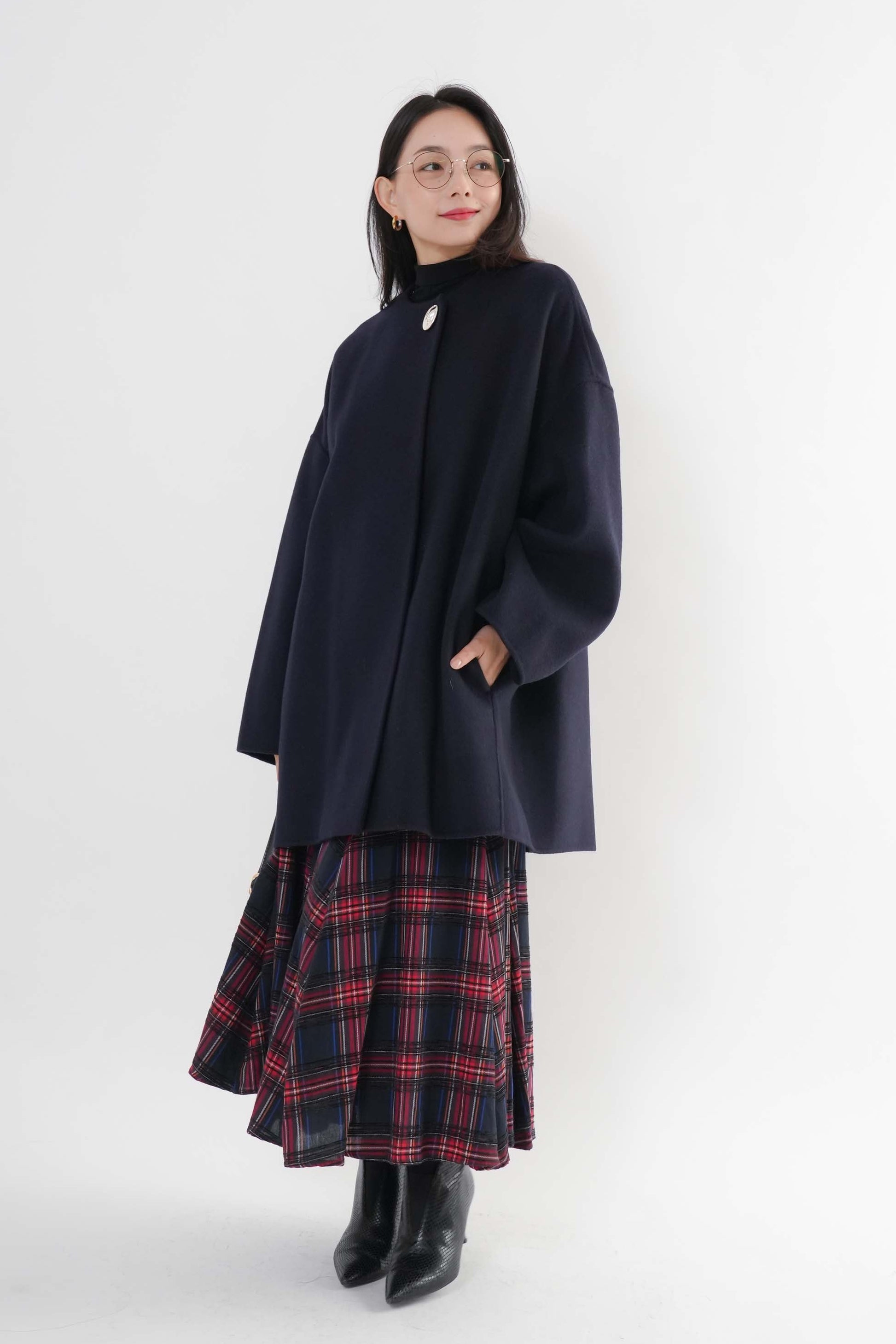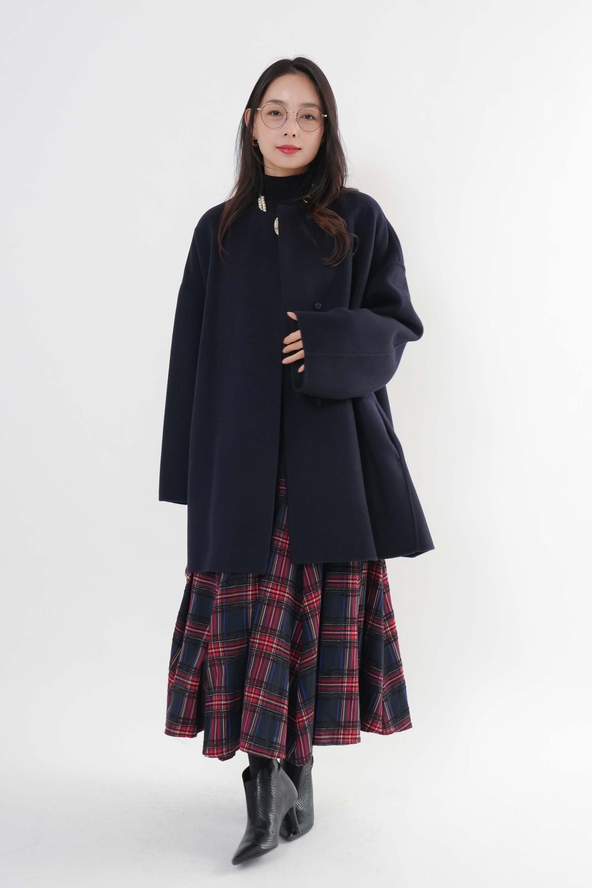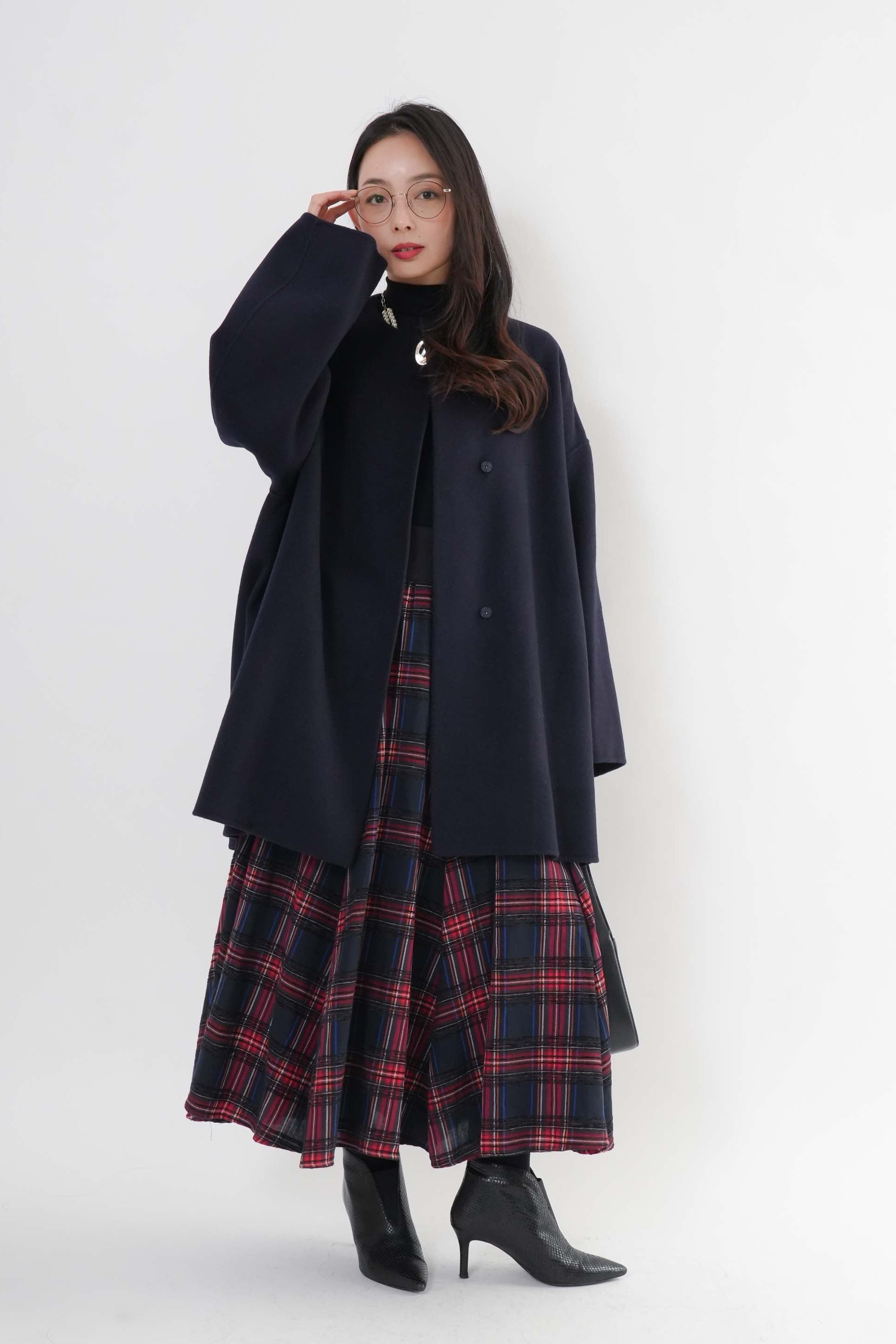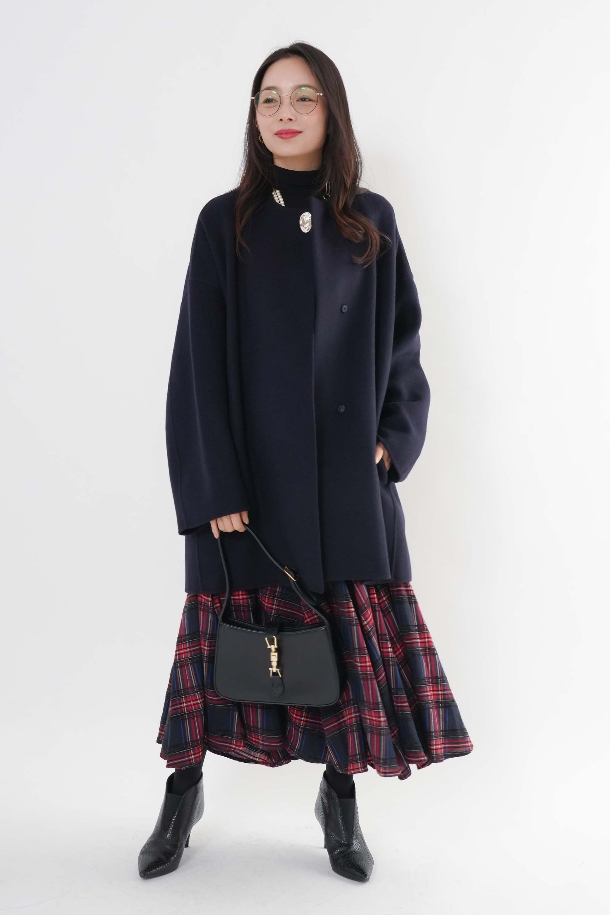 品格と女性らしさを大切にする大人のためのブランド「Dignite Collier」から、存在感のあるノーカラービッグシルエットコートが登場。
