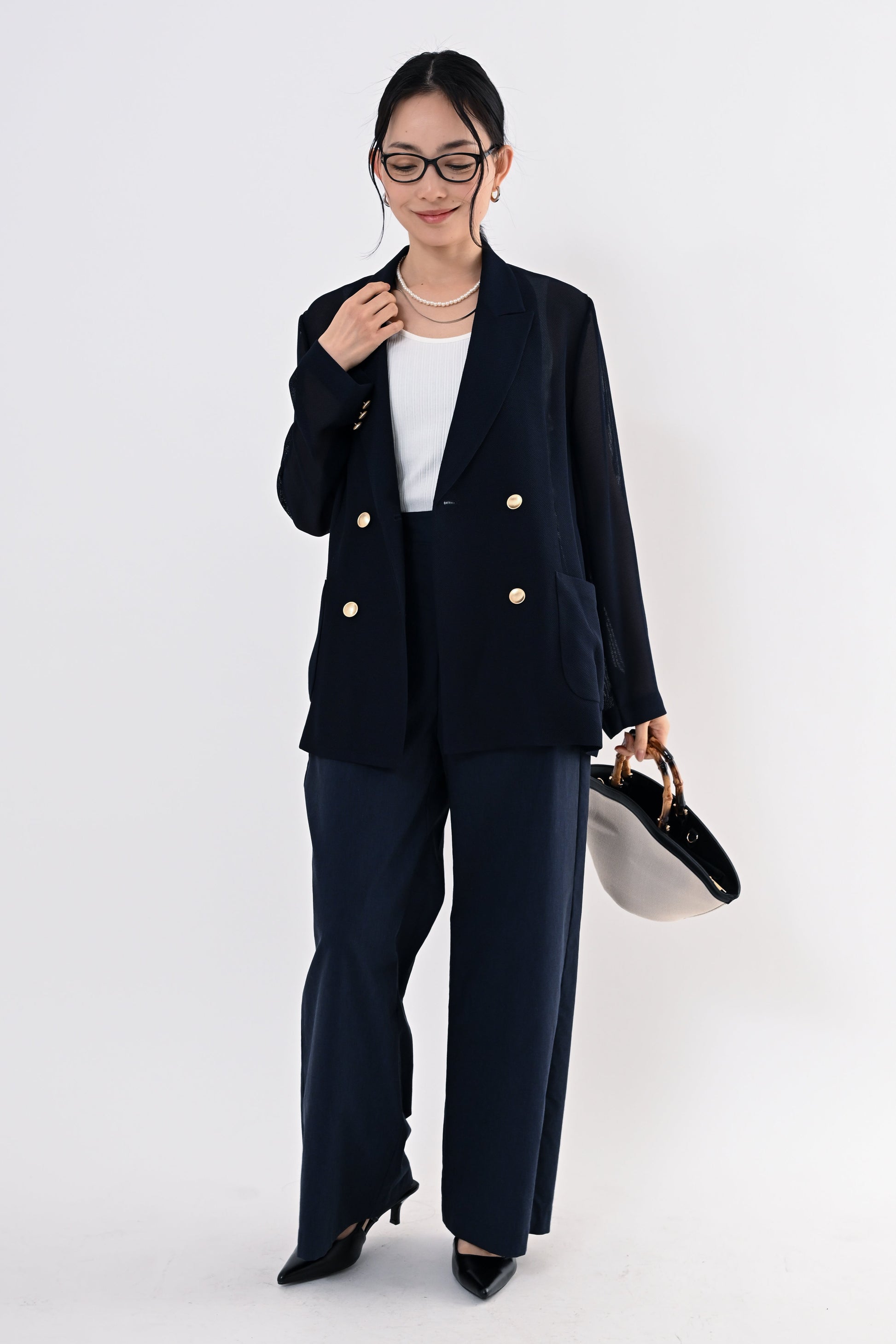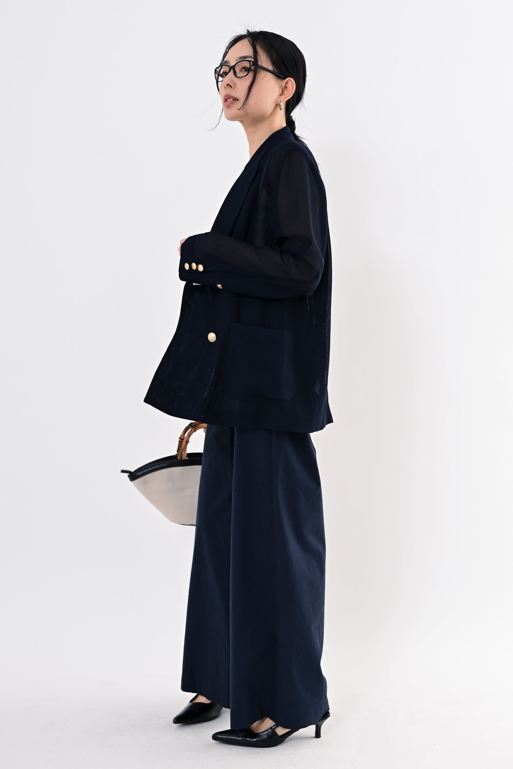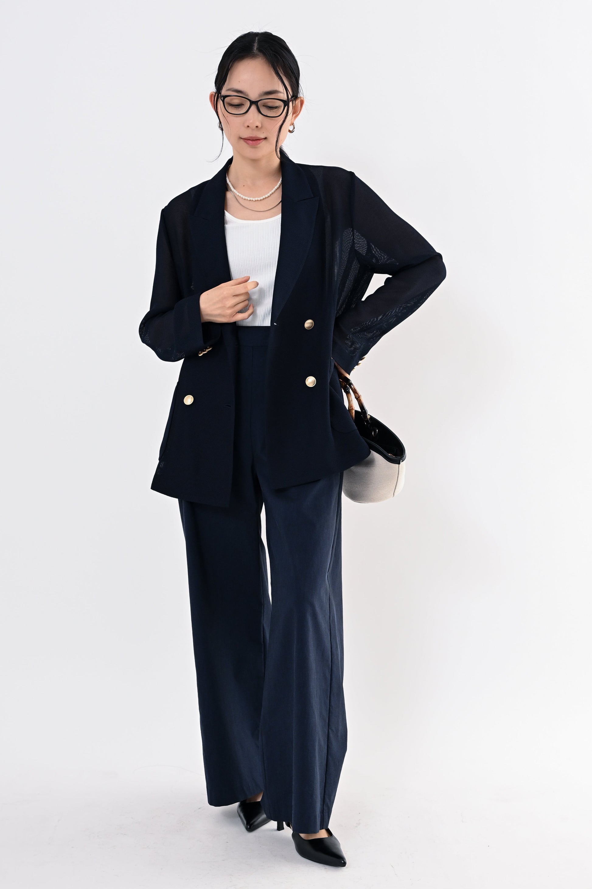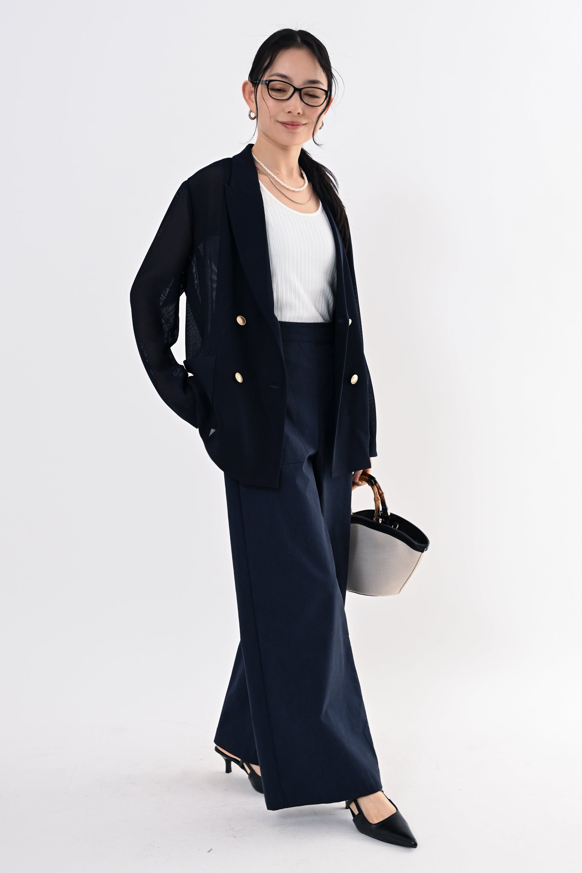 きちんと感と軽やかさを両立した、メッシュダブルジャケット。