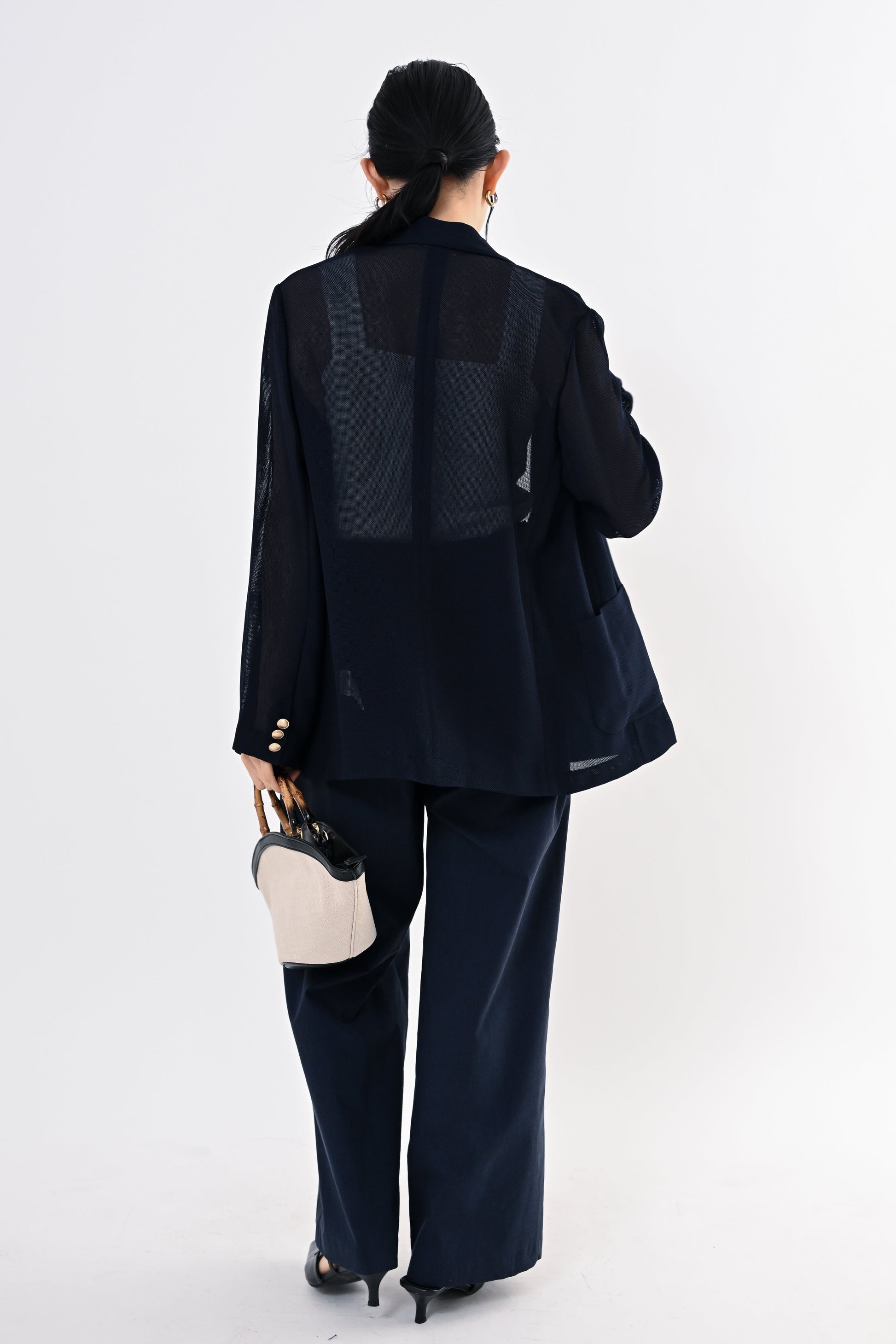 通気性の良いメッシュ素材を使用し、ジャケットでありながらも涼しく、ストレスフリーな着心地を実現。ほんのりとした透け感が、コーディネートに抜けを生み出し、重たく見せません。