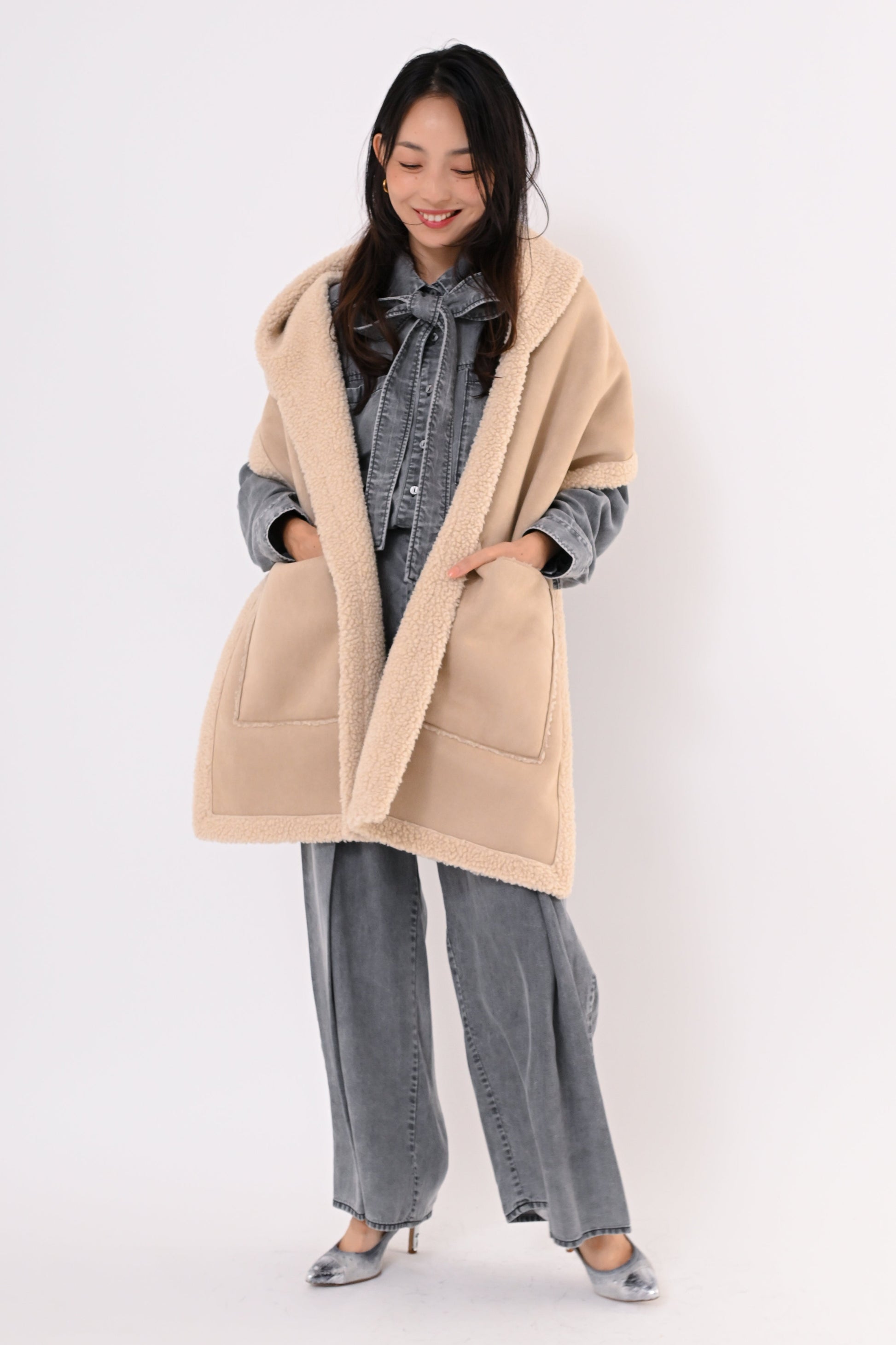 ふんわりとしたボア素材が魅力のムートン風リバーシブルスヌード。 まるで
