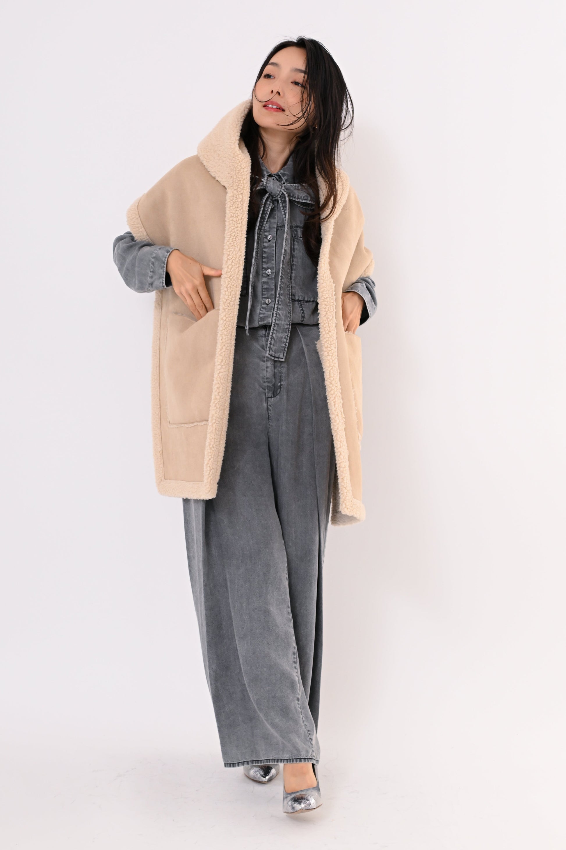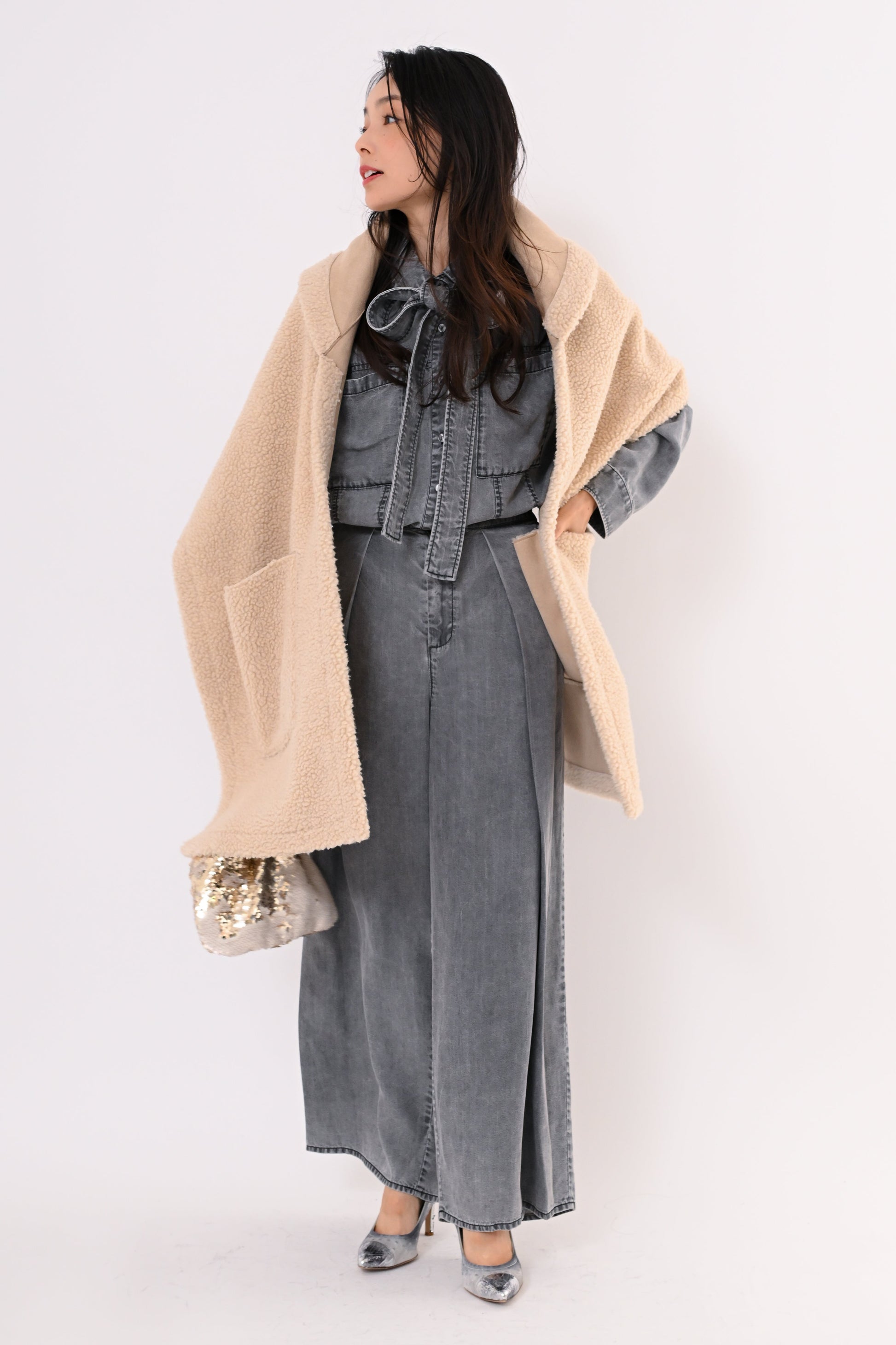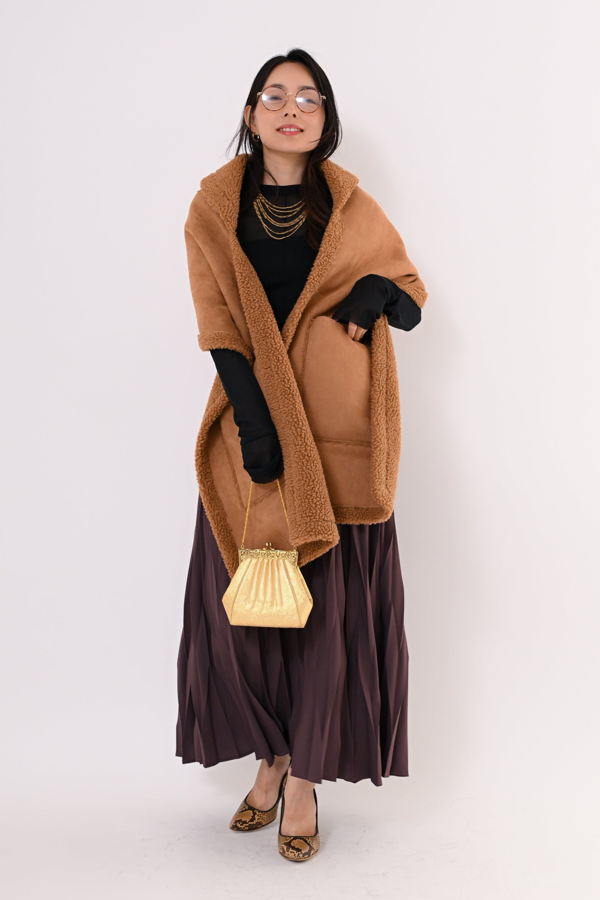羽織れるように身に着けるデザインで、さっと肩を置くだけで季節感と並行感をプラスしてくれます。