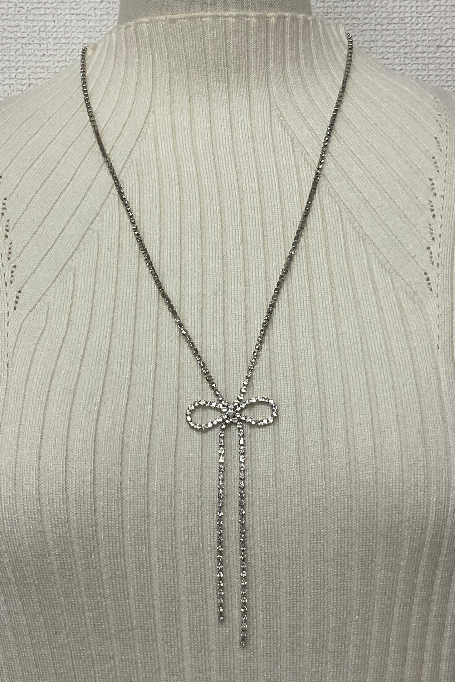 繊細な煌めきが、首元にエレガントな余韻を残すリボンネックレス。
