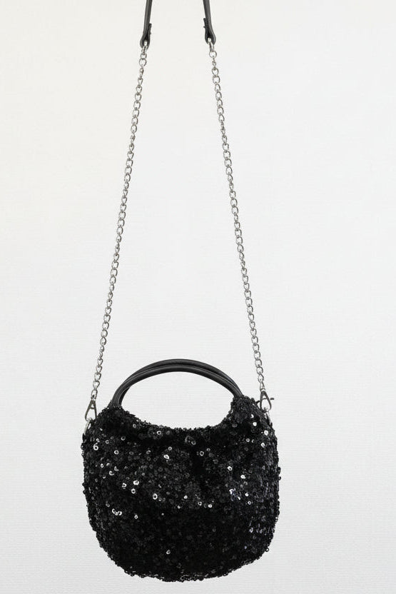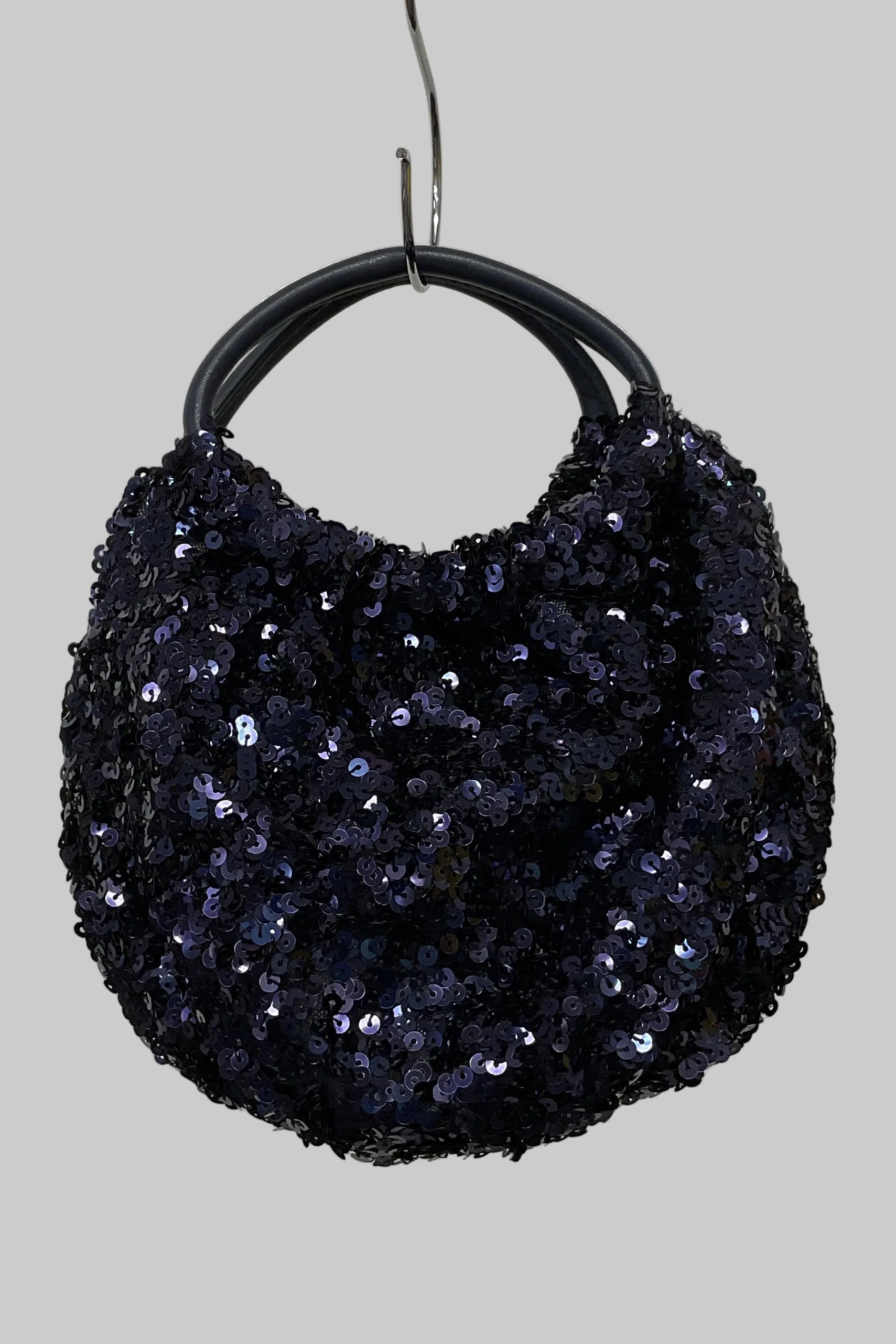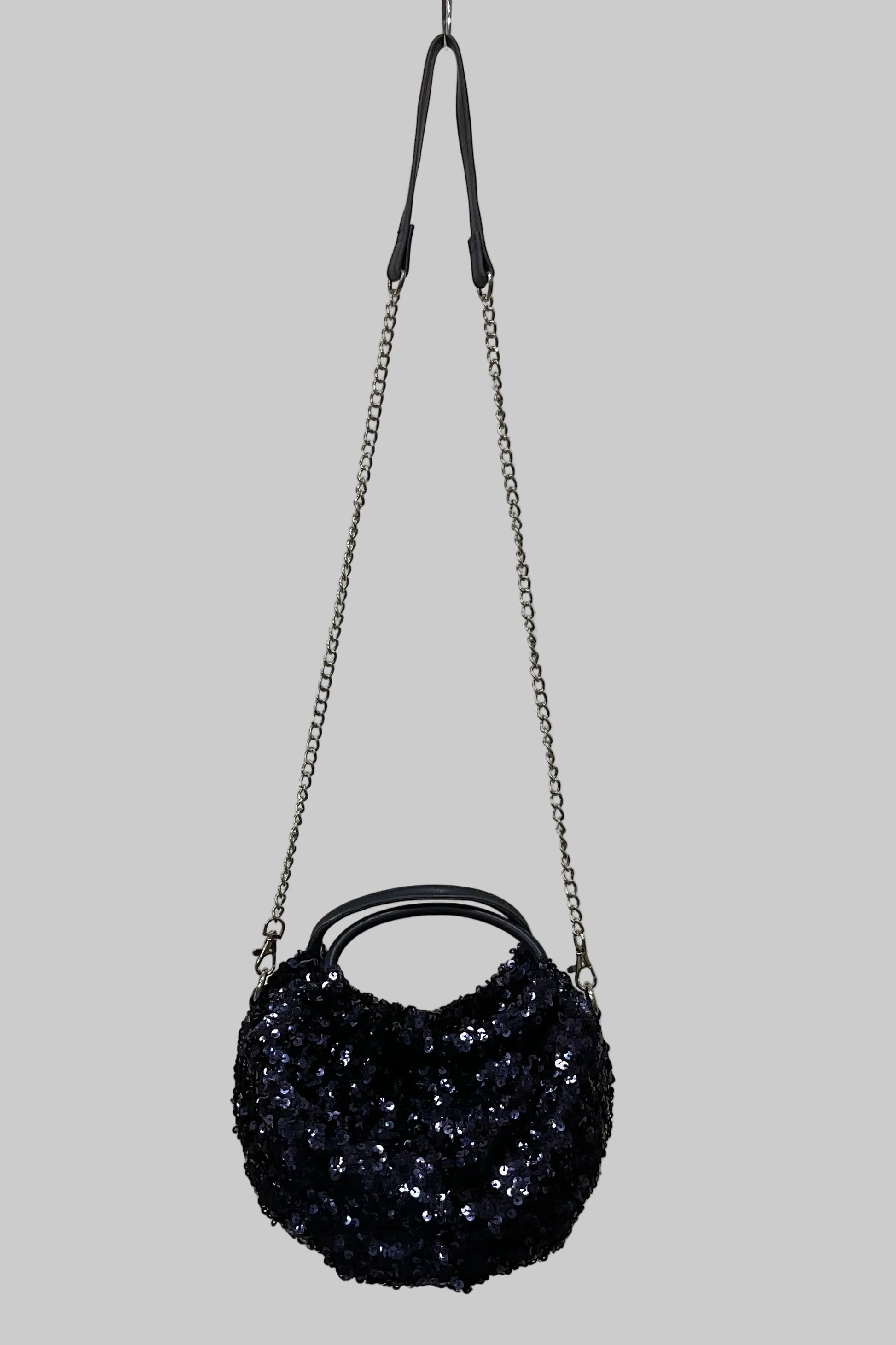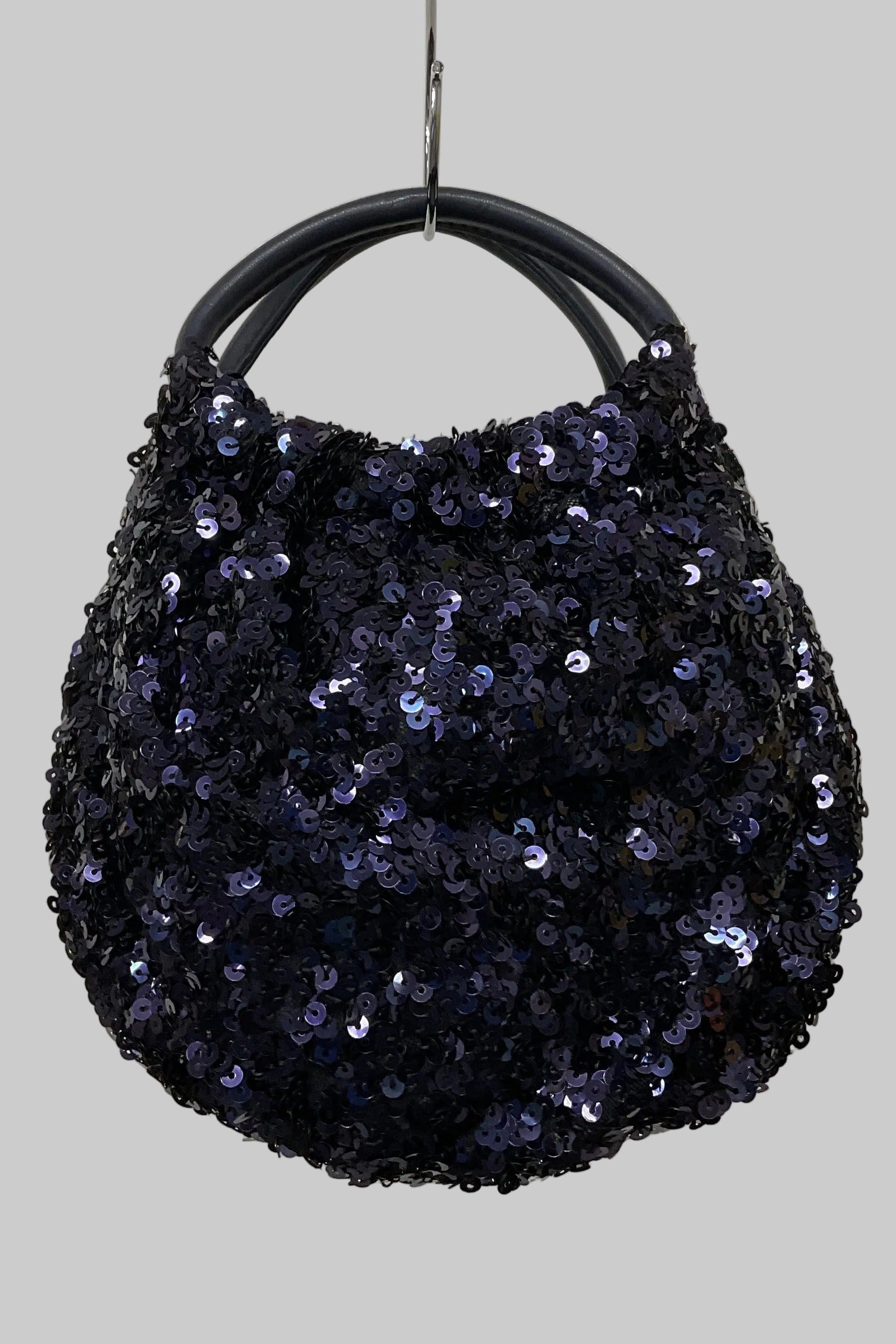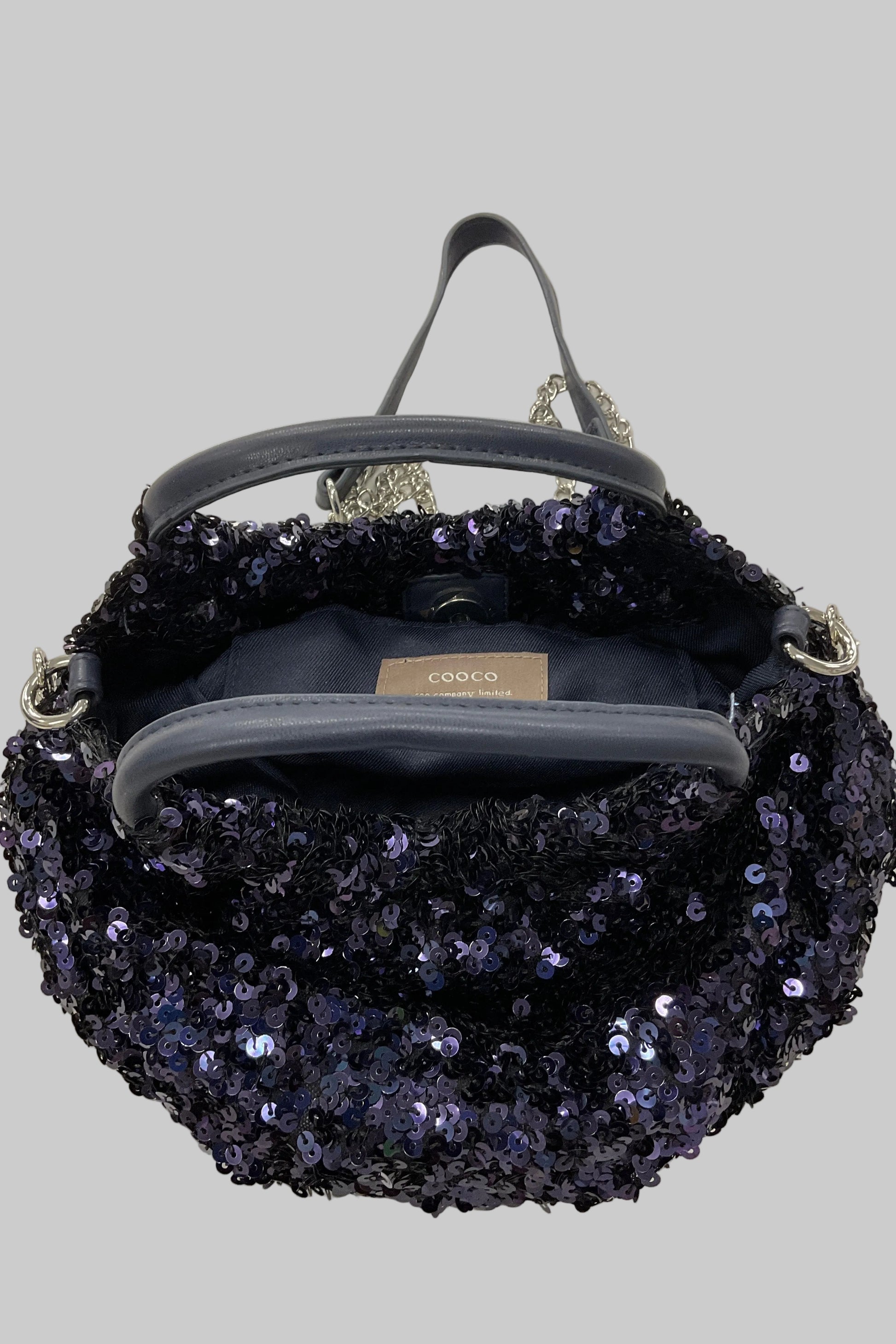 コロンとしたフォルムが可愛い、丸手のスパンコール2WAYバッグ。