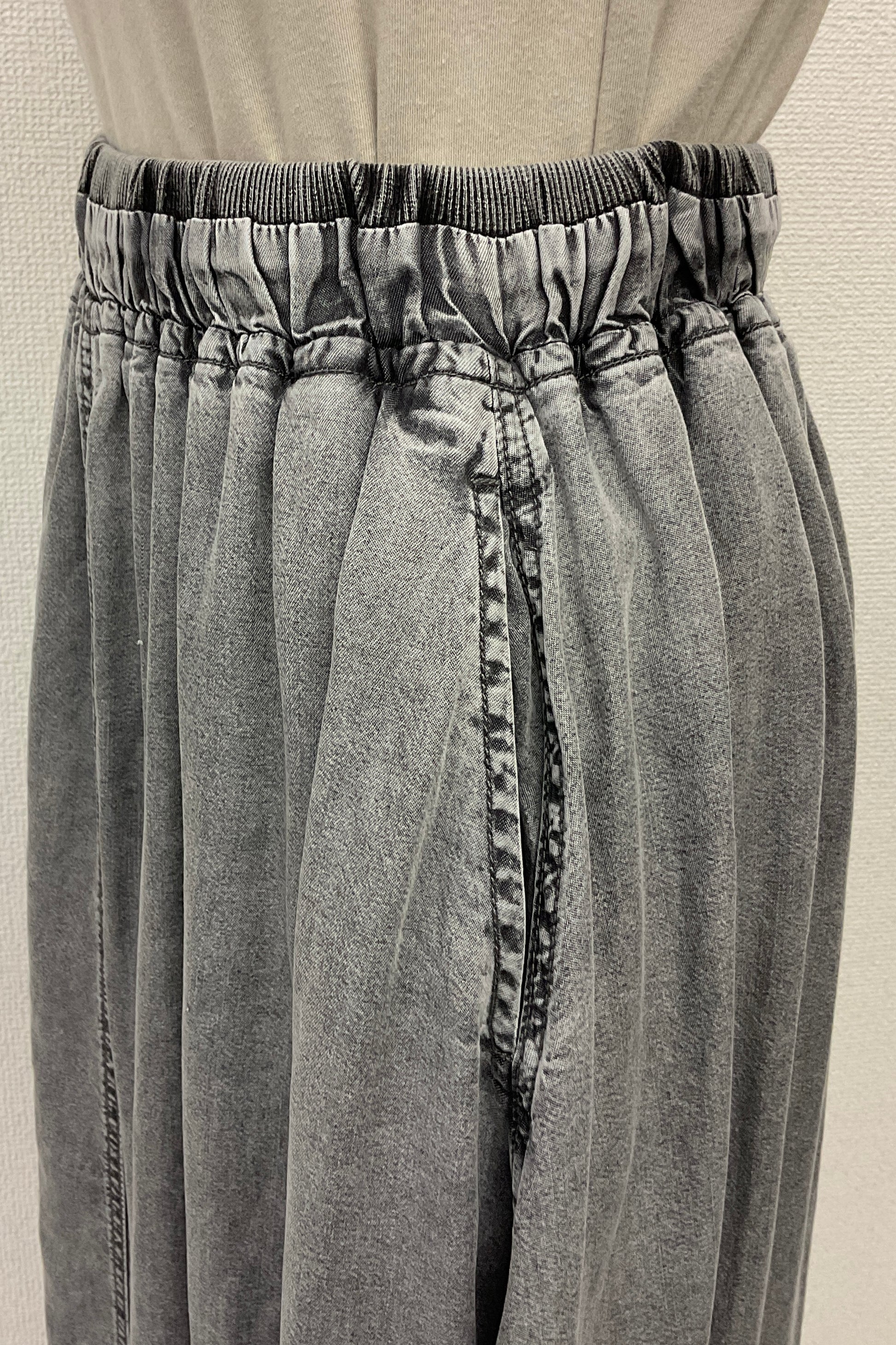 軽やかでしなやかな落ち感が美しく、デニム見えしながらもカジュアルになりすぎない一着。