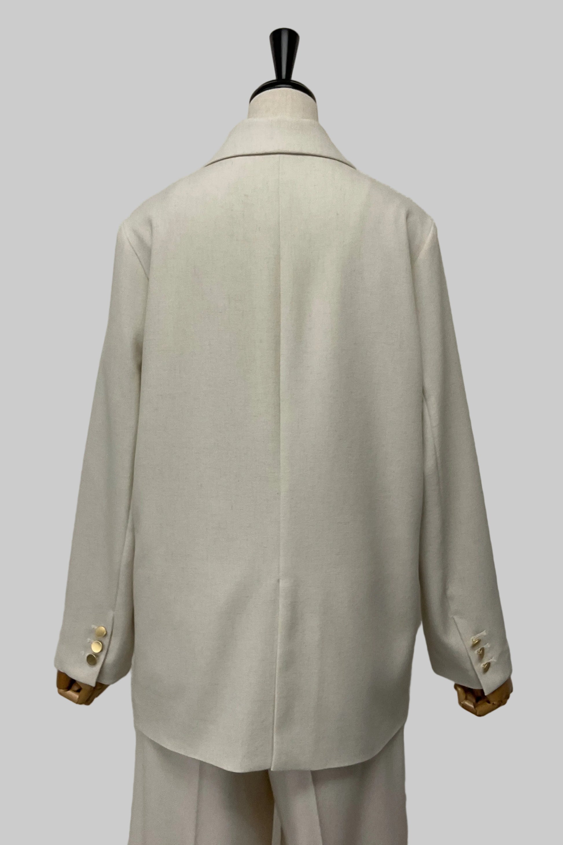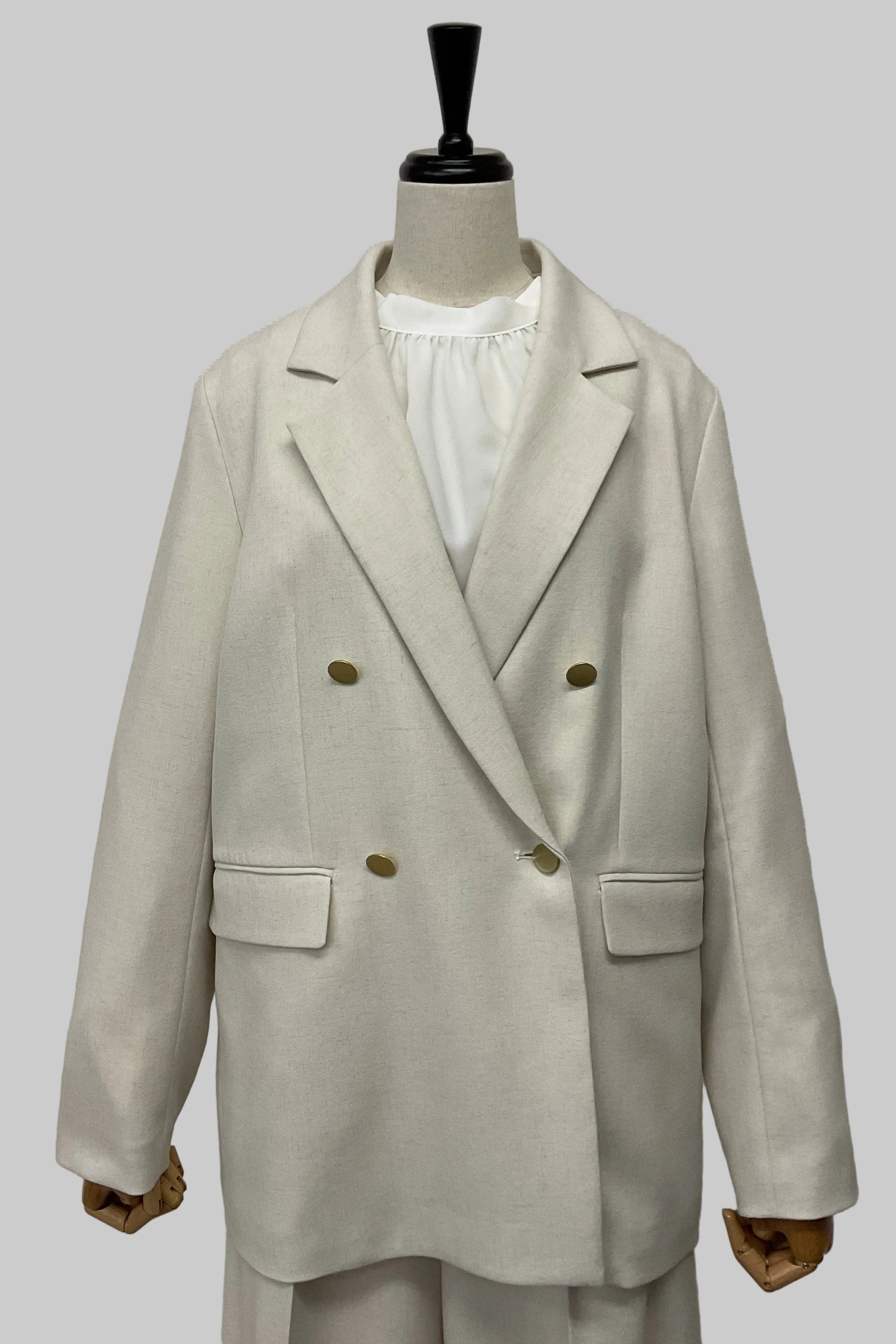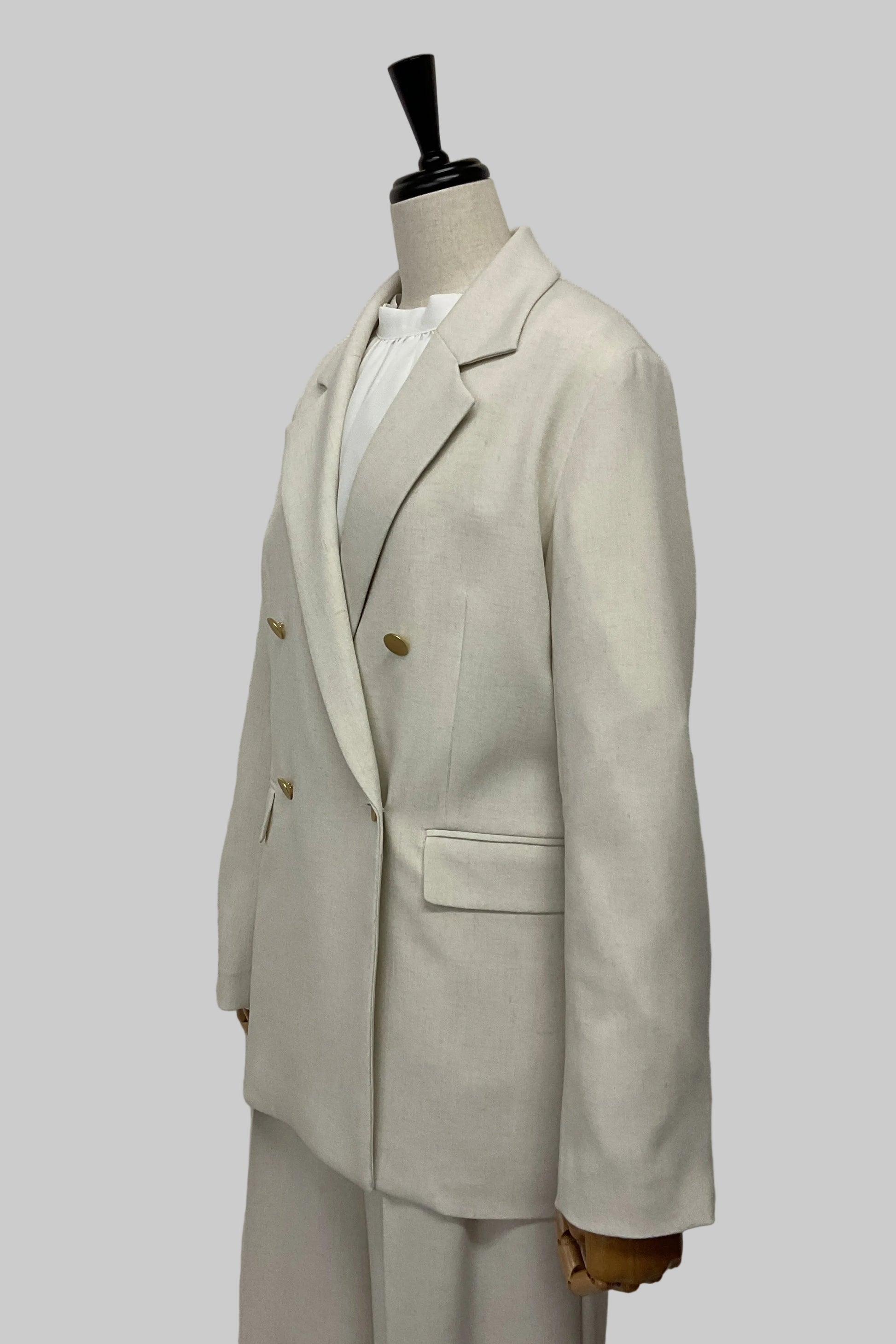 ・リネン混素材ならではの軽やかさとナチュラルな風合い・ダブル仕様で程よくマニッシュな雰囲気を演出