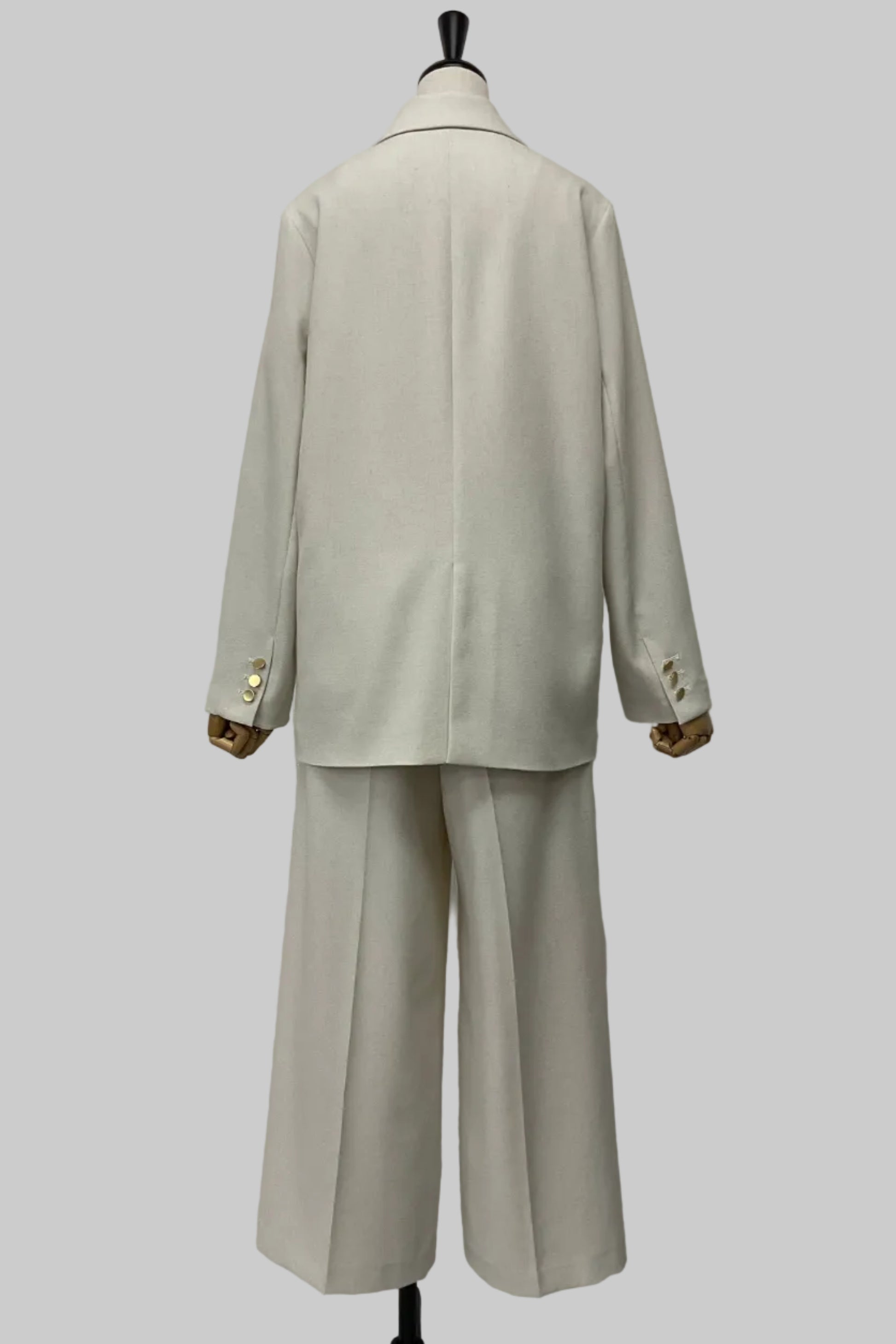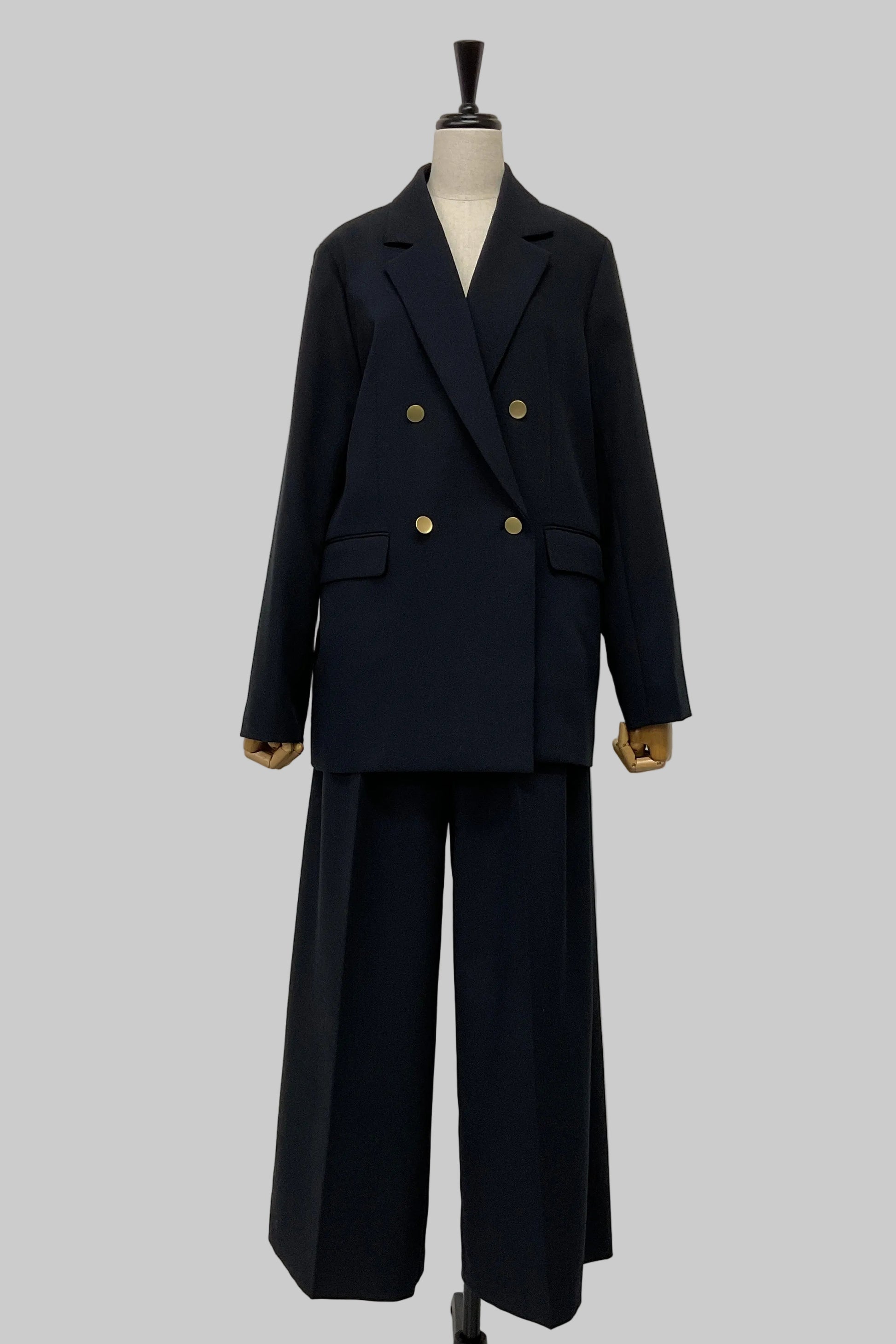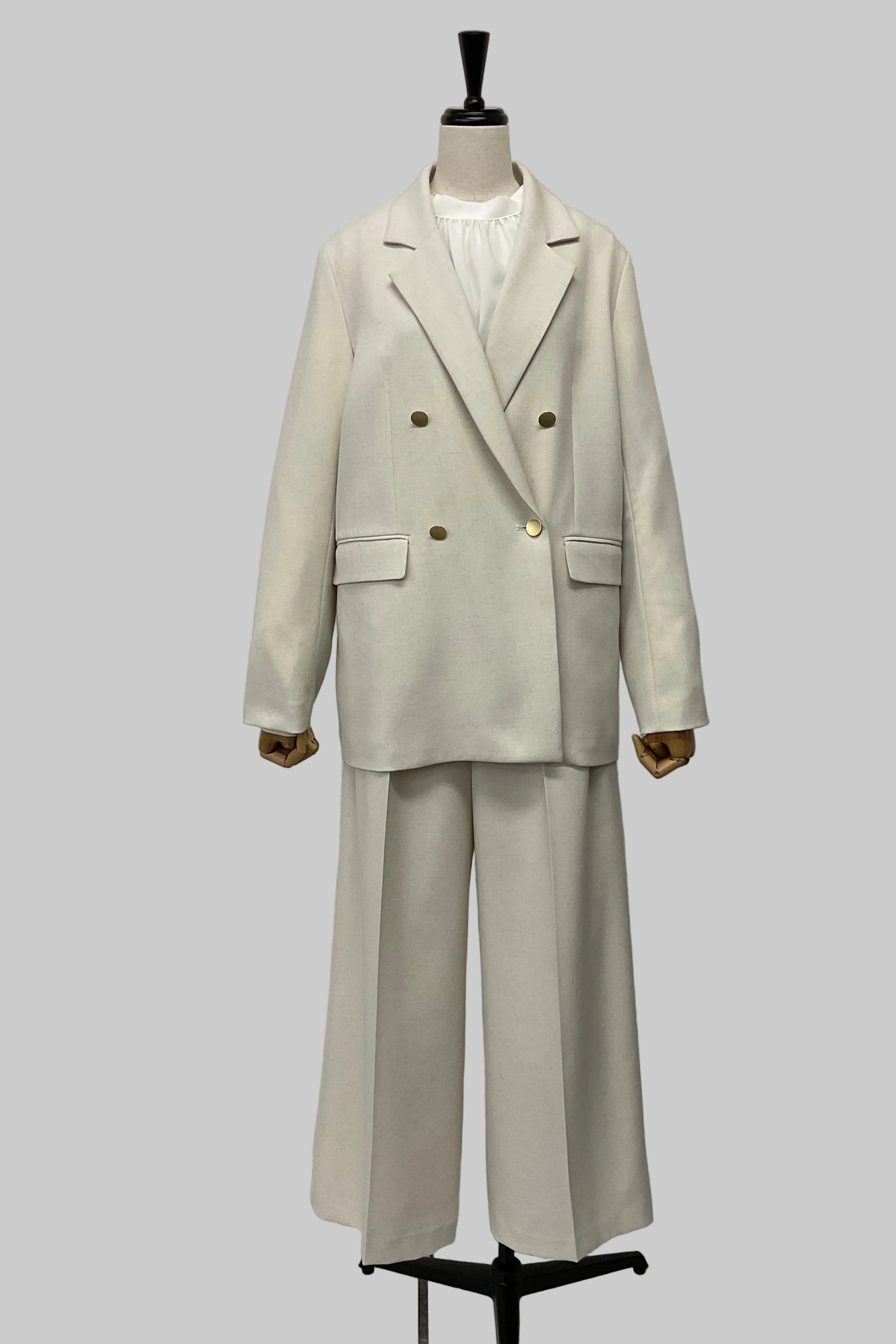 ・リネン混素材ならではの軽やかさとナチュラルな風合い・ダブル仕様で程よくマニッシュな雰囲気を演出