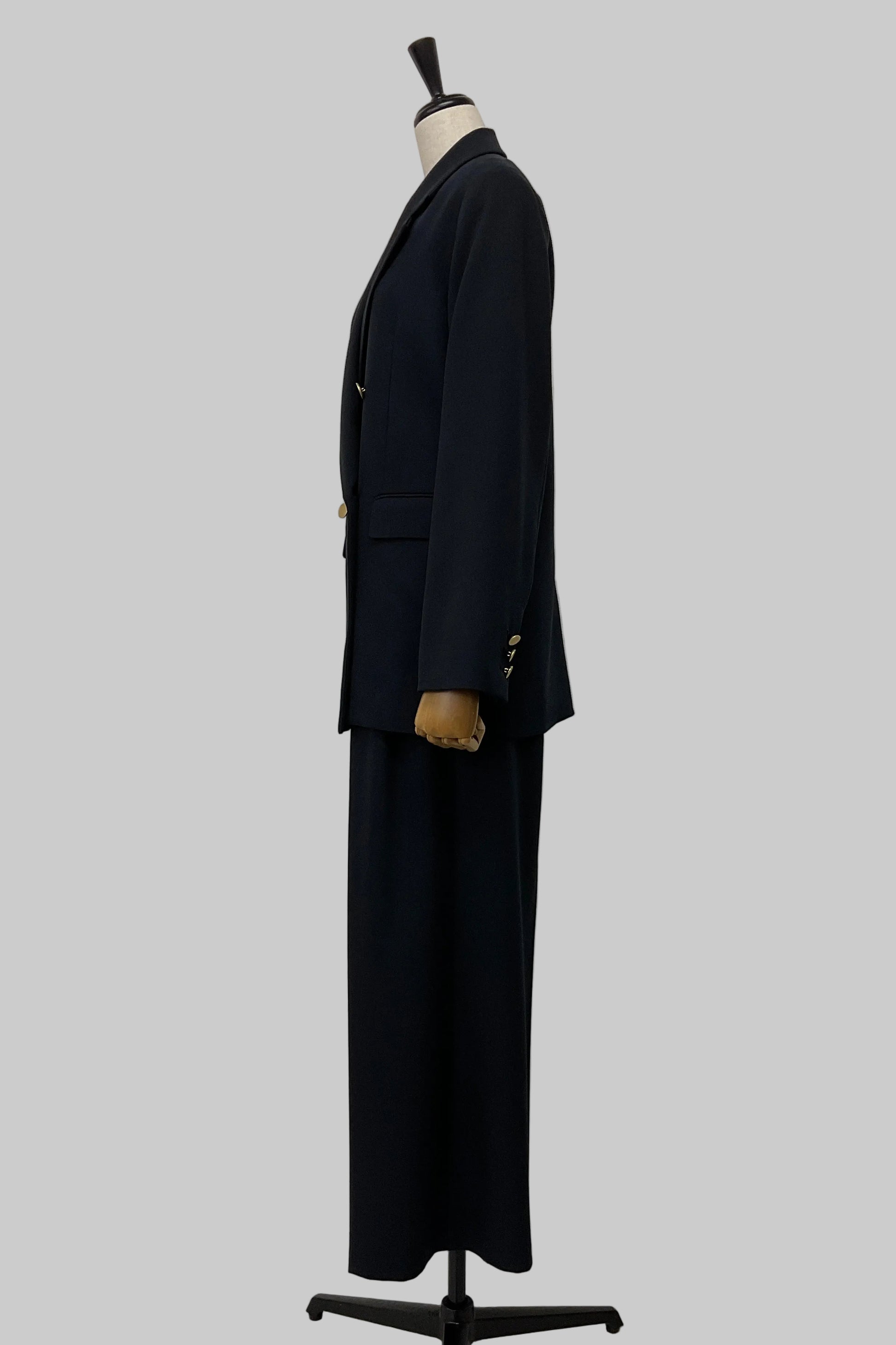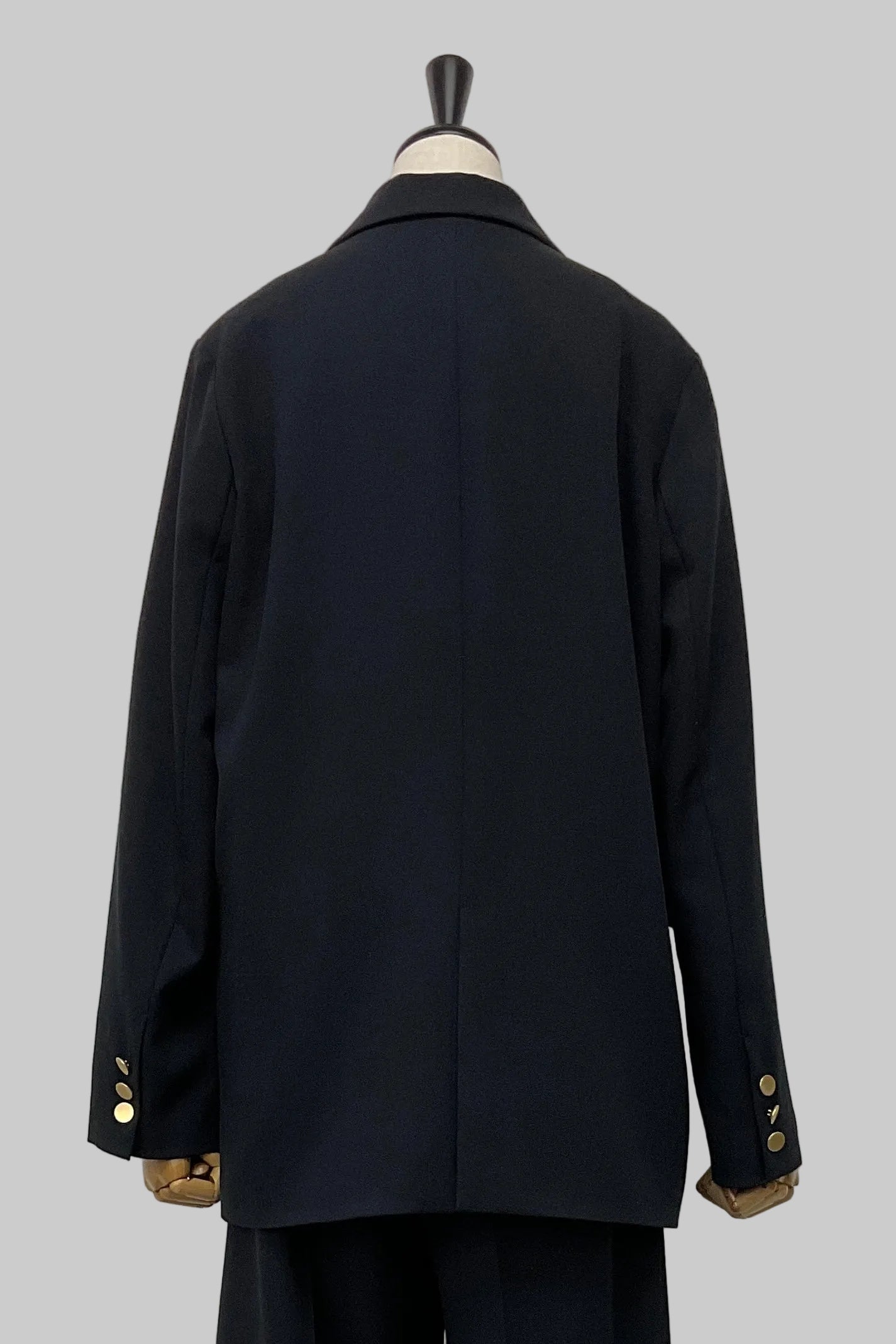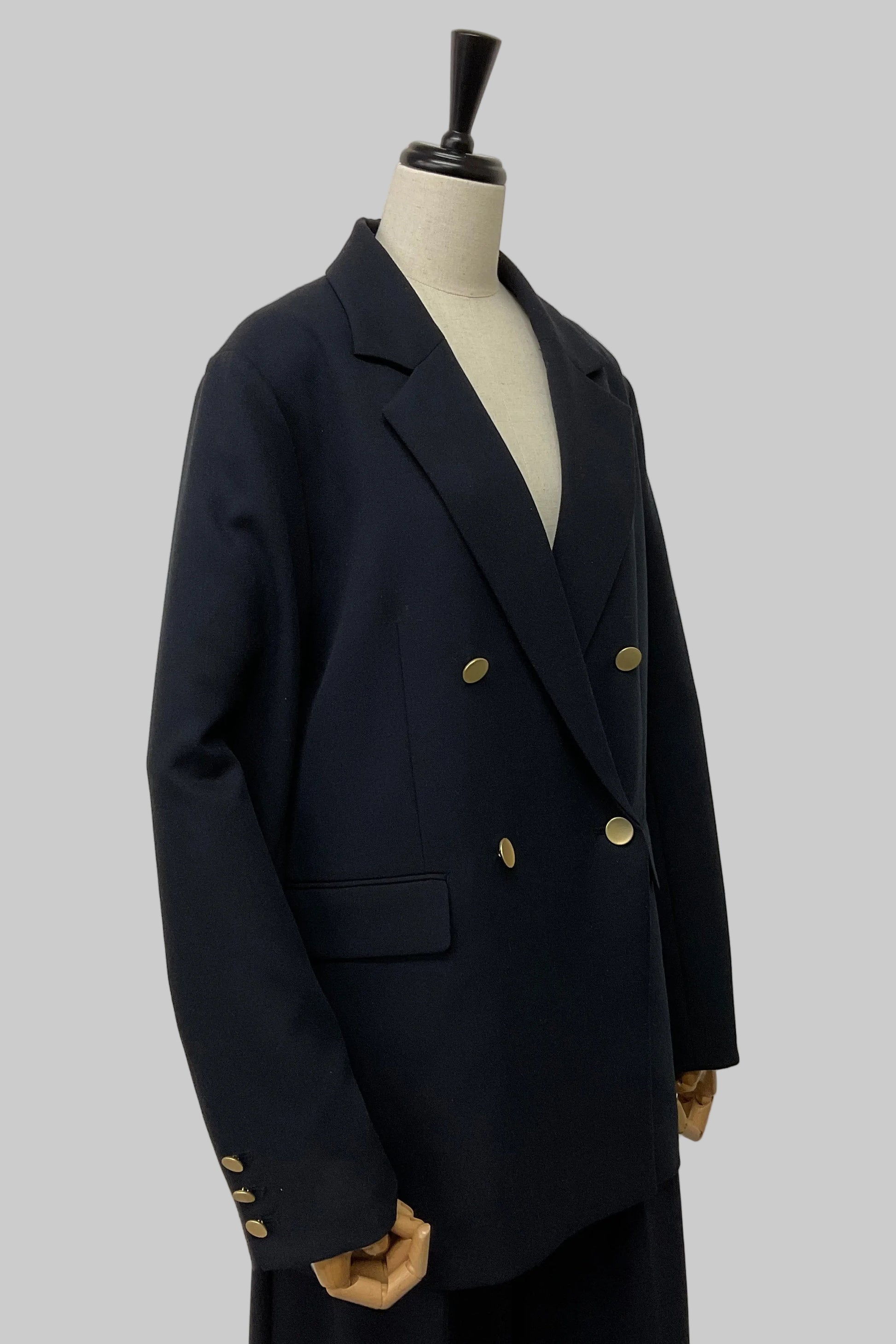 ダブルボタンのデザインと上品なゴールドボタンが、