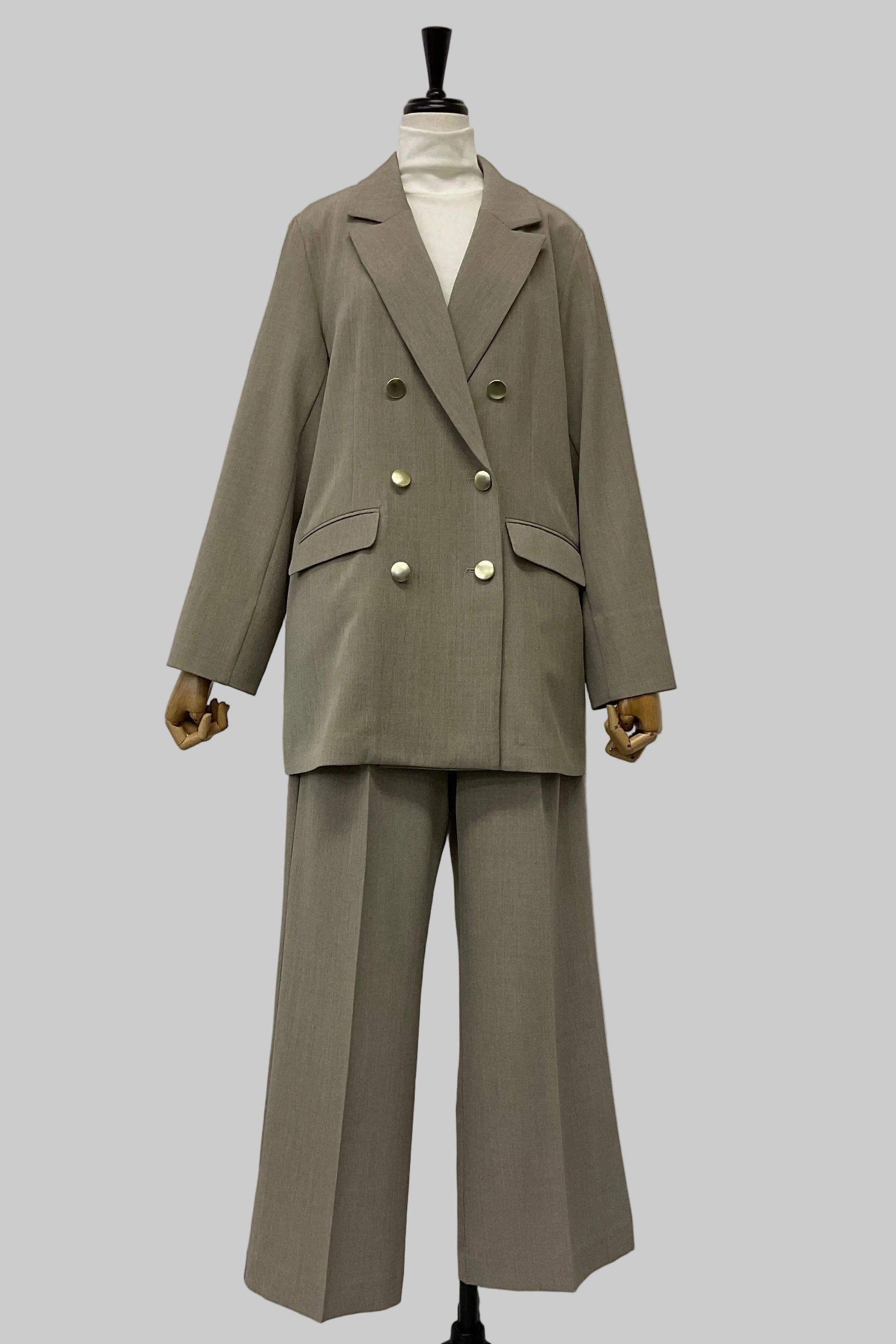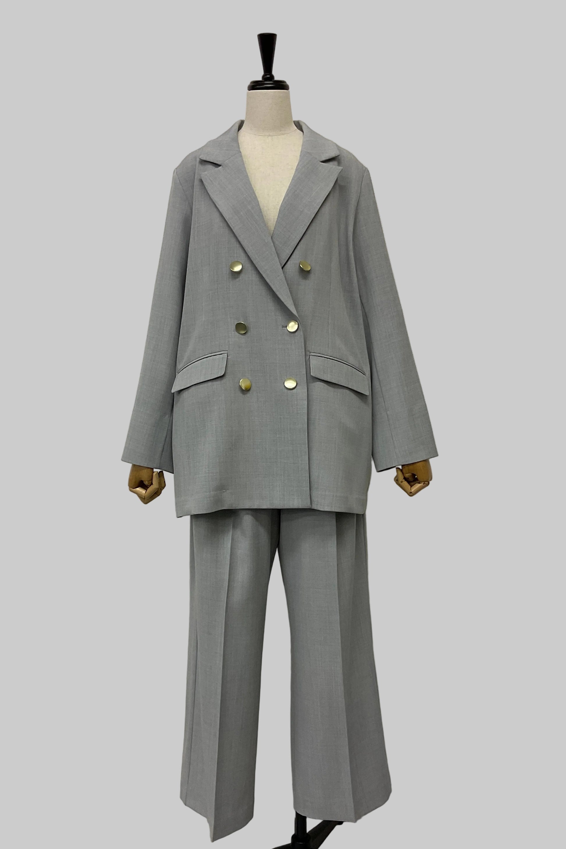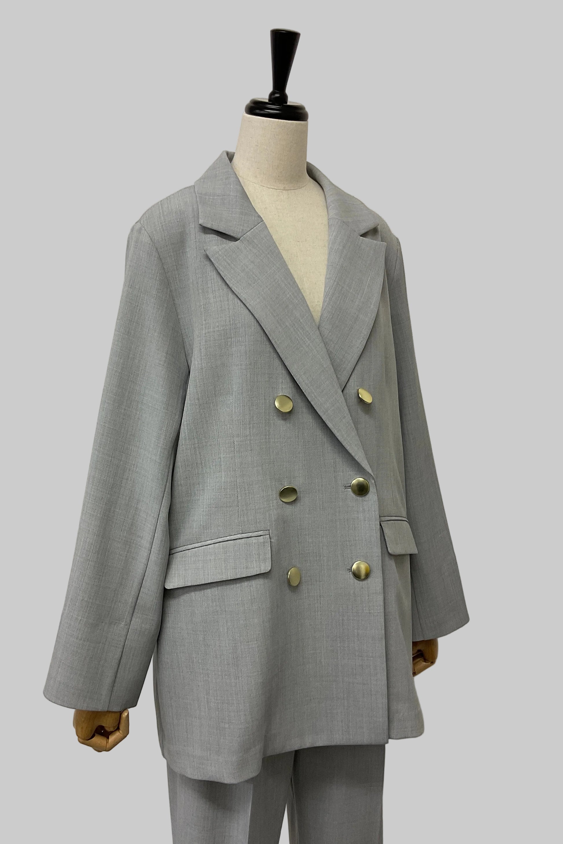 かっちりとしたテーラードカラーとダブルボタン仕様で、