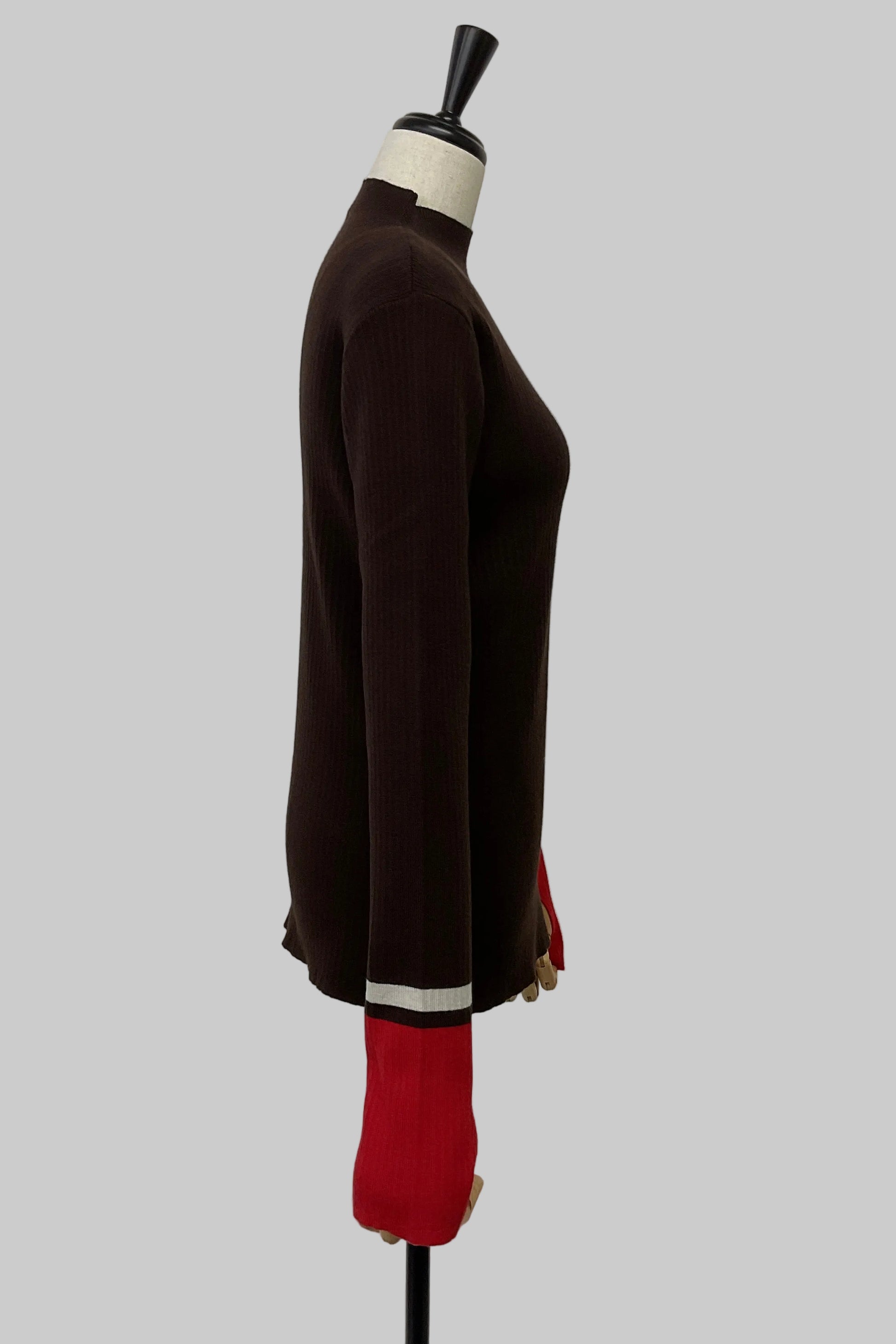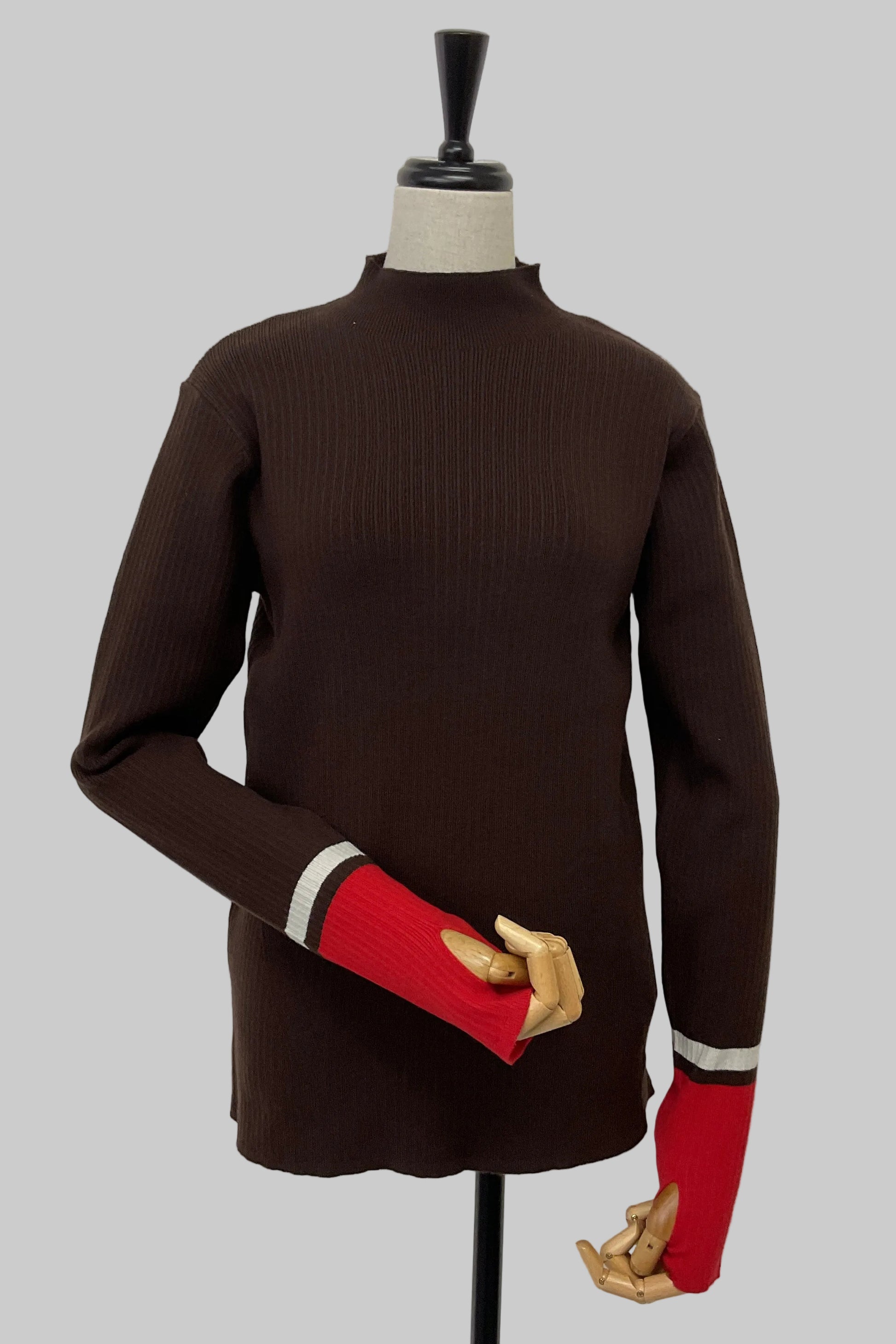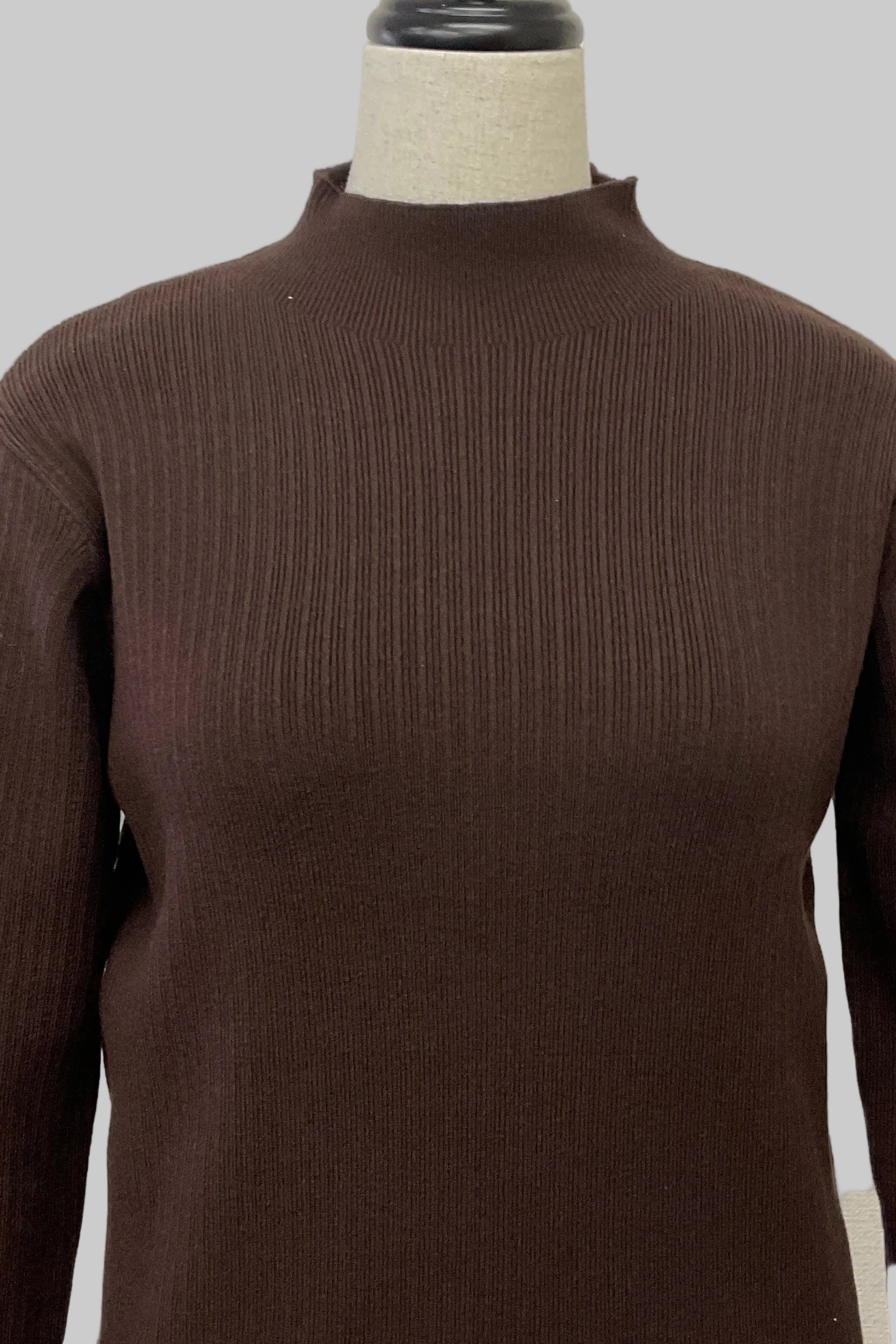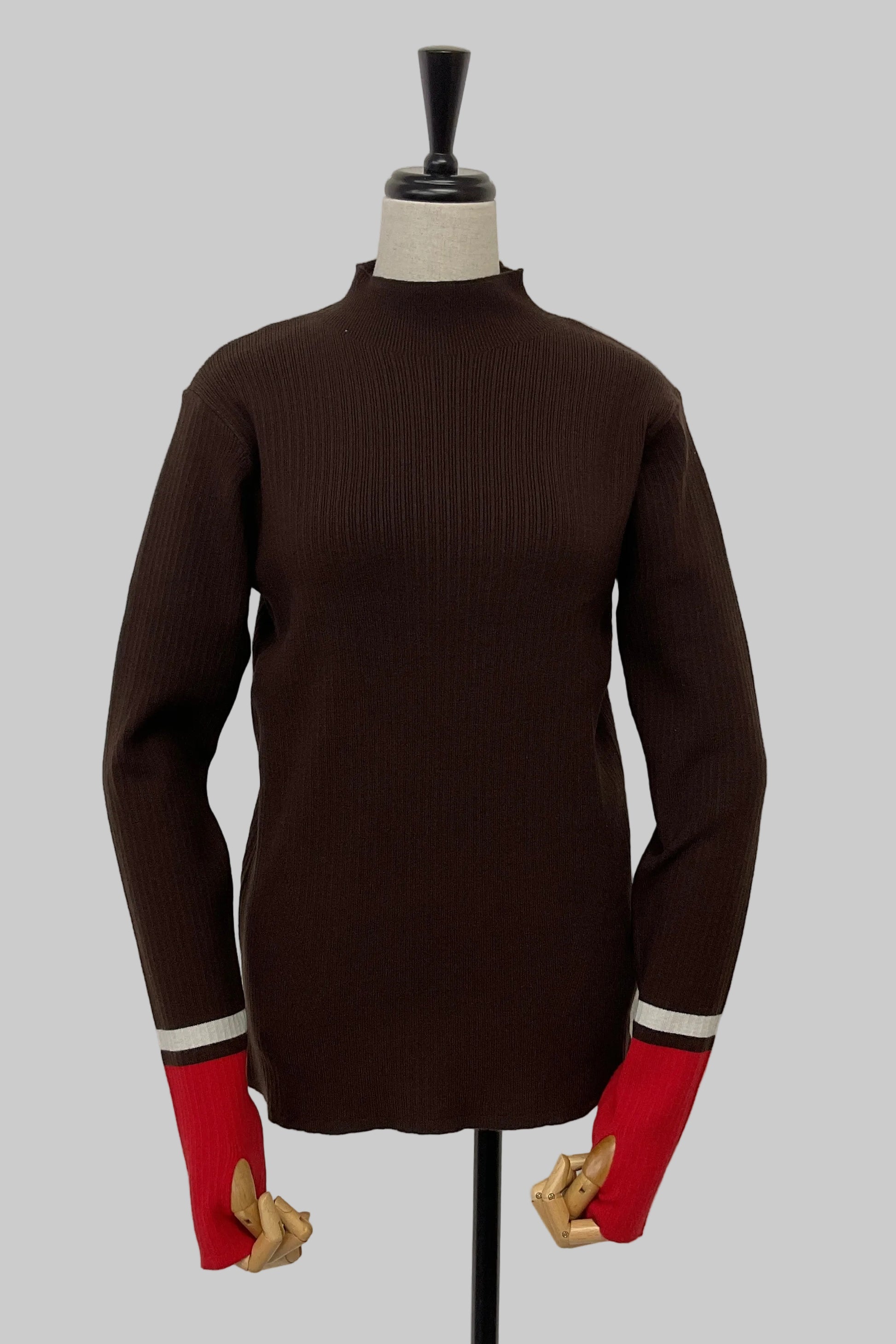 ヤワモチラインイリリブハイネックニット (ブラウン)
