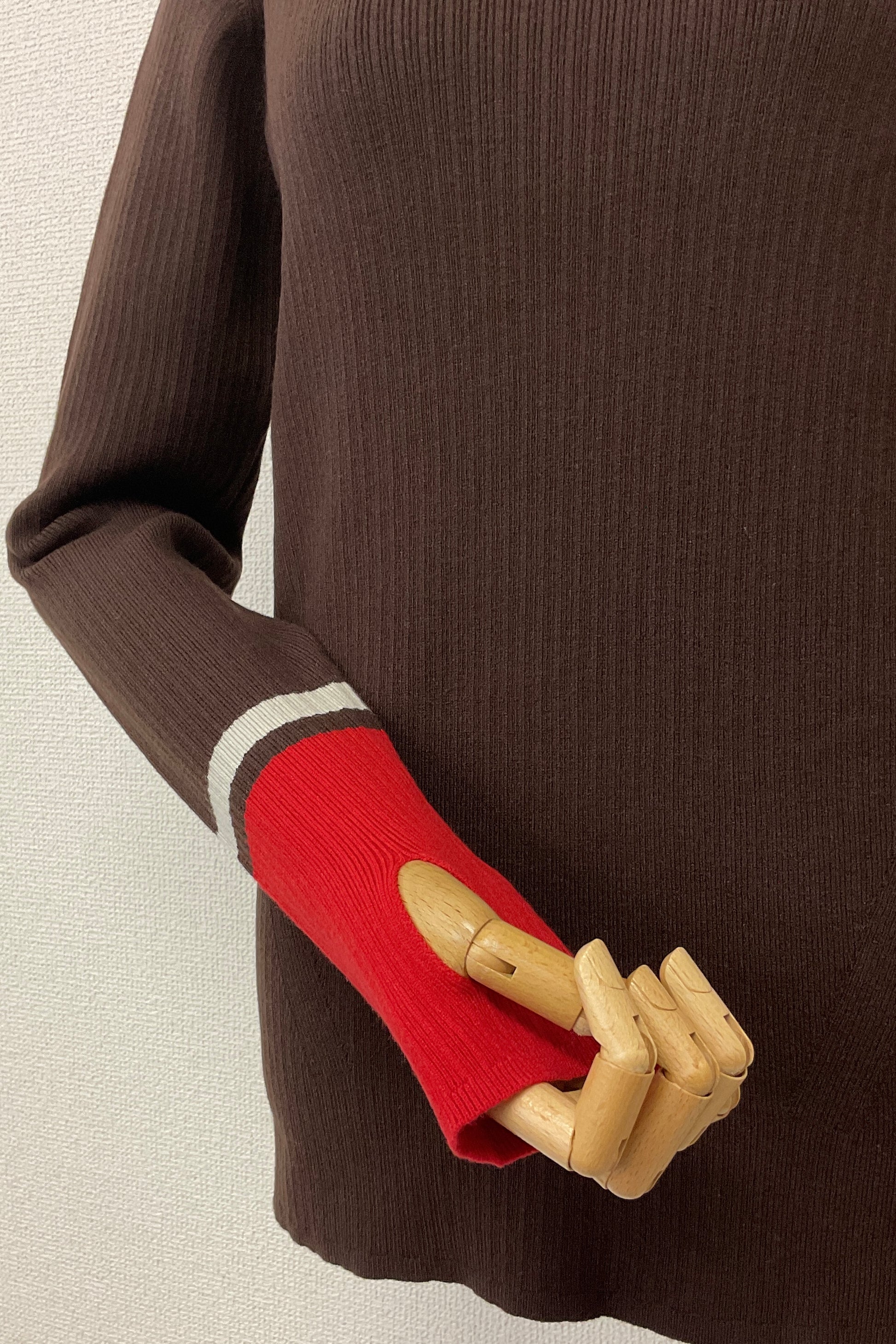 ・袖口の配色ラインが、シンプルなニットにさりげないアクセント