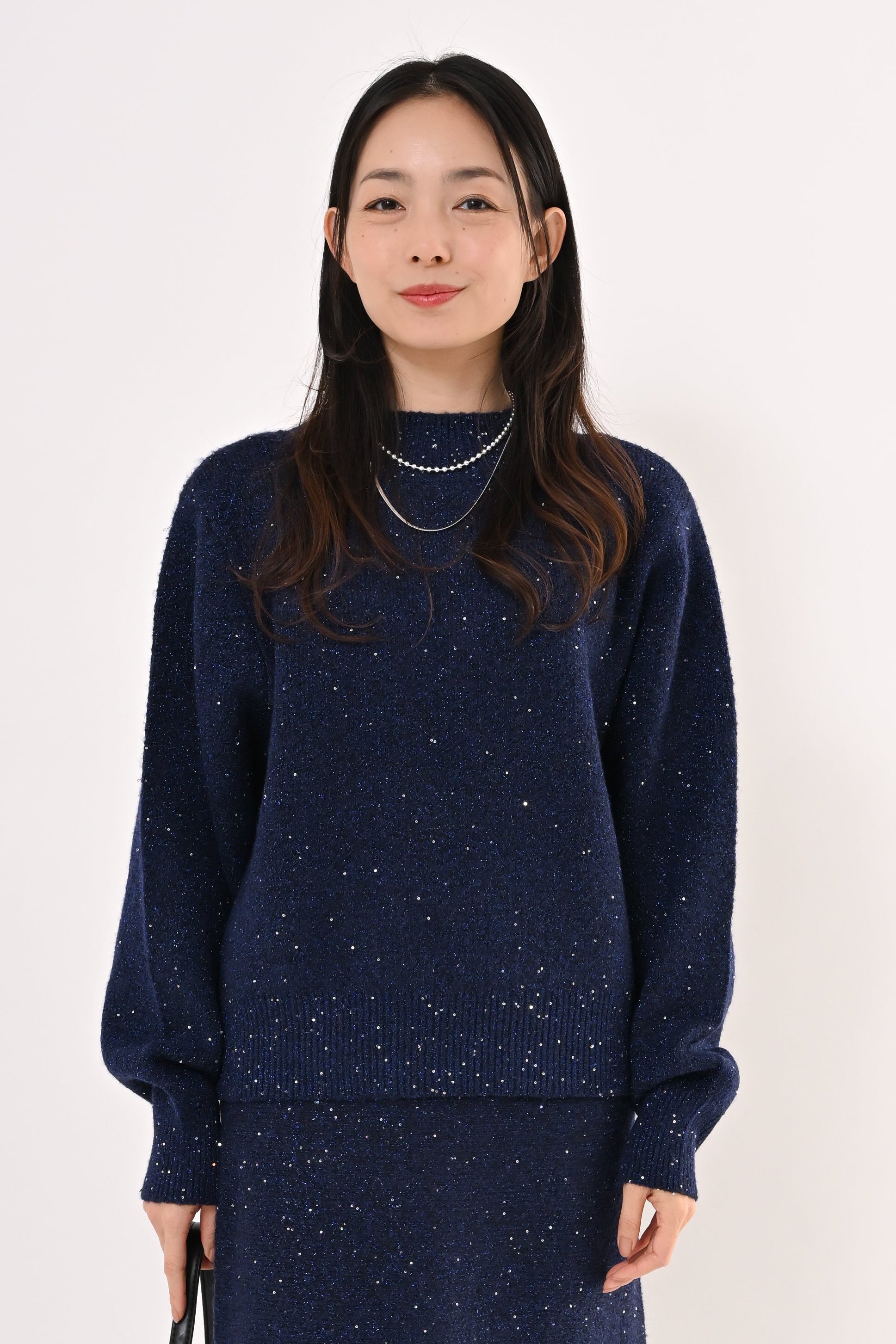 着るだけで冬の主役に。上品に輝くラメニットセットアップ