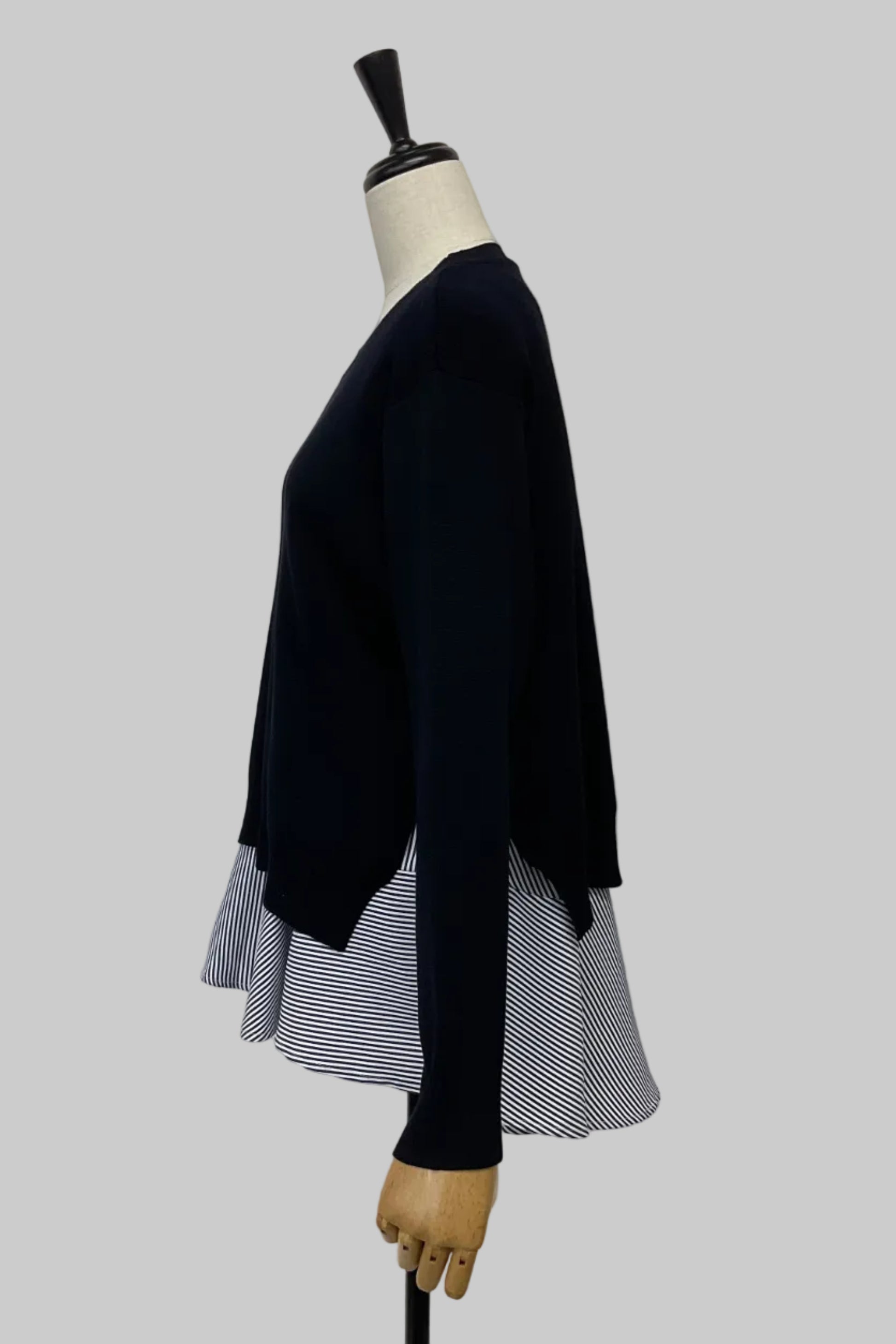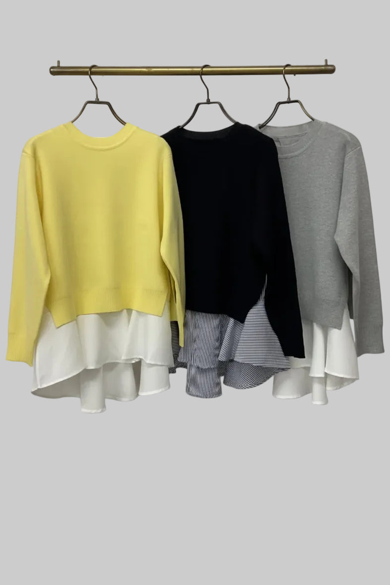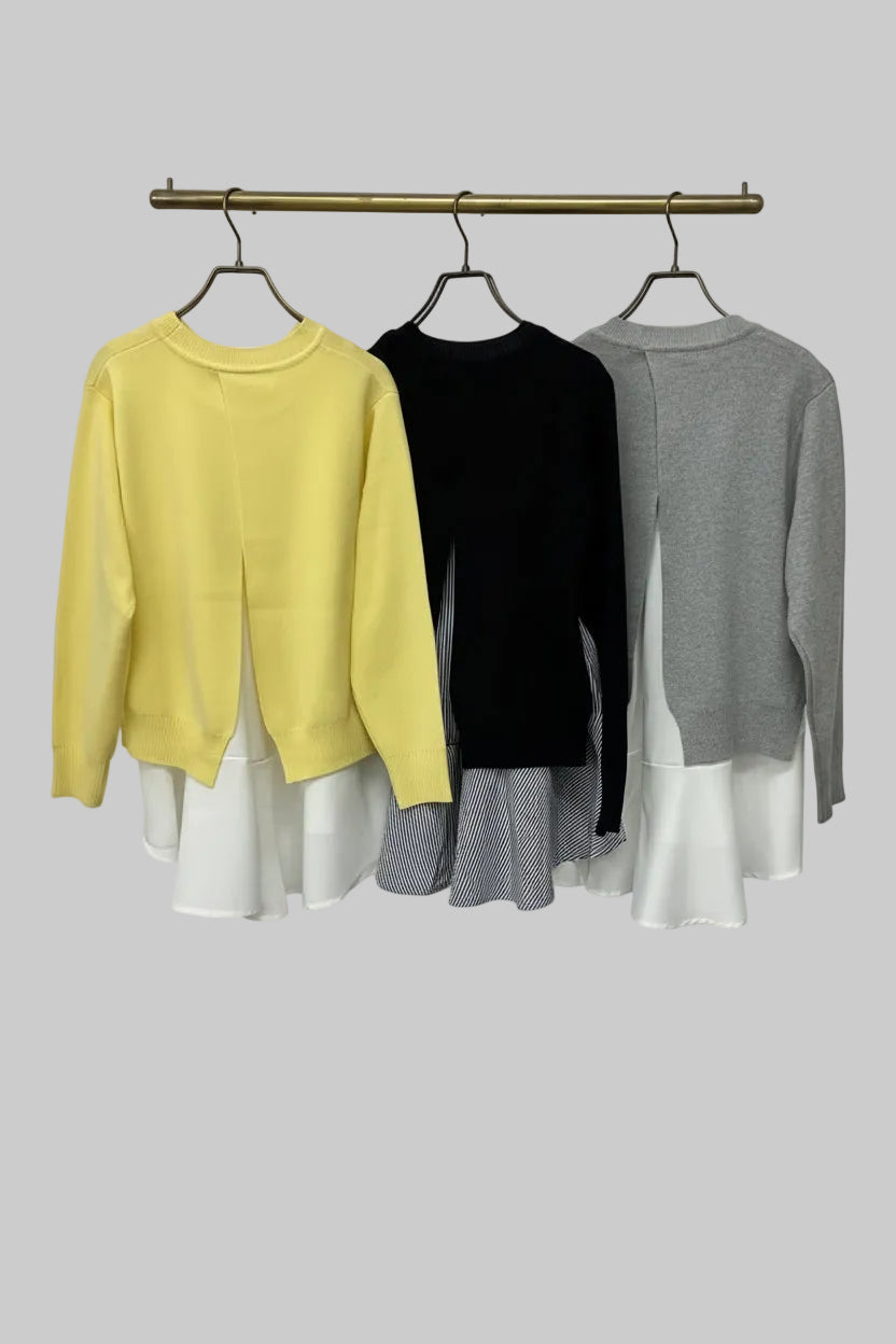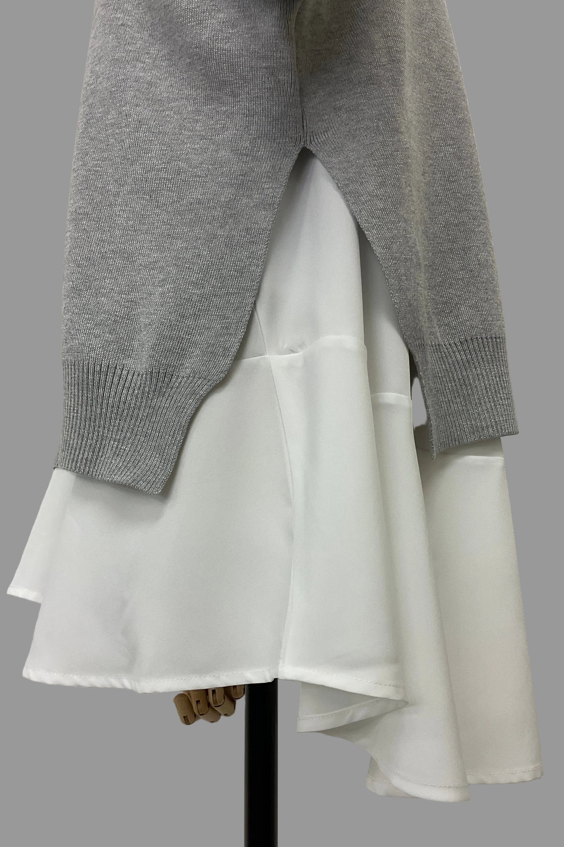 ニットプルオーバーと、布帛のノースリーブインナーをセットにしたレイヤードアイテム。