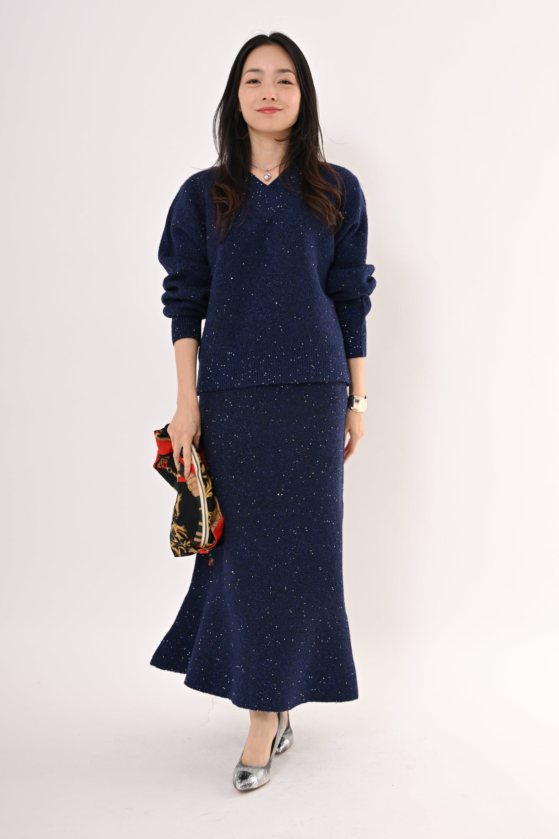 着るだけで冬の主役に。上品に輝くラメニットセットアップ