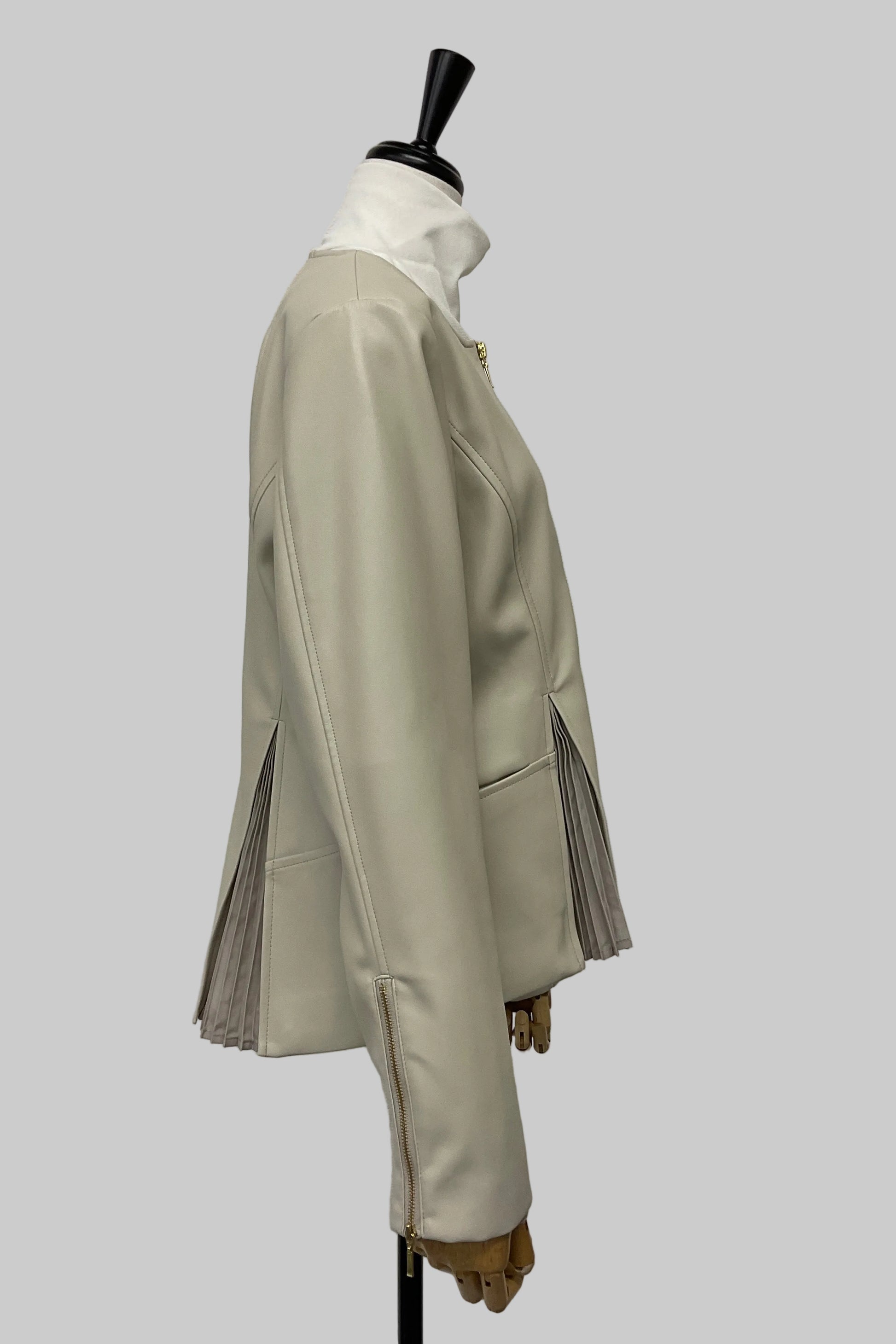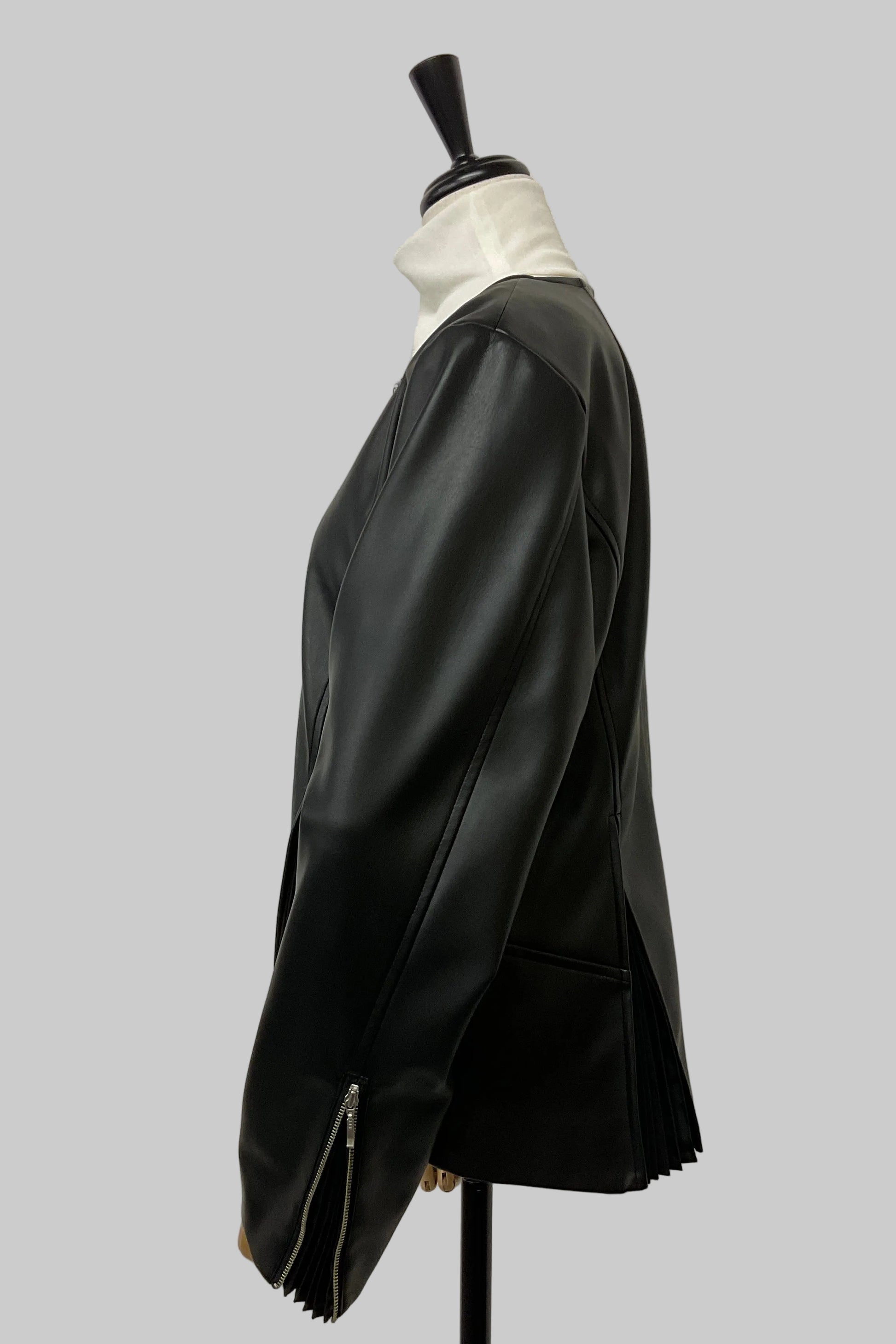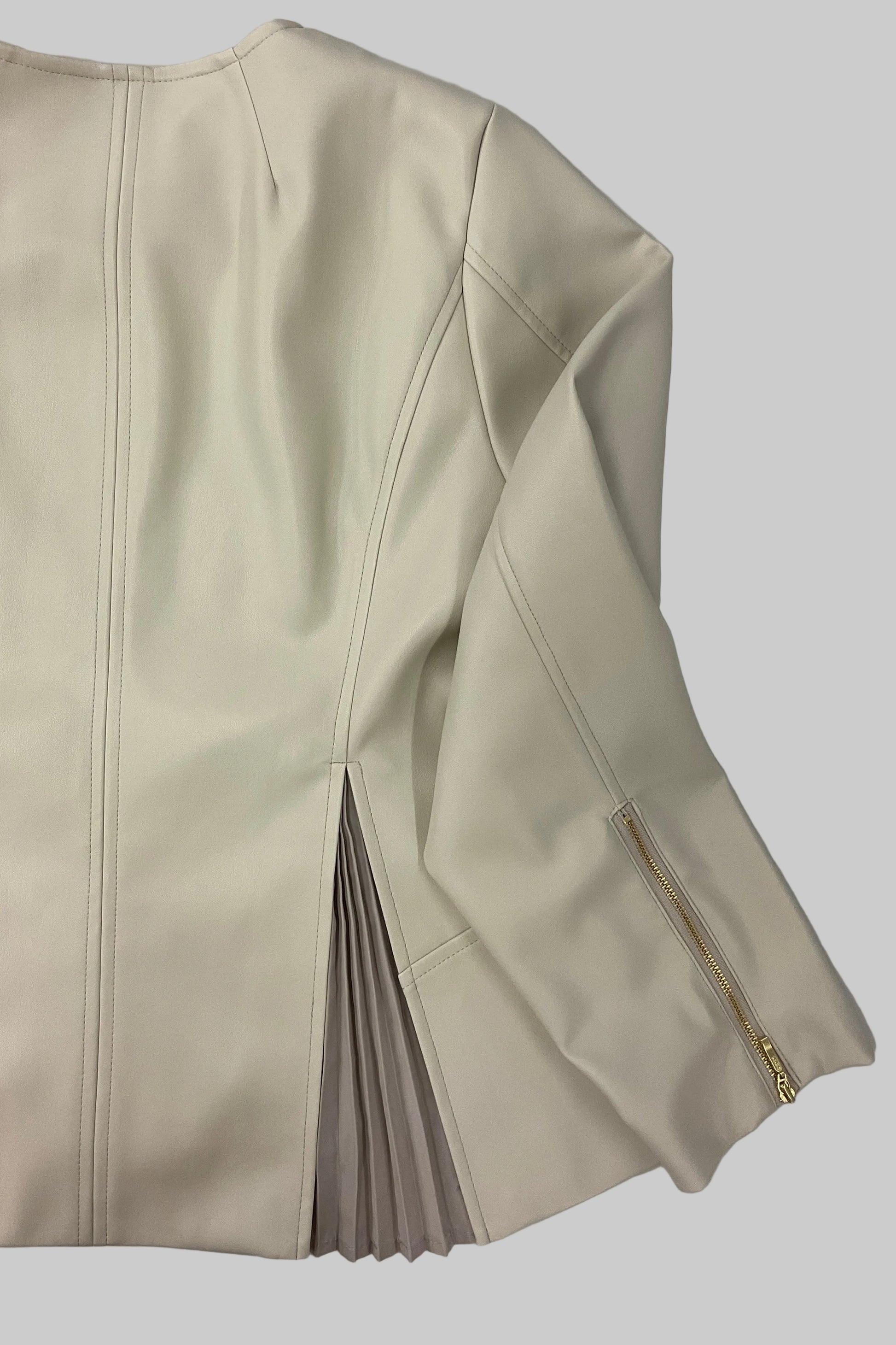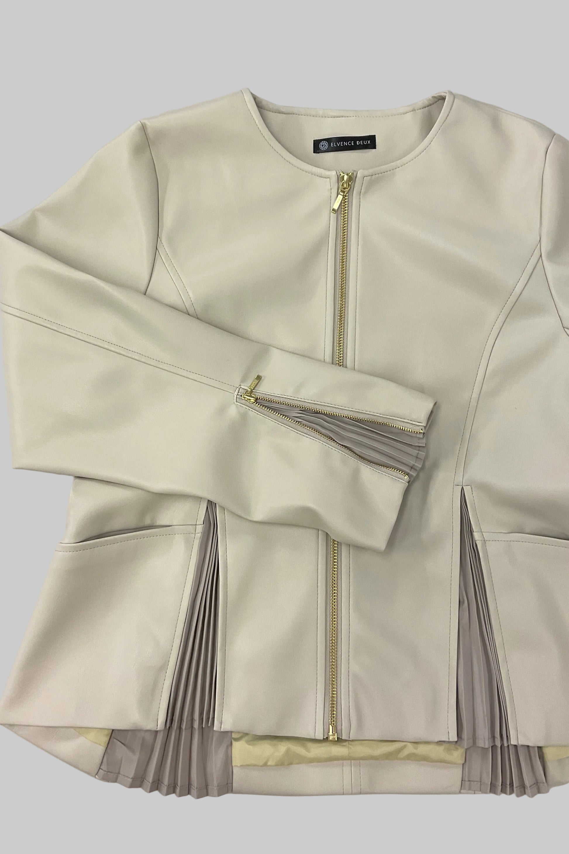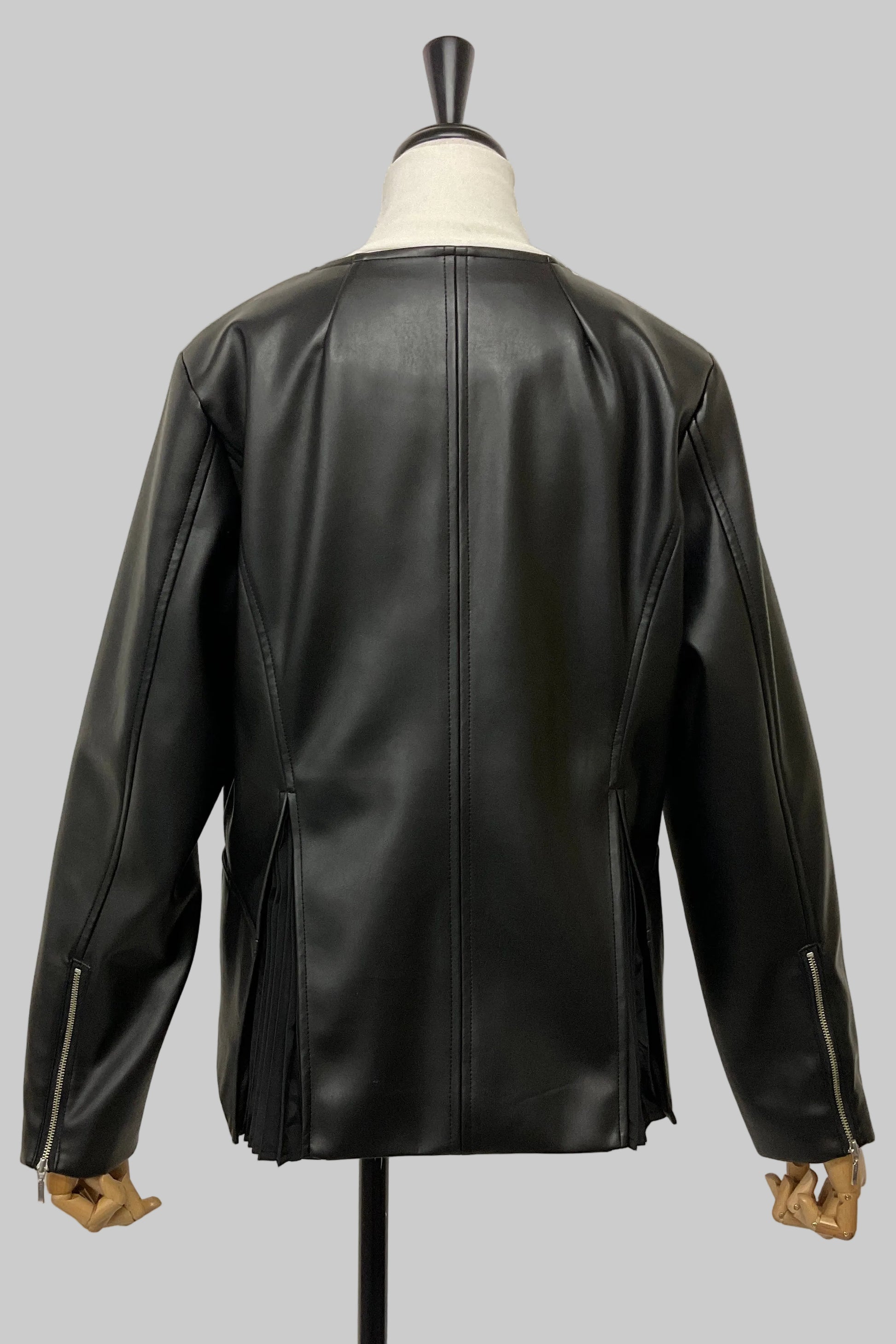 ハンサムなレザーに、揺れるプリーツの魔法を