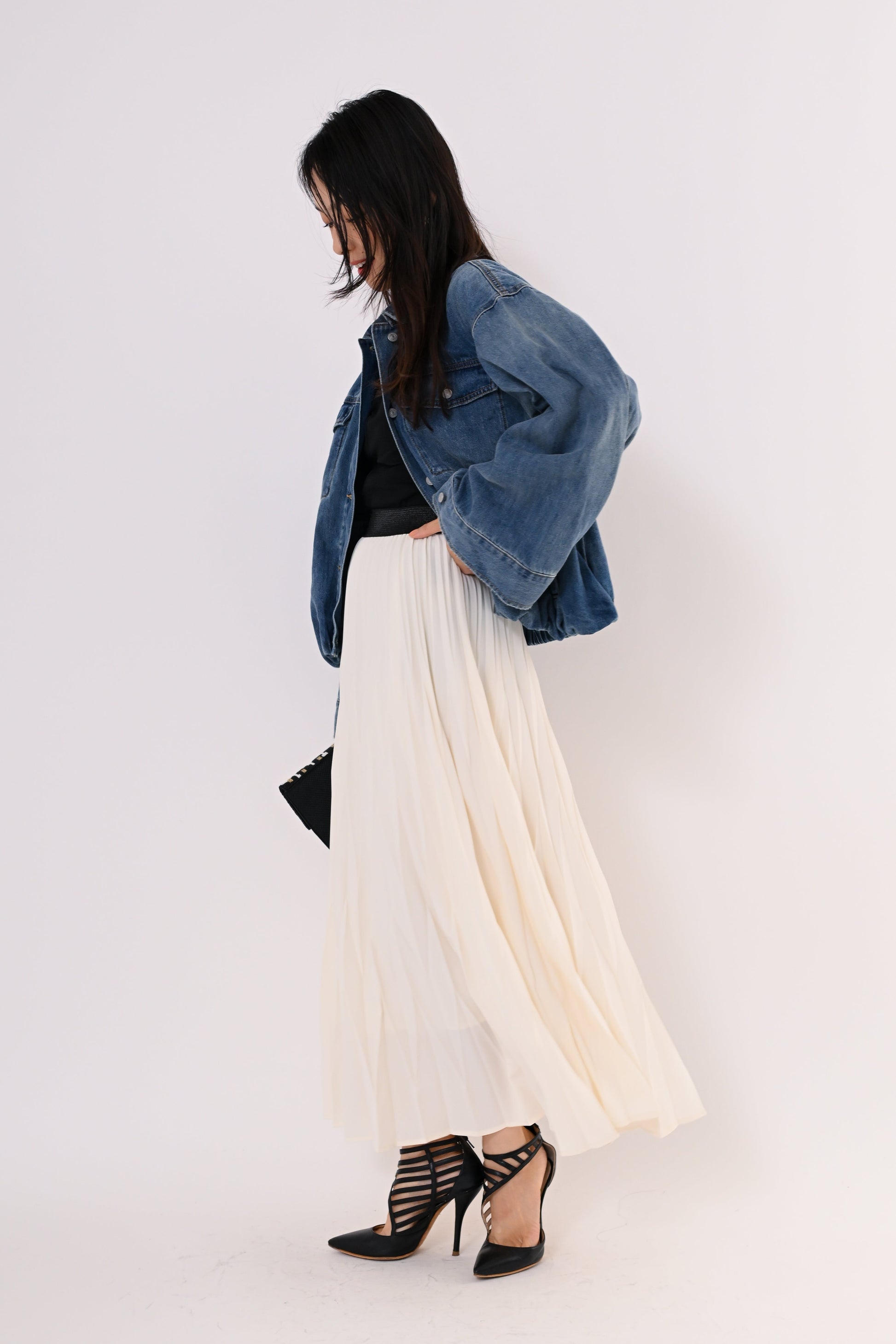 動くたびに陰影がうまれ、コーディネートに奥行きをプラスしてくれます。