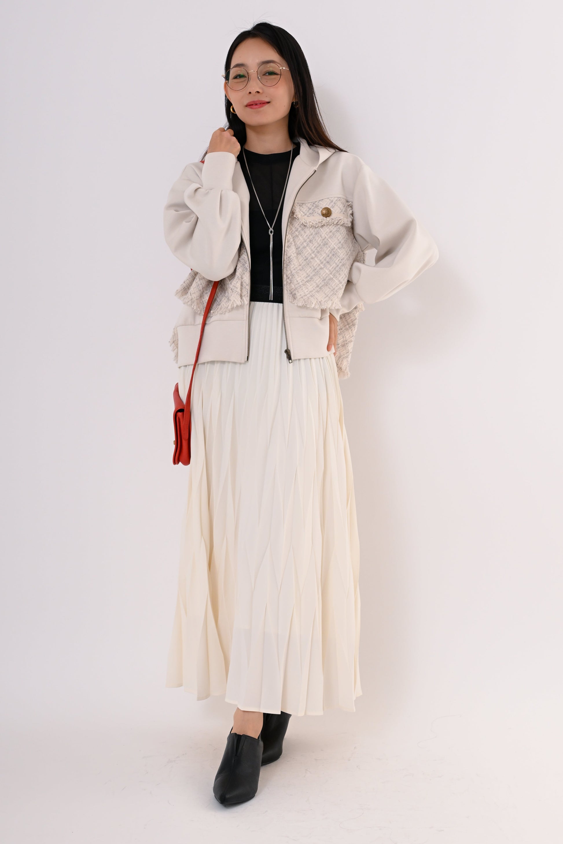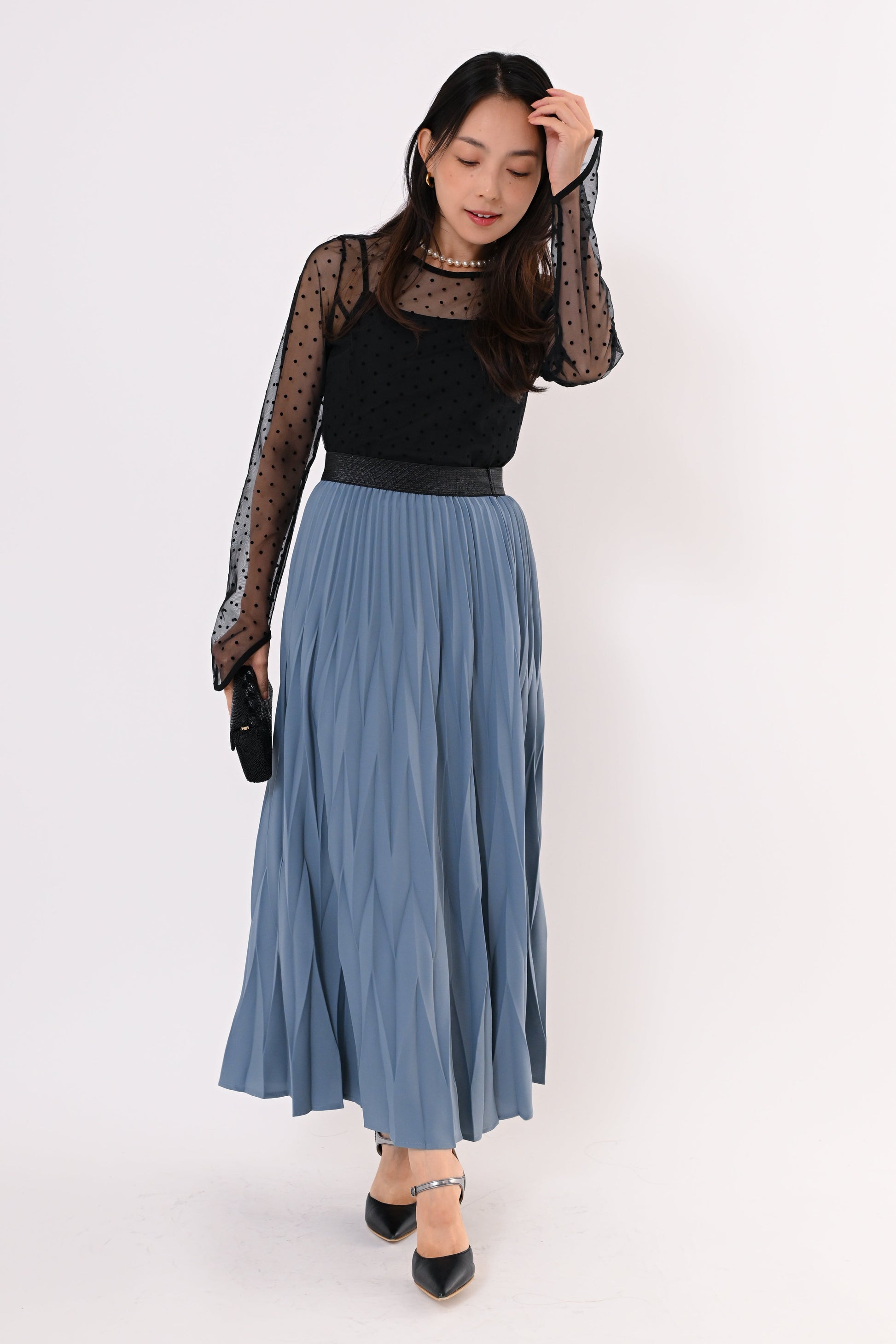 折り紙のように繊細で立体感のあるプリーツが印象的な一枚。