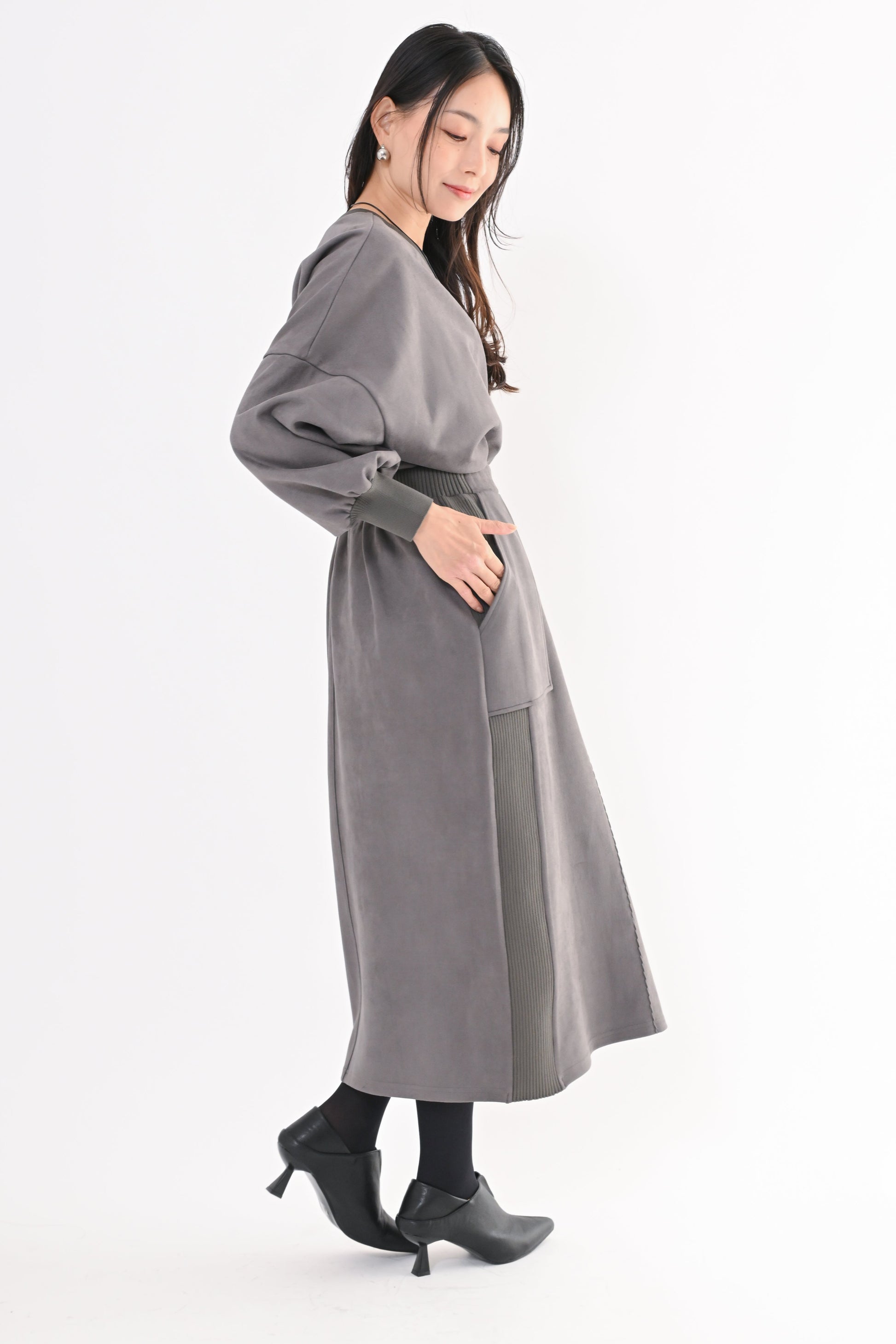 ・スエードタッチ素材×リブ切替で奥行きのあるデザイン