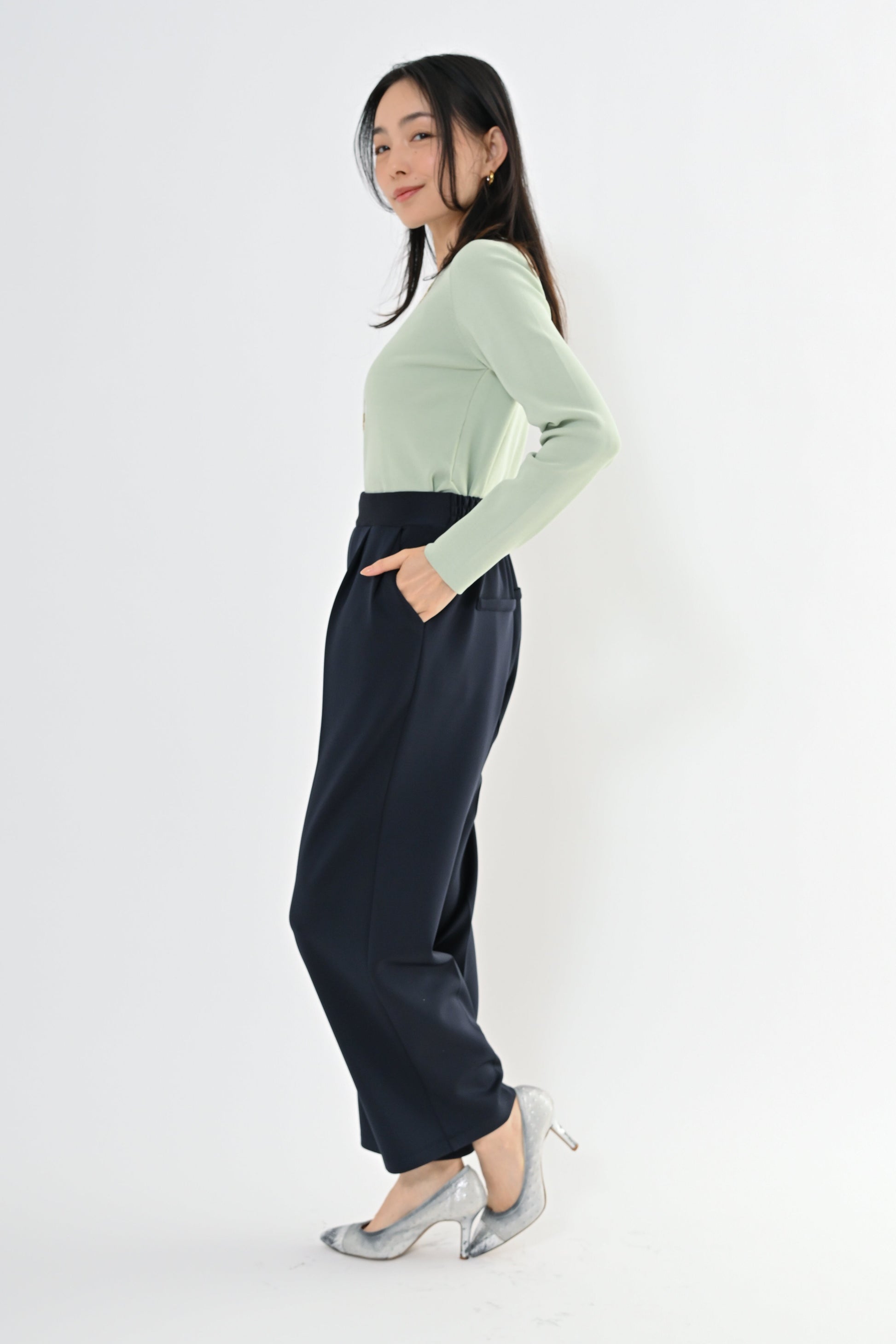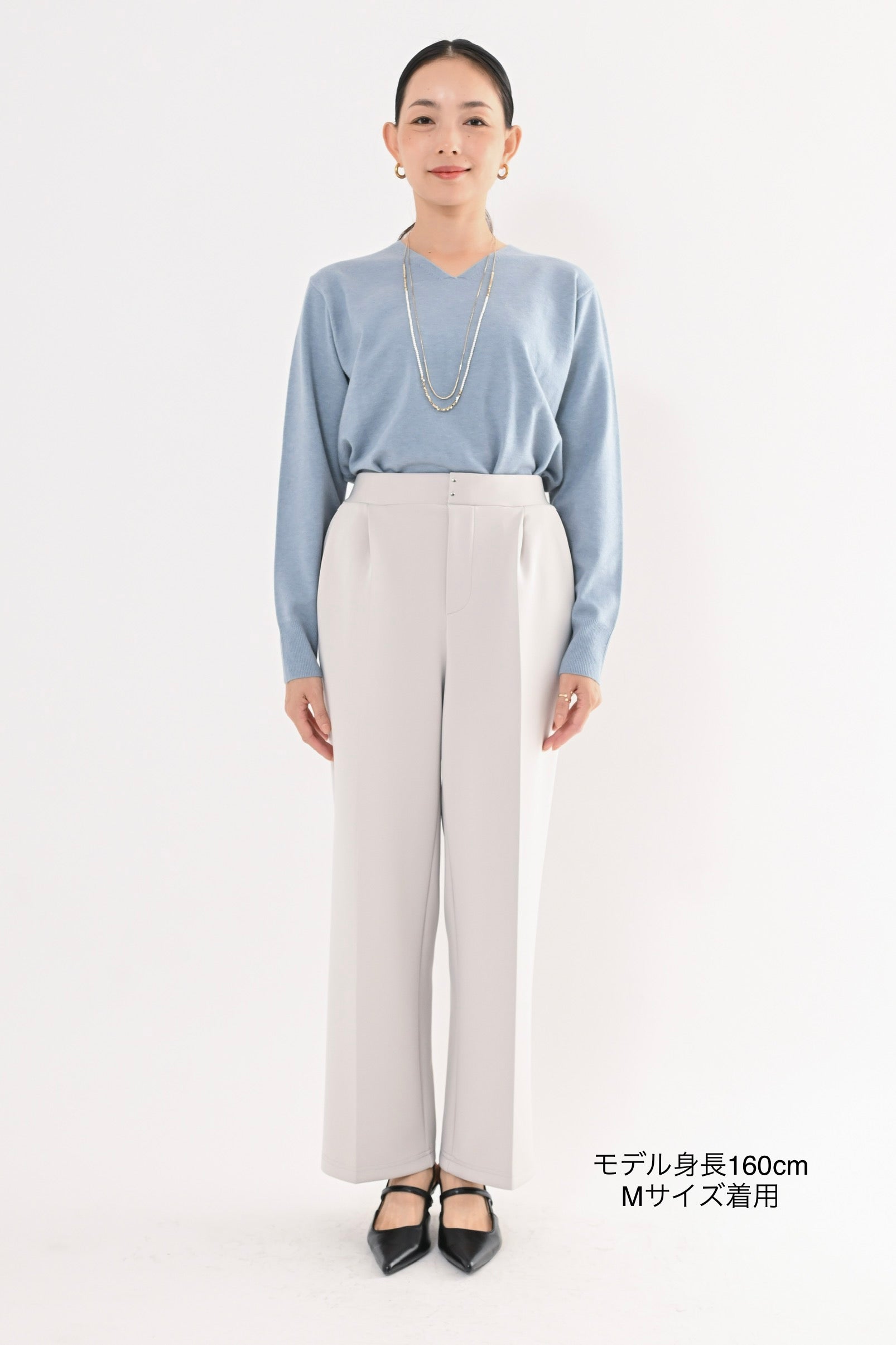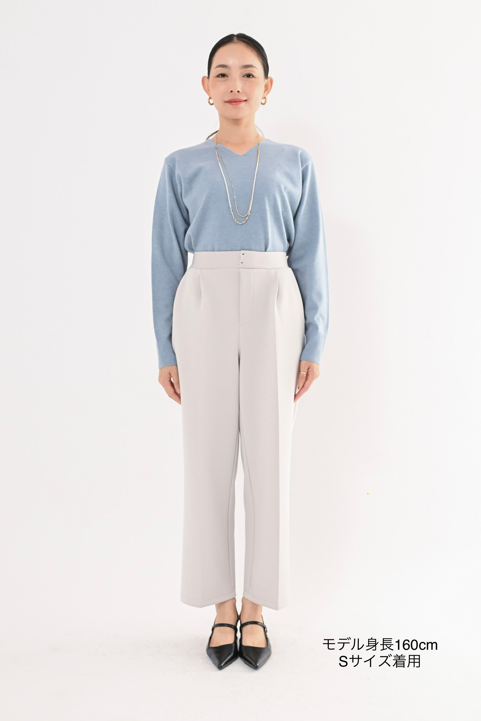 ・センタープレス入りで縦のラインを強調しスタイルアップ