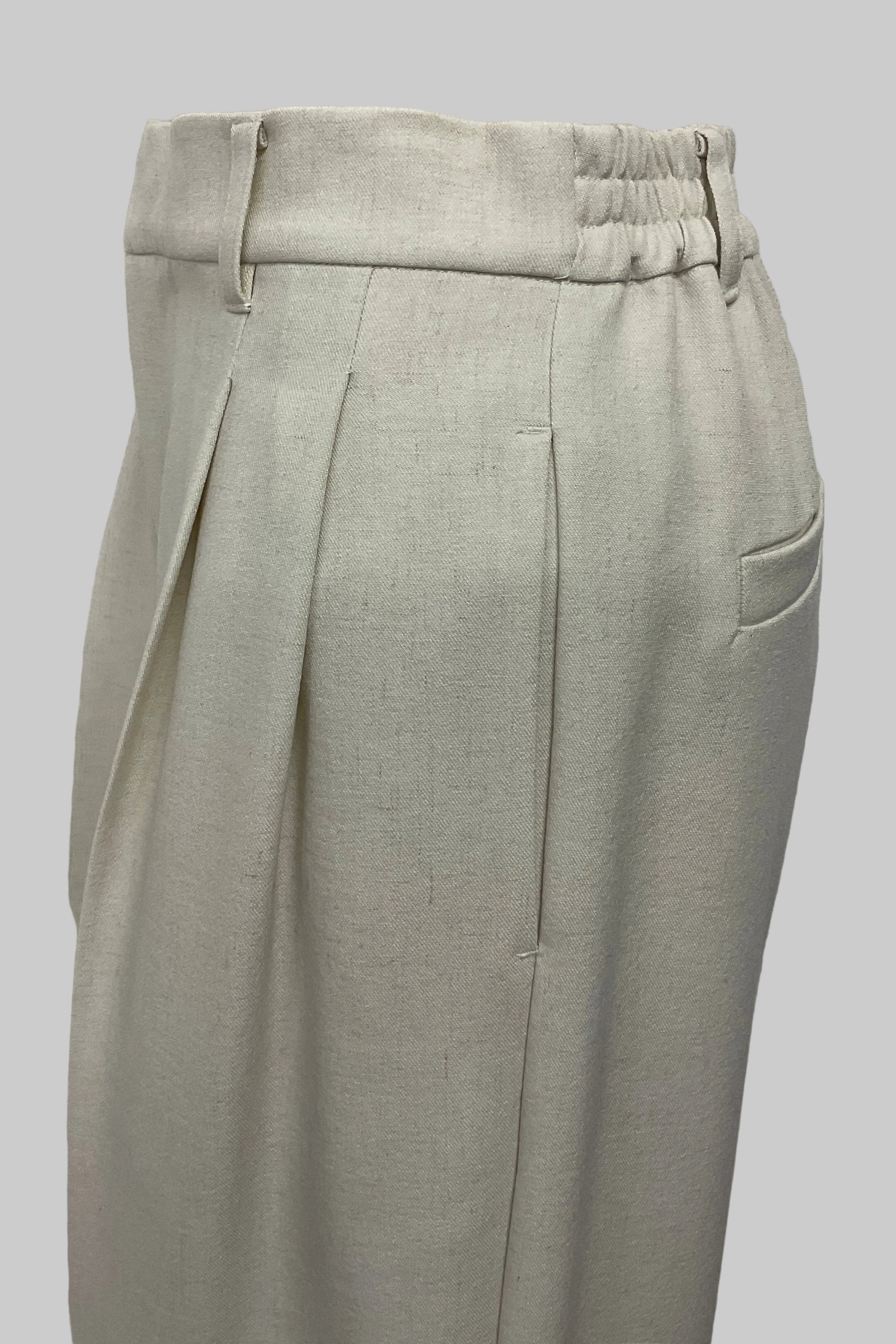 ・リネン混素材ならではの軽やかさと、上品に見える表面感・フロント2タック入りで、腰まわりにゆとりと立体感をプラス