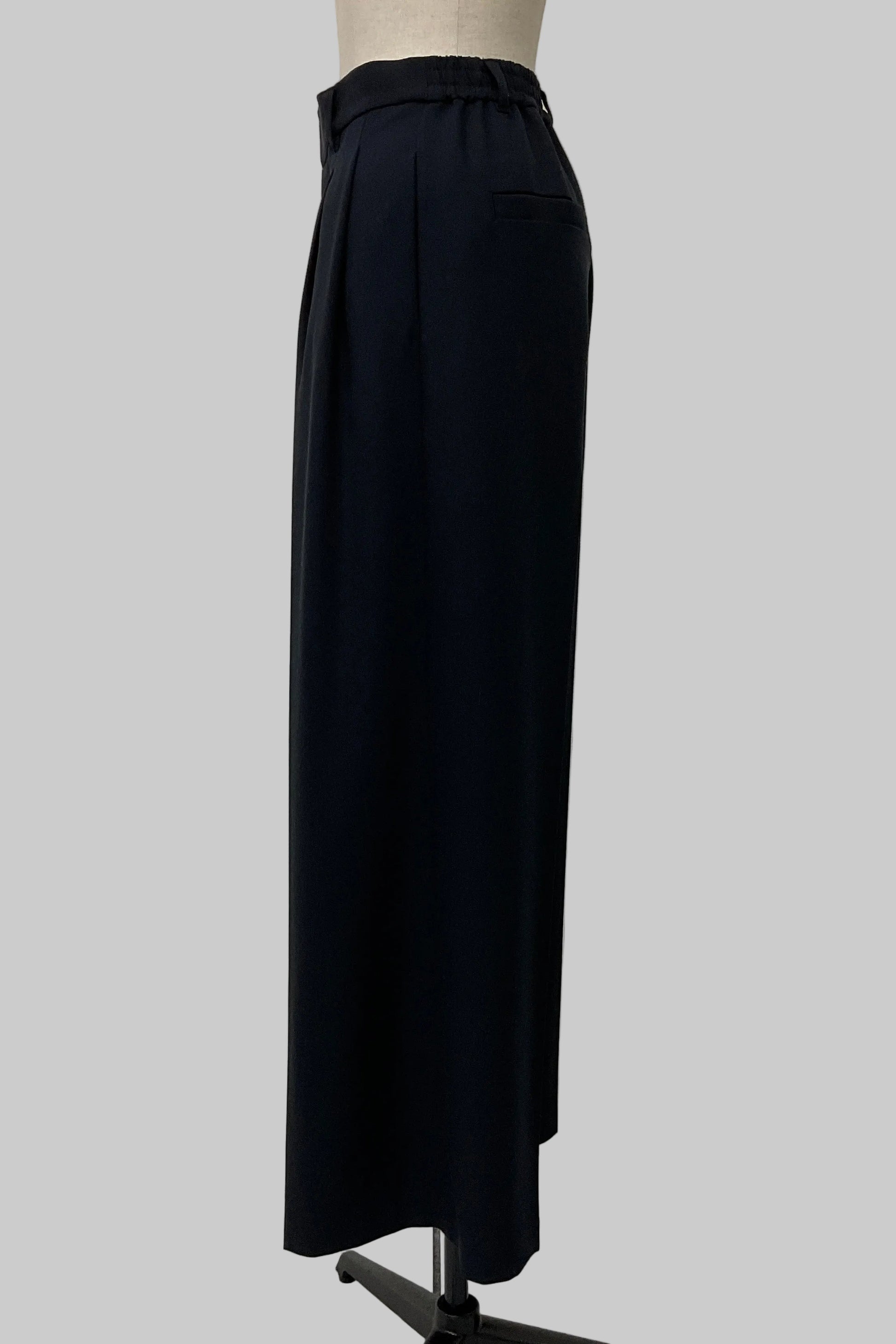 ワイドシルエットでありながら、縦のラインを強調し、