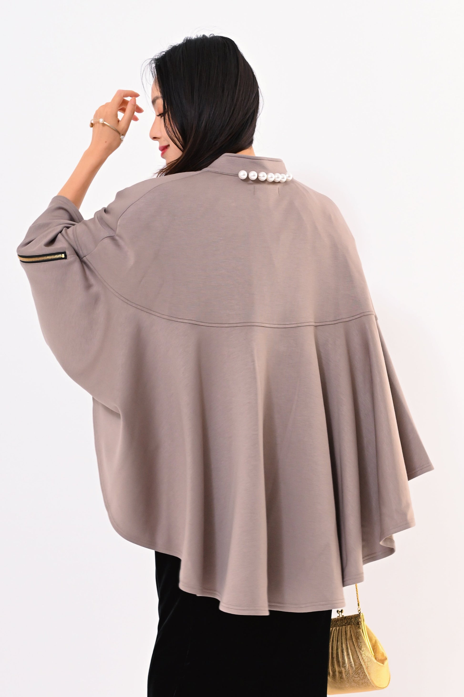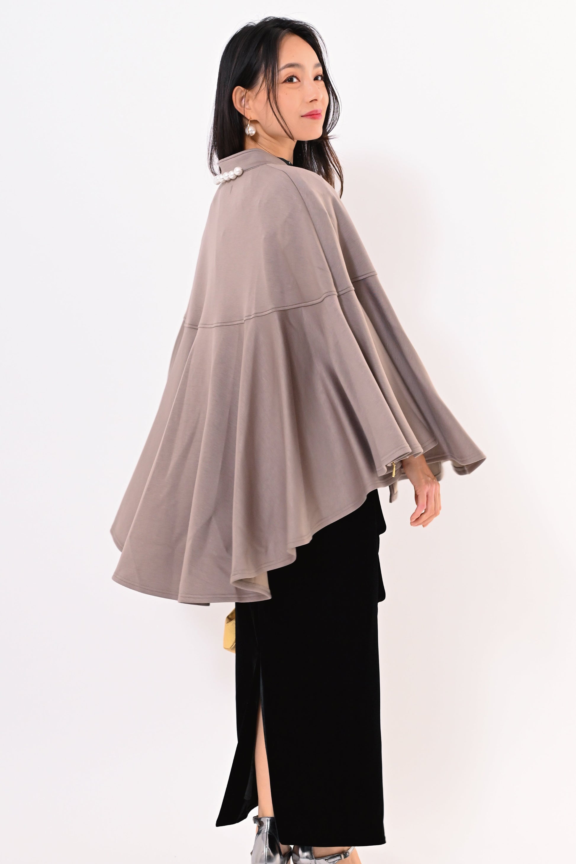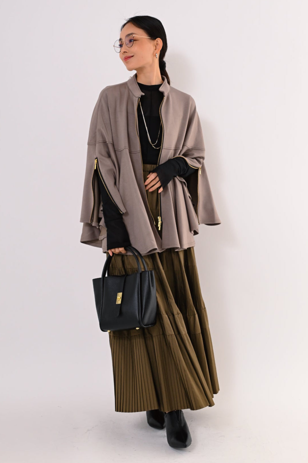 ふんわり広がるシルエットが魅力のポンチョ型ジャケット。
