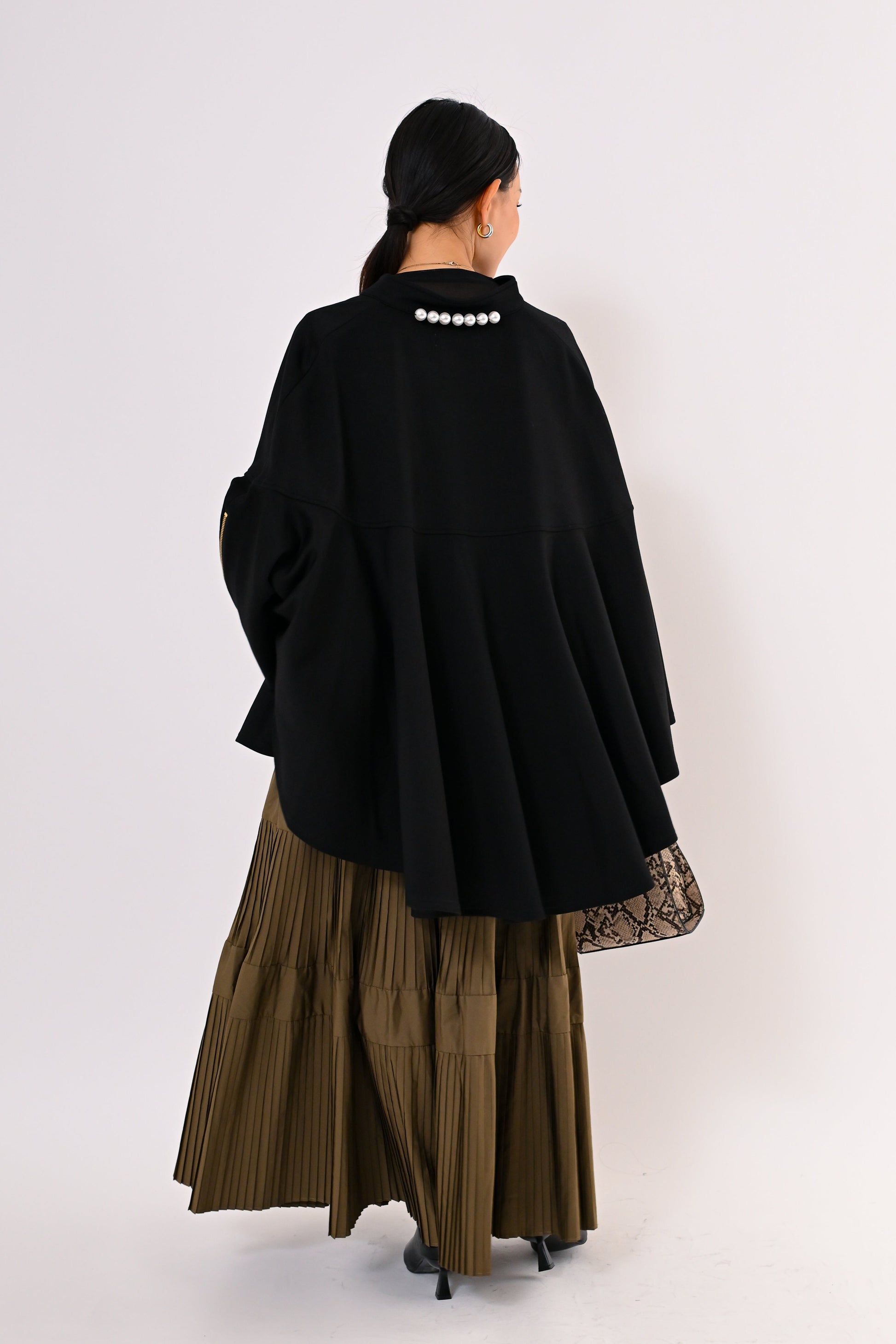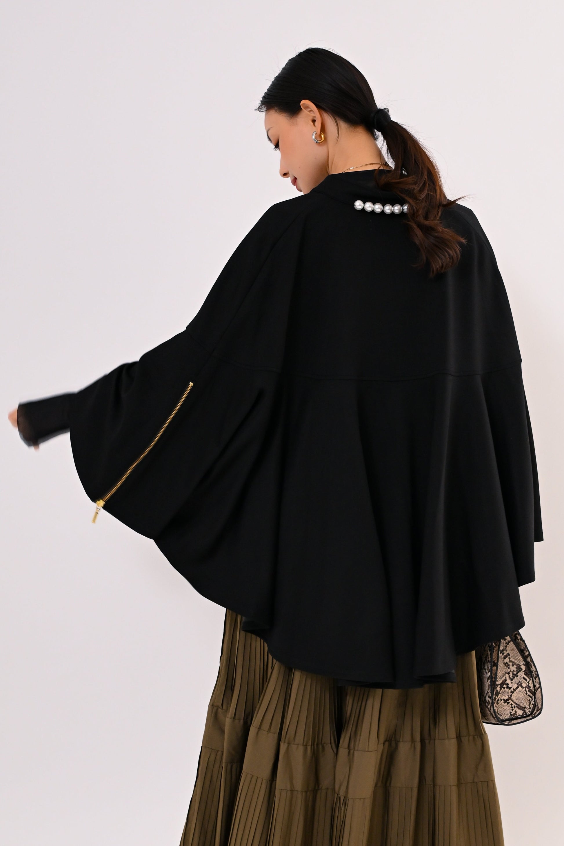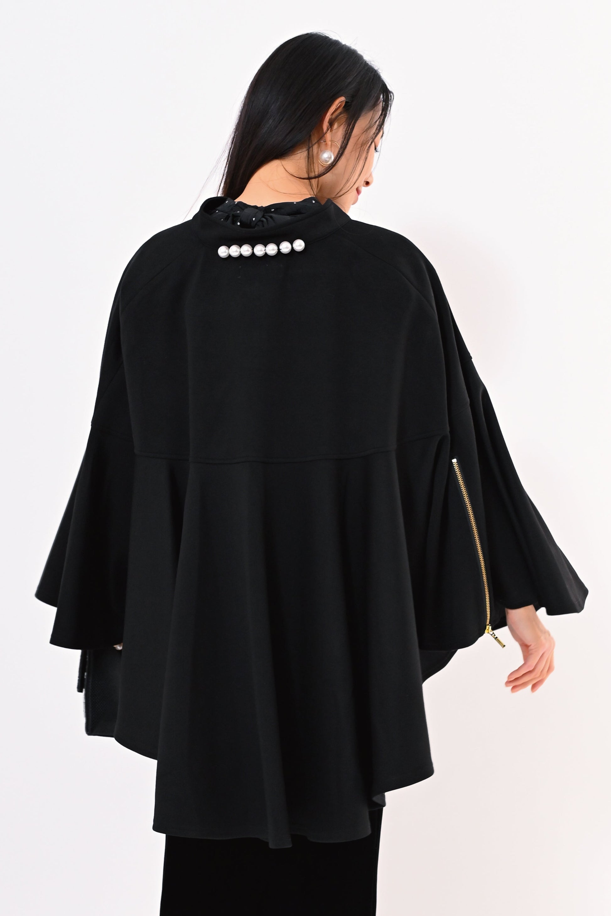 ふんわり広がるシルエットが魅力のポンチョ型ジャケット。