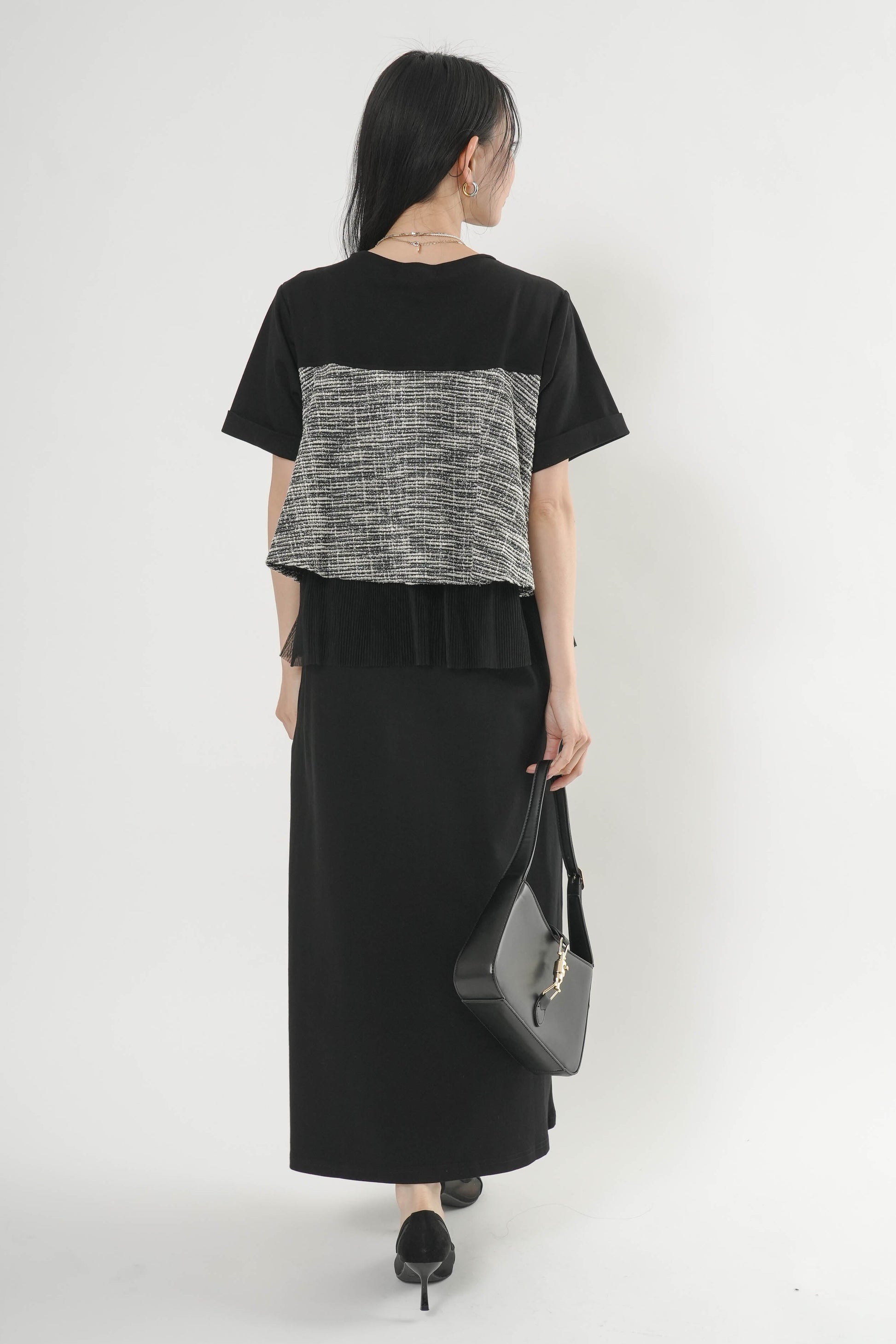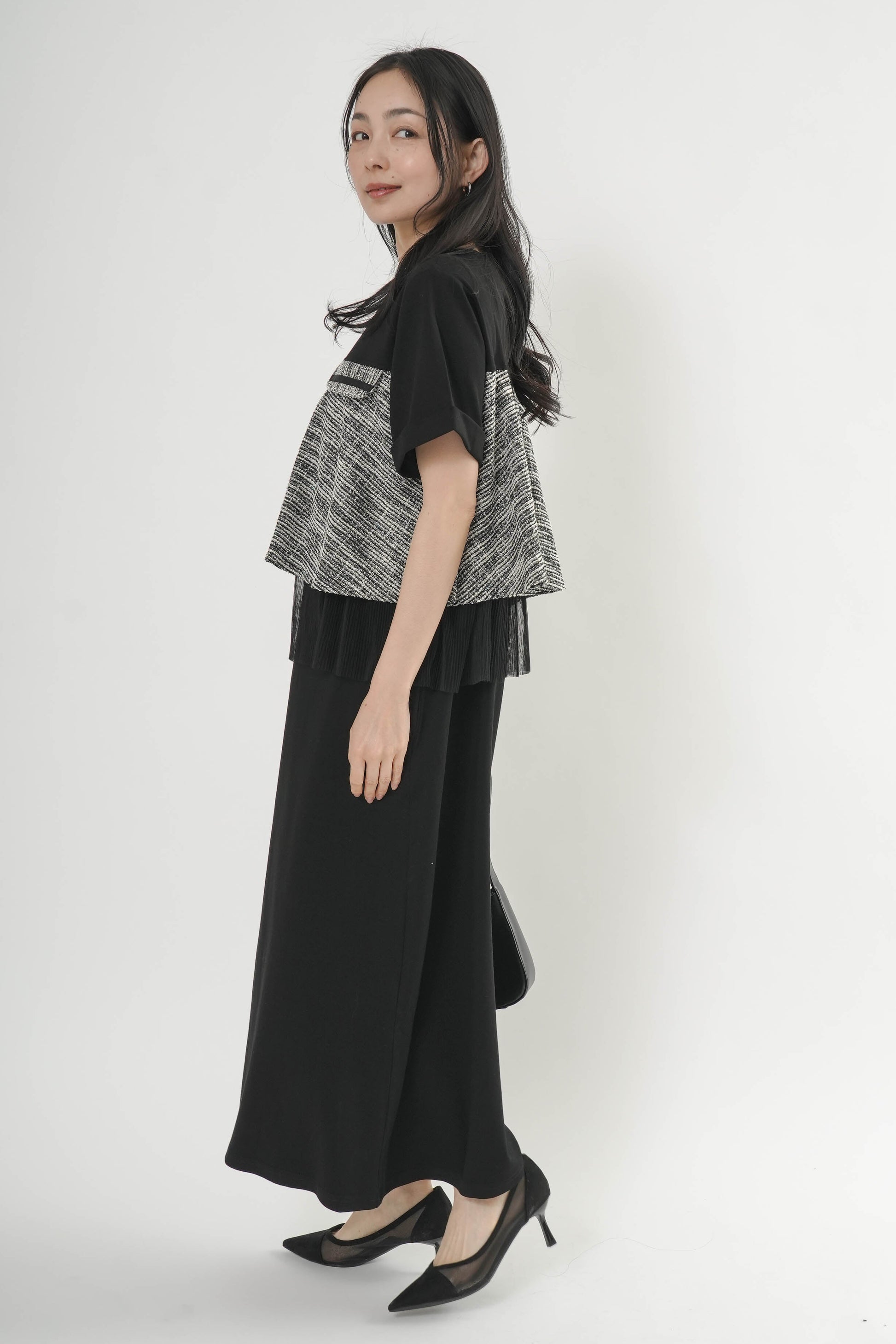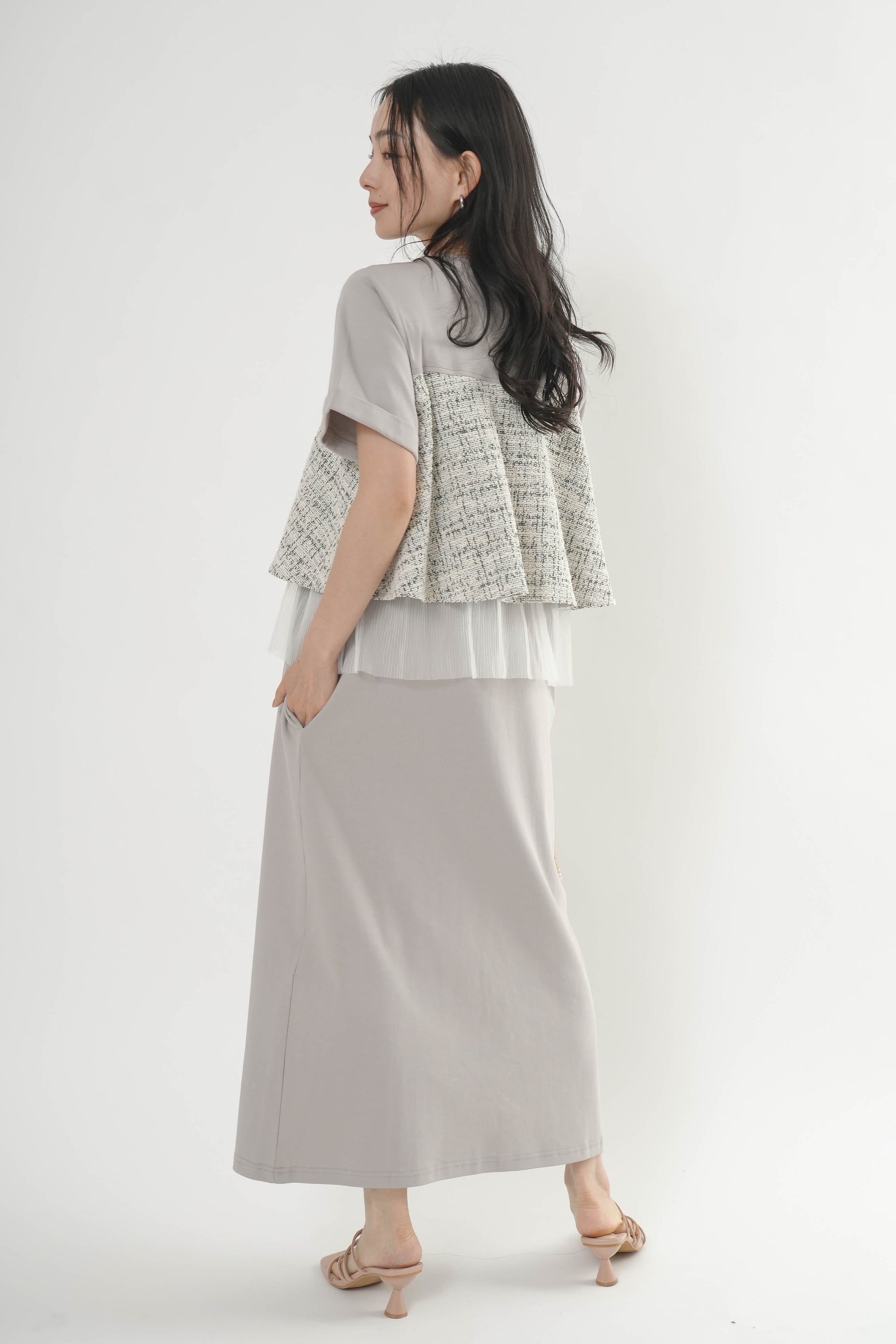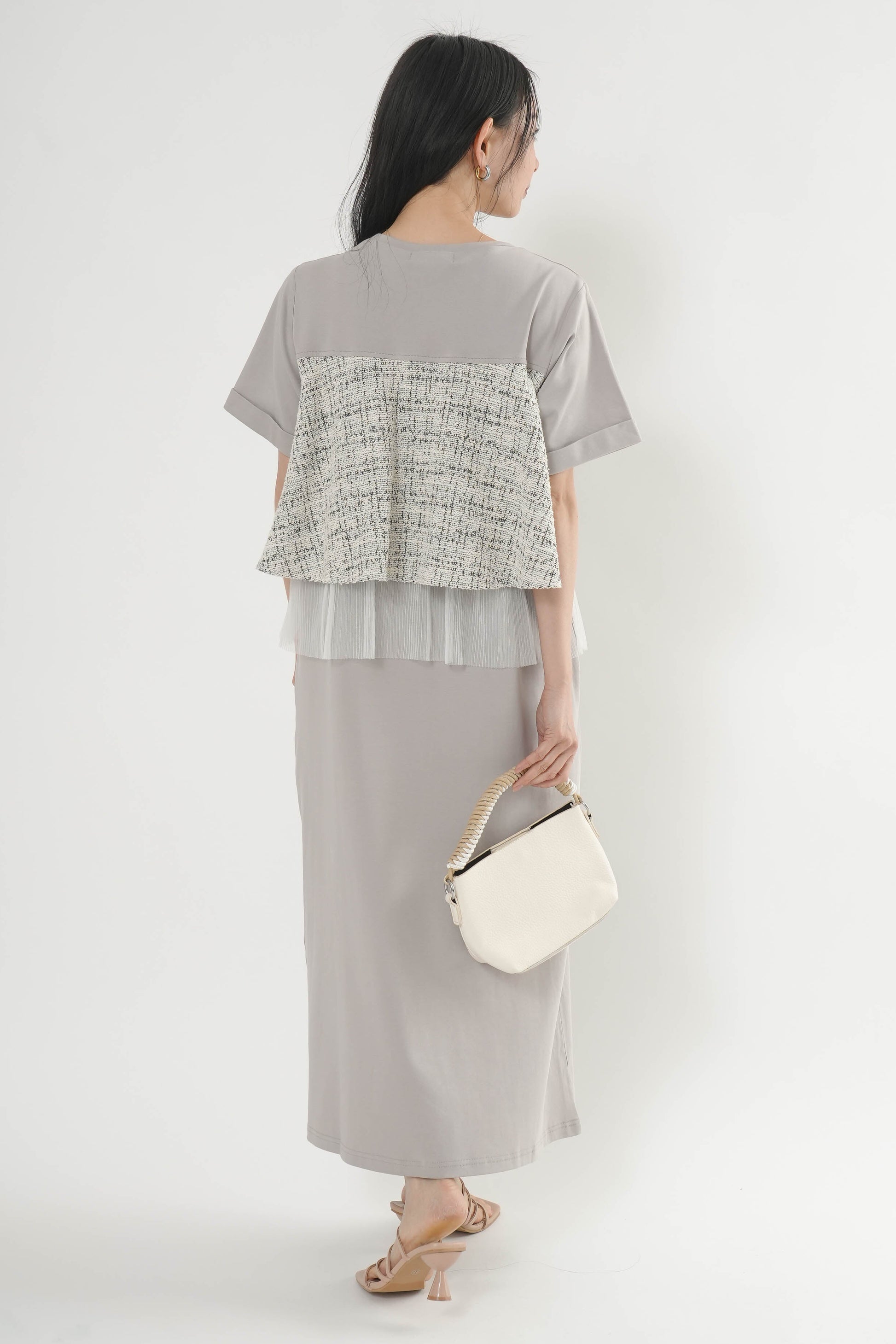 ・カットソー×ツイードの異素材コンビデザイン