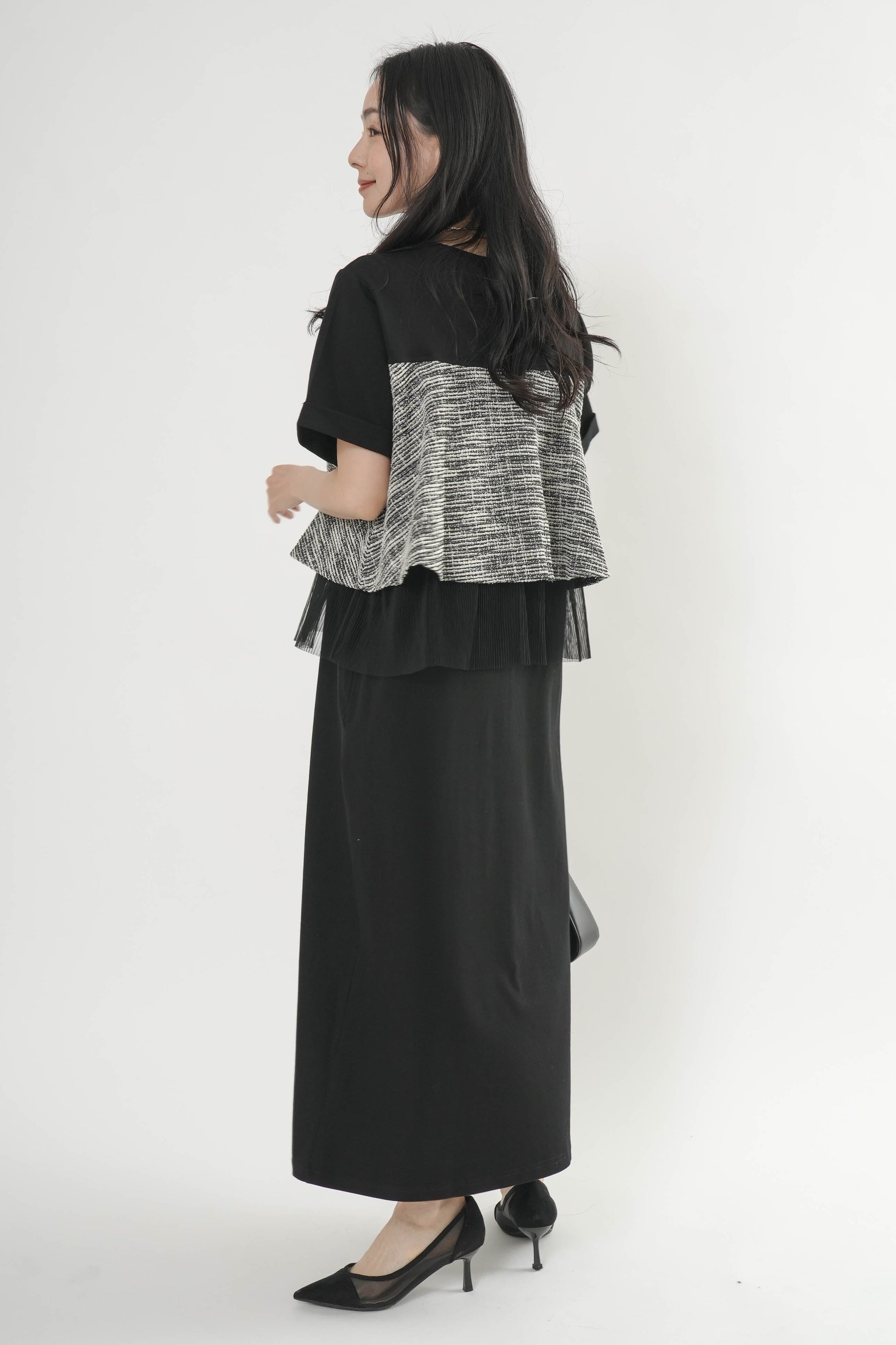・ツイード裾に重ねたチュールが軽やかなアクセントに