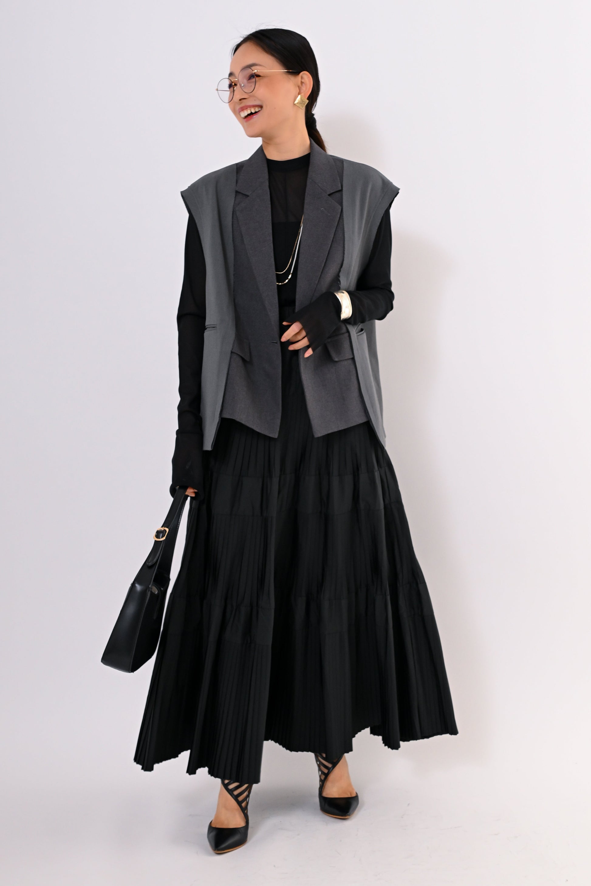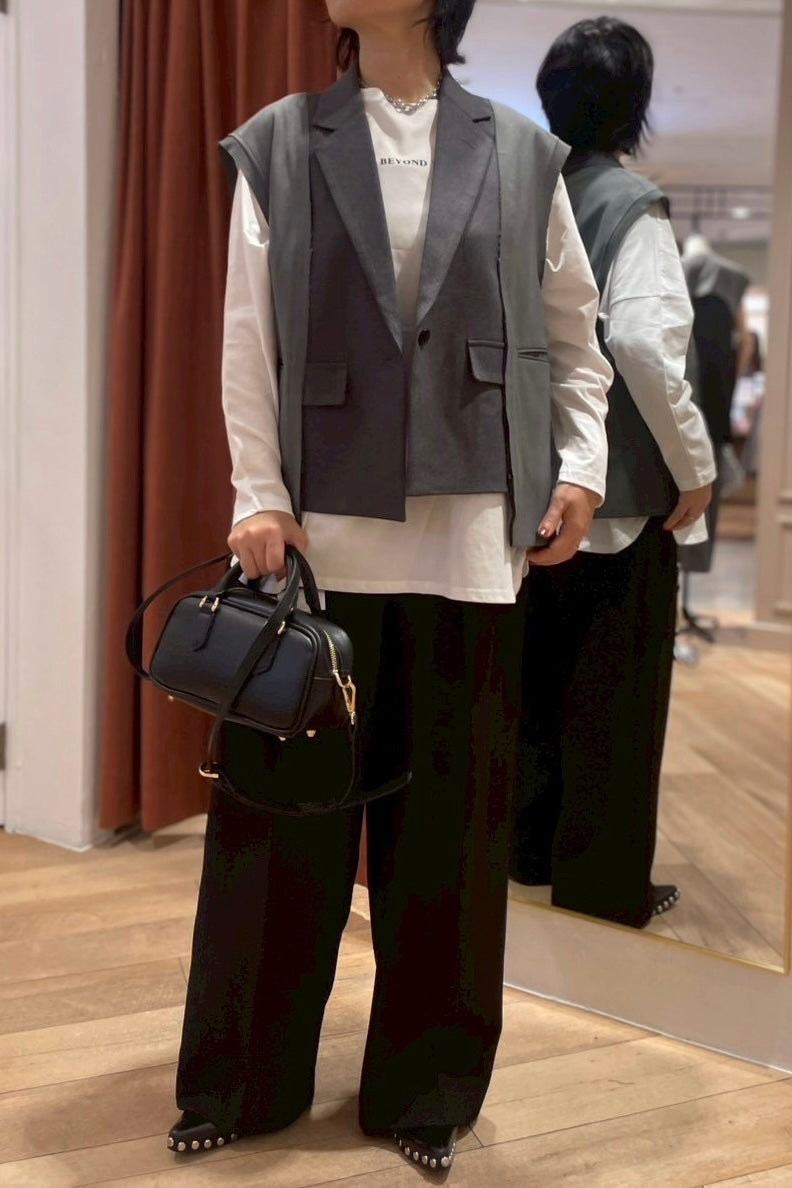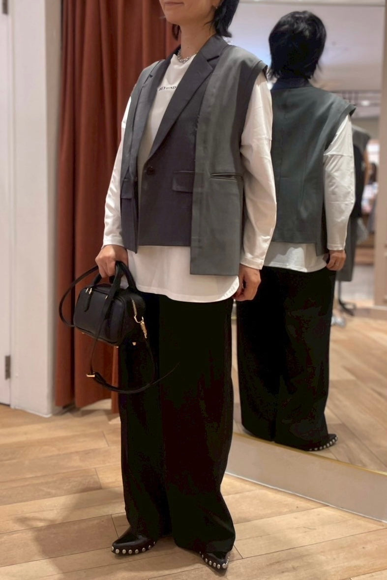 インナーにカットソーやシャツを合わせてカジュアルに、同素材のボトムと組み合わせればセットアップ風にも着こなせる万能アイテム。